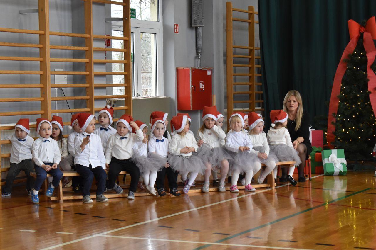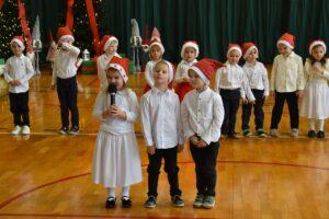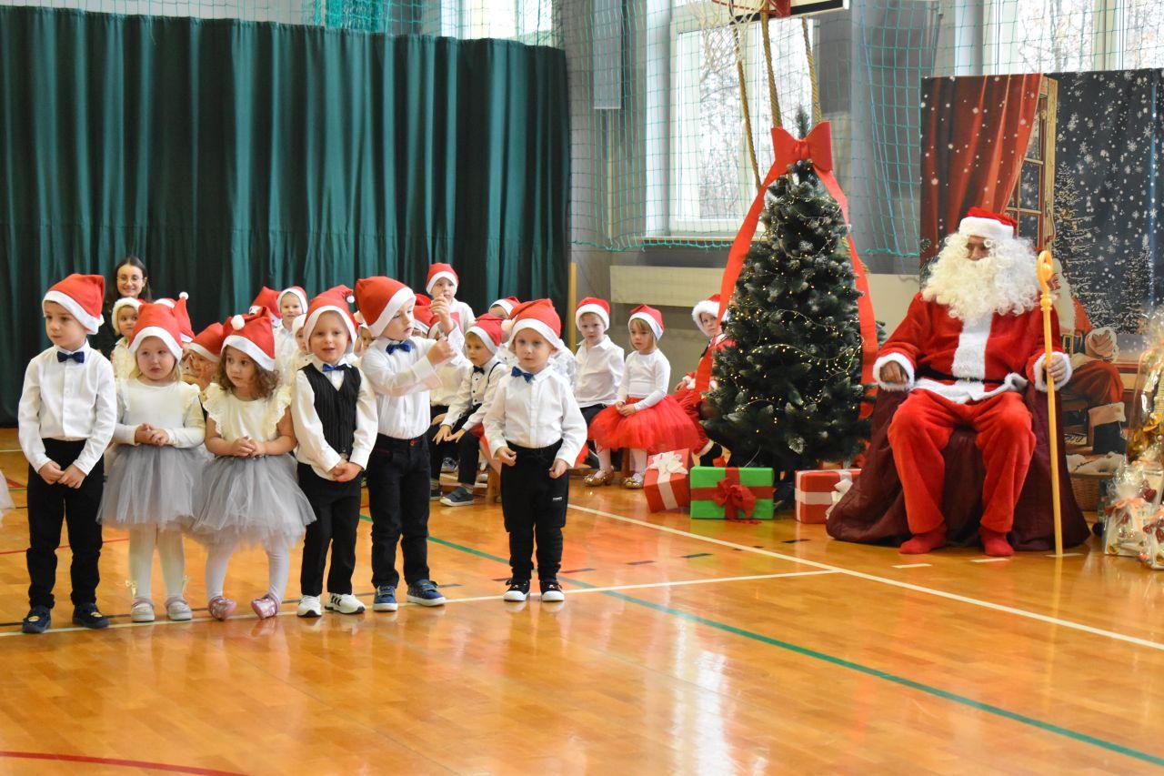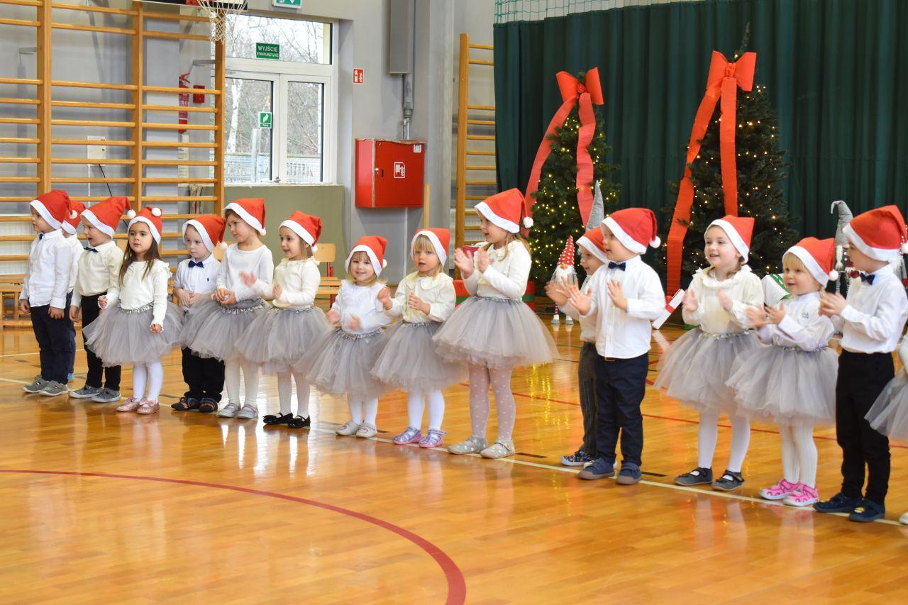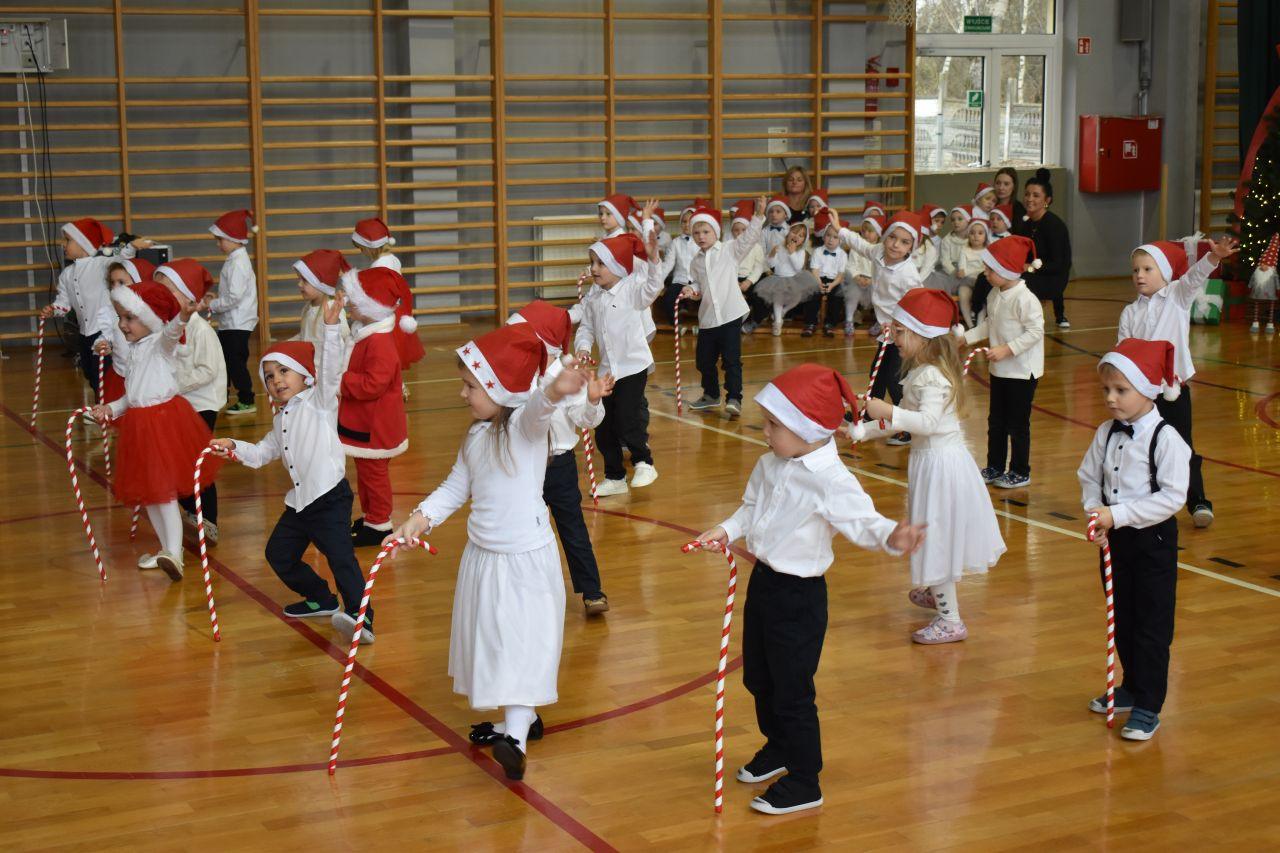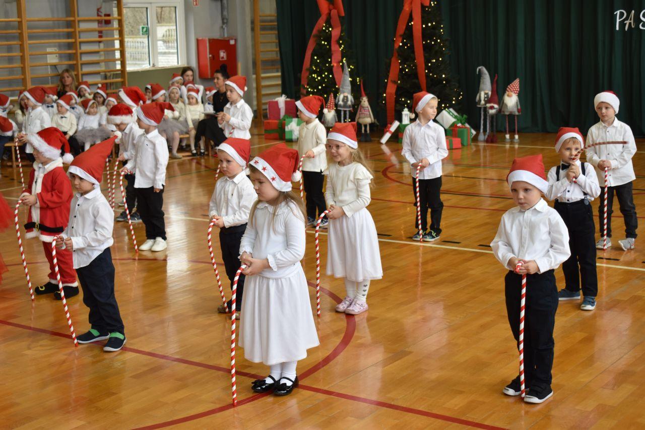 Dnia 05.12.2025r. w szkolnej sali gimnastycznej odbyła się wyjątkowa uroczystość Mikołajkowego Pasowania, podczas której swoje występy zaprezentowały grupy Stokrotki i Niezapominajki. Dzieci z wielkim zaangażowaniem recytowały przygotowane wierszyki, śpiewały piosenki oraz tańczyły mikołajkowe tańce, co wywołało wiele radości i uśmiechów na twarzach zarówno dzieci, jak i zgromadzonych gości. Ceremonię pasowania na przedszkolaka i na czterolatka przeprowadziła Pani Dyrektor, która z wielką serdecznością dokonała tego ważnego aktu. Po uroczystości dzieci otrzymały prezenty od Świętego Mikołaja, który z zaciekawieniem oglądał wszystkie występy i z uśmiechem na twarzy podziwiał talenty małych artystów. Na widowni zasiedli rodzice wszystkich przedszkolaków, którzy z dumą i radością obserwowali występy swoich pociech. Po oficjalnej części wszyscy udali się na wspólny poczęstunek, przygotowany przez rodziców, co stworzyło miłą i ciepłą atmosferę integracji. To był naprawdę wyjątkowy dzień pełen emocji, śmiechu i wspólnej radości, który na długo pozostanie w pamięci dzieci, rodziców i całej społeczności przedszkolnej.