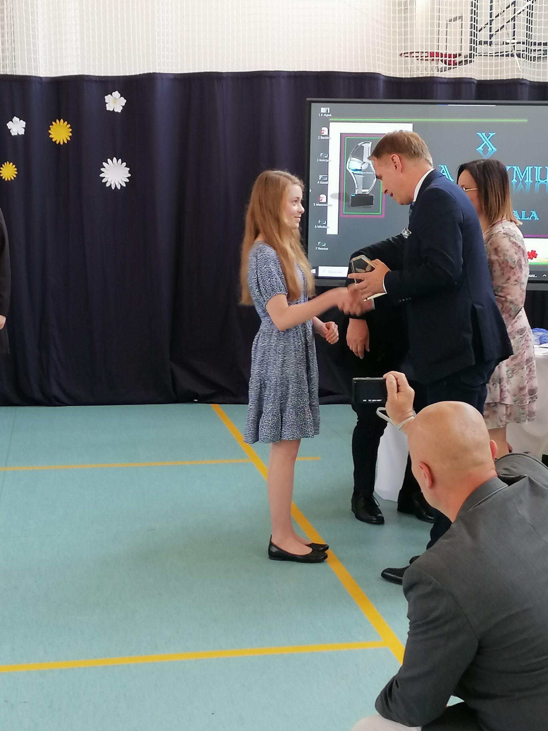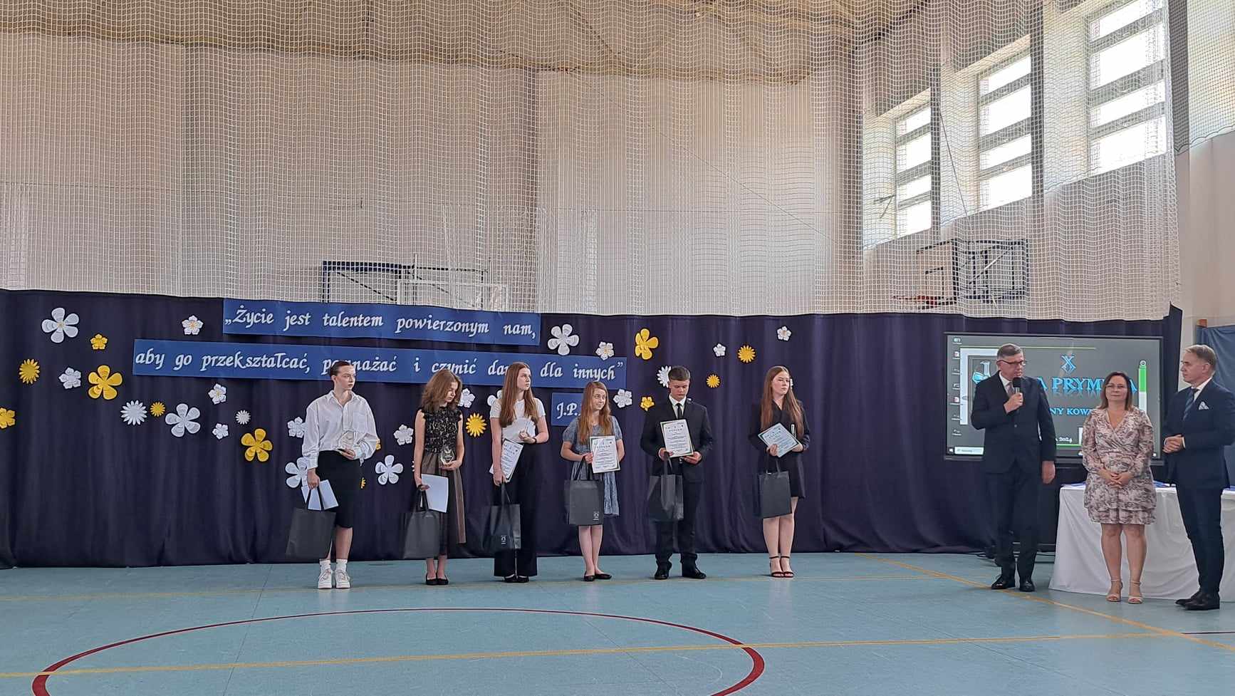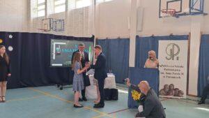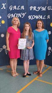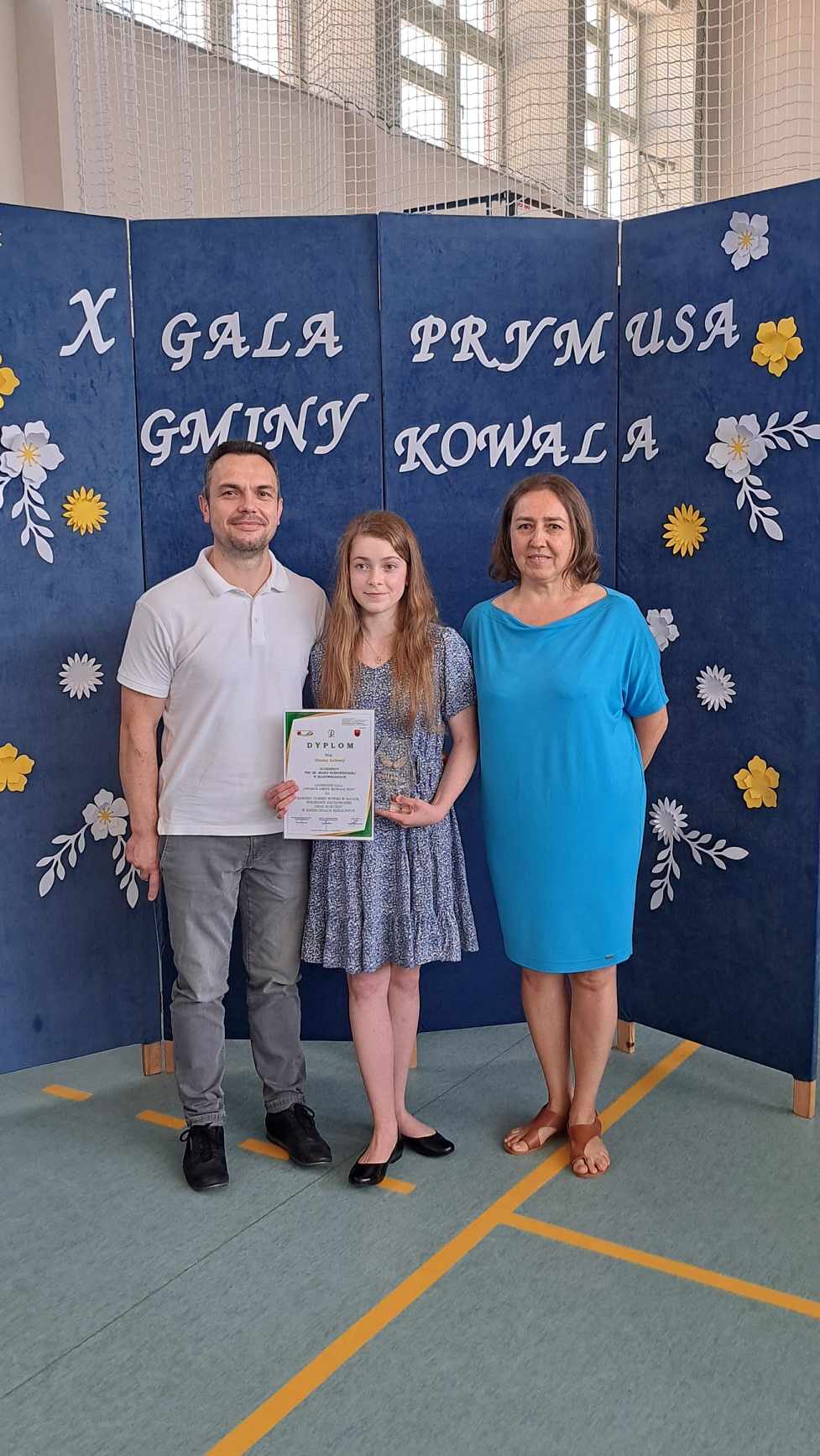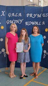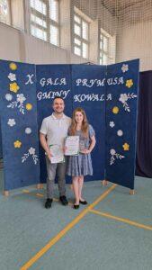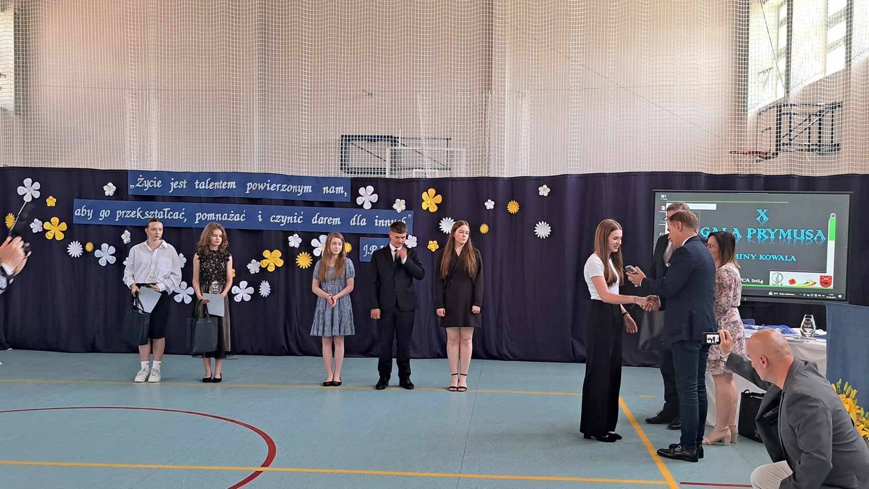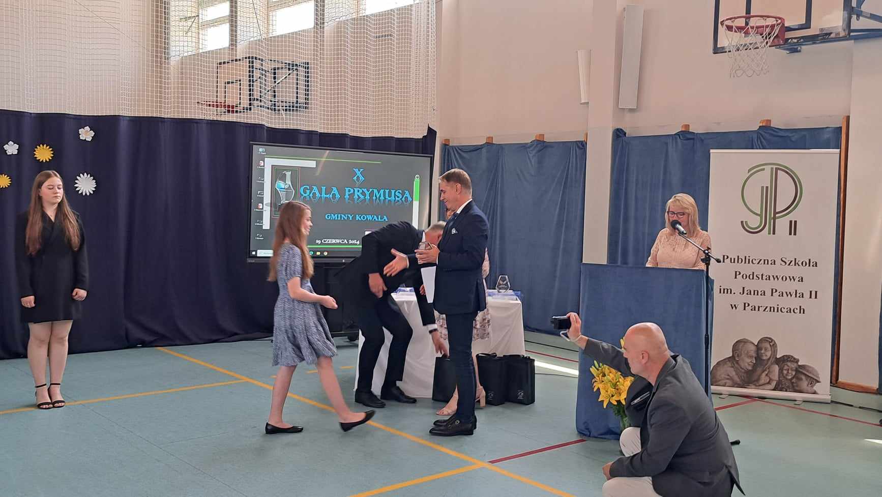 W środę 19 czerwca 2024r. odbyła się X Gala Prymusa Gminy Kowala. Gospodarzem tegorocznej edycji była Publiczna Szkoła Podstawowa im. Jana Pawła II w Parznicach. Gala Prymusa Gminy Kowala to piękna inicjatywa, której celem jest prezentacja dokonań i uhonorowanie osiągnięć najbardziej uzdolnionych uczniów spośród wszystkich absolwentów szkół podstawowych na terenie gminy Kowala.Gali przyświecała myśl patrona szkoły w Parznicach – papieża Jana Pawła II “Życie jest talentem powierzonym nam, aby go przekształcać, pomnażać i czynić dobrem dla innych”. Naszą szkołę reprezentowała Hanna Łoboda uczennica klasy 8a, która z 10 semestrów uzyskała średnią ocen 5,51 oraz zachowanie wzorowe. Nasza absolwentka zanotowała na swoim koncie wiele sukcesów w czasie edukacji w szkole w Mazowszanach. Jednym z największych jest otrzymanie w 2023r. Stypendium Marszałka Województwa Mazowieckiego dla uzdolnionej młodzieży, w ramach którego realizowała program rozwoju obejmujący m.in. projekt edukacyjny z języka angielskiego „English is everywhere”. Ponadto przez cały czas edukacji angażowawła się w życie klasy i szkoły, działając m. in. w Szkolnym Kole Wolontariatu oraz pełniła funkcję Asysty w Poczcie Sztandarowym. Jako pasjonatka śpiewu i tańca uświetniała uroczystości szkolne i poza szkolne. Jesteśmy bardzo dumni z naszej absolwentki i życzymy jej realizacji planów oraz spełnienia marzeń.