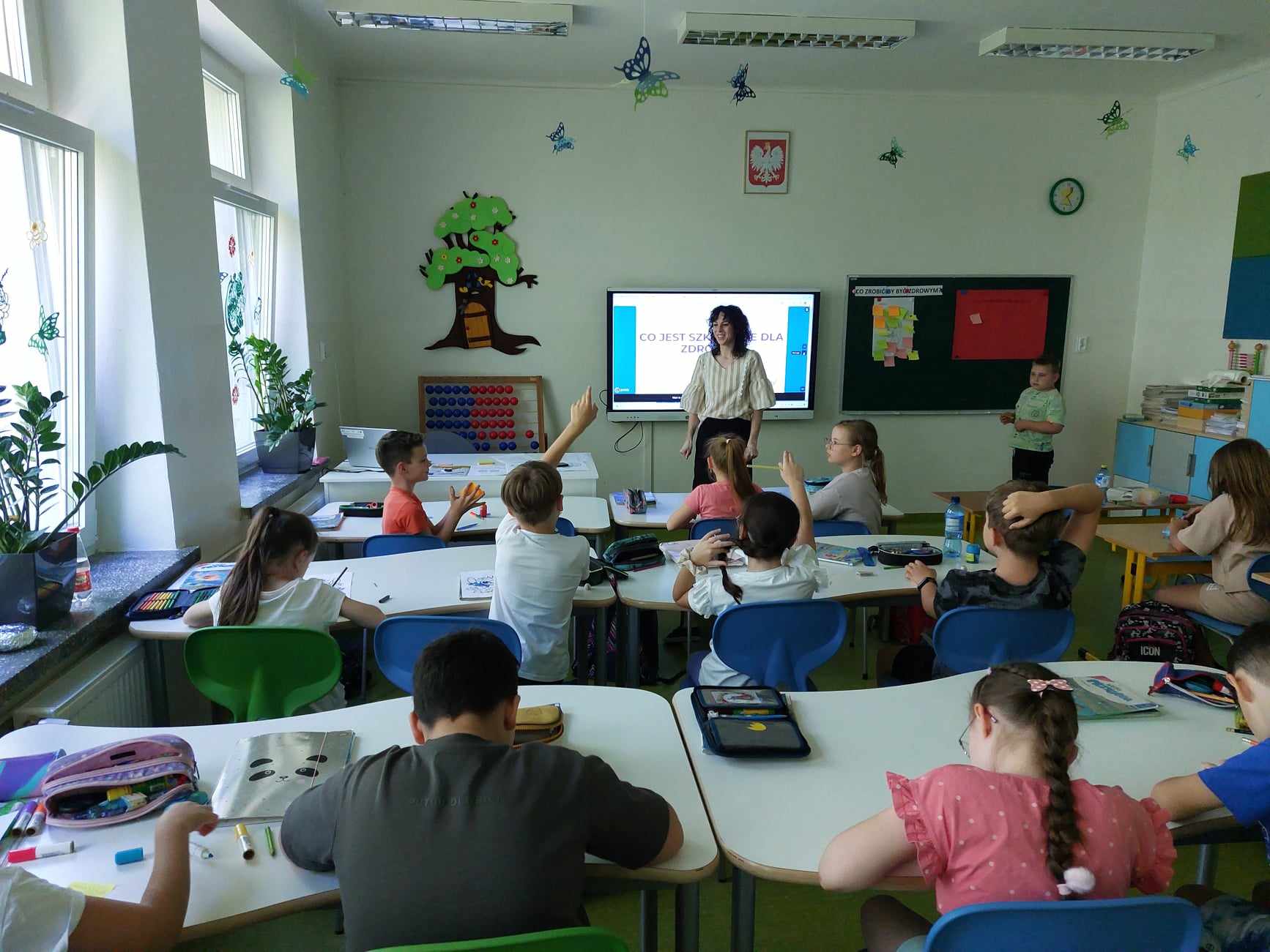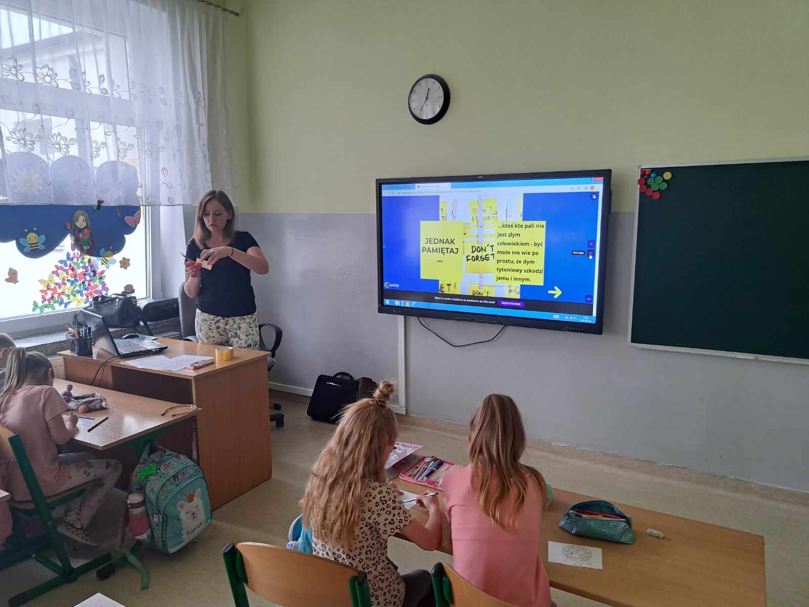 Po raz kolejny w naszej szkole został zrealizowany program edukacji antytytoniowej Nie pal przy mnie, proszę!, który był adresowany do uczniów klas I – III. Jego celem było zmniejszenie narażenia dzieci na bierne palenie tytoniu, zwiększenie wiedzy w zakresie odpowiedzialności za własne zdrowie oraz kształtowanie postaw asertywnych związanych z unikaniem czynnego i biernego palenia tytoniu. Założeniem programu było przeprowadzenie zajęć w formie warsztatowej w oparciu o następujące tematy: Co to jest zdrowie?, Od czego zależy nasze zdrowie?, Co i dlaczego szkodzi zdrowiu?, Co robić, gdy moje zdrowie jest zagrożone?, Nie pal przy mnie, proszę! Zajęcia przeprowadzono według scenariuszy programu Nie pal przy mnie, proszę! oraz według pomysłów nauczycieli. Cele zostały osiągnięte. Dzieci uporządkowały i poszerzyły wiadomości na temat zdrowia, uświadomiły sobie, że same mogą unikać szkodliwych dla zdrowia sytuacji, poznały sposoby zachowań w sytuacjach, gdy inni ludzie palą przy nich papierosy. Podsumowaniem programu było zorganizowanie wystawy prac uczniów oraz tablicy informującej, że corocznie dnia 31 maja obchodzony jest Światowy dzień bez tytoniu.