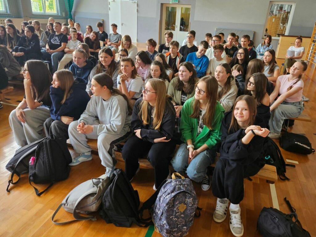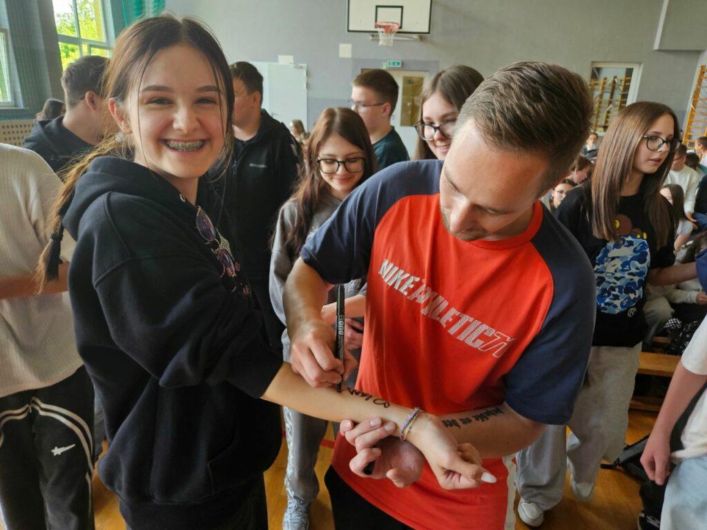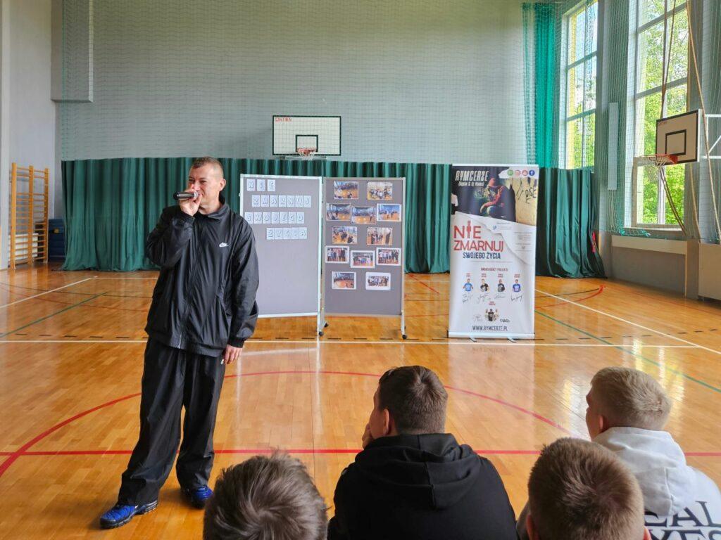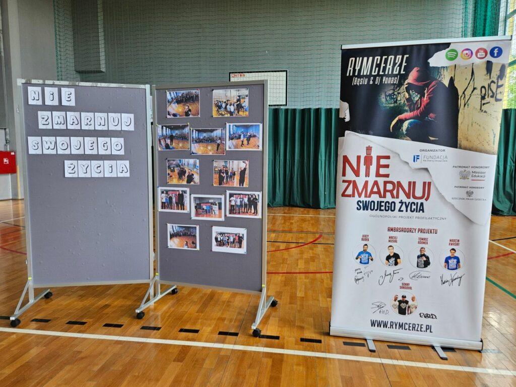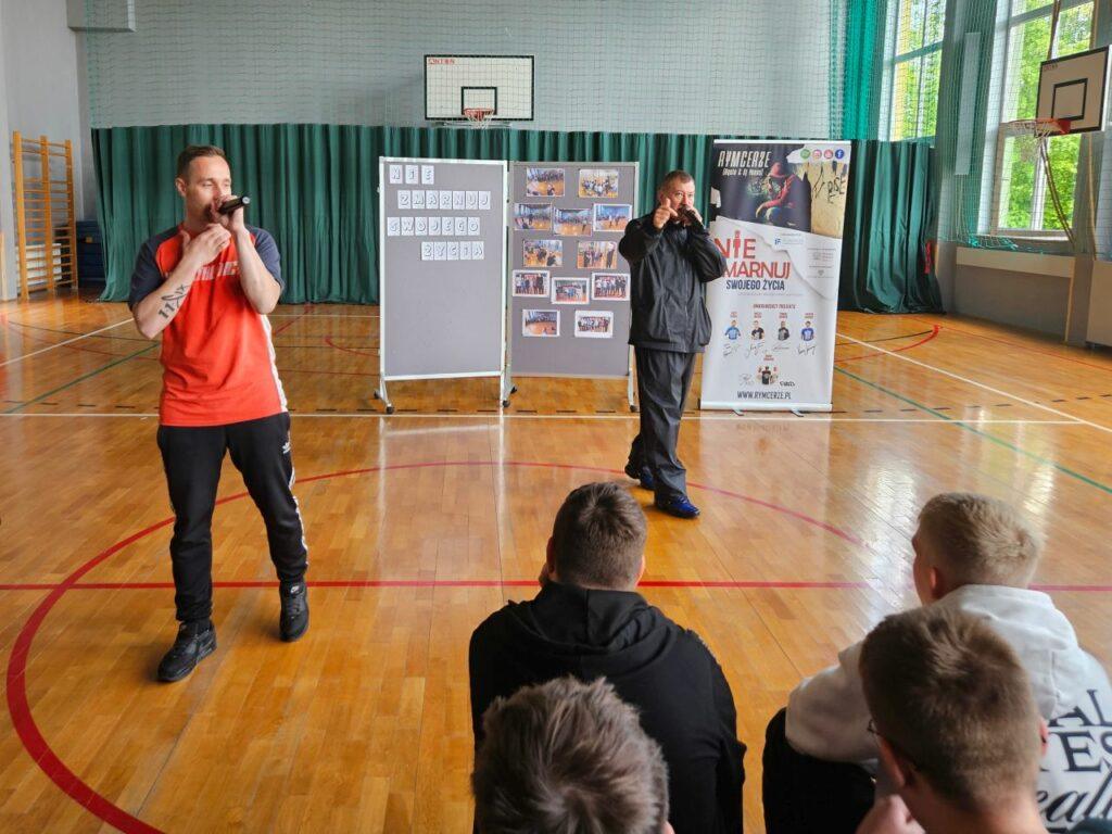 21 maja, w środę, uczniowie klas 7–8 wzięli udział w wyjątkowej lekcji profilaktycznej w ramach ogólnopolskiego projektu profilaktycznego „Nie zmarnuj swojego życia”, realizowanego przez duet RYMcerze – raperów Bęsia i Dj Yonasa.