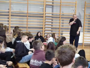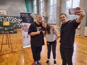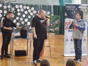 16 grudnia 2021r. gościliśmy w naszej szkole, już po raz drugi, niesamowitych ludzi –Rymcerzy, czyli dwójkę przyjaciół Łukasza Bęś (pseud. Bęsiu) i Jonatana Blank (pseud. Dj Yonas) z projektem profilaktycznym „Nie Zmarnuj Swojego Życia”.