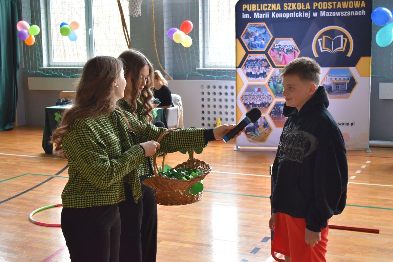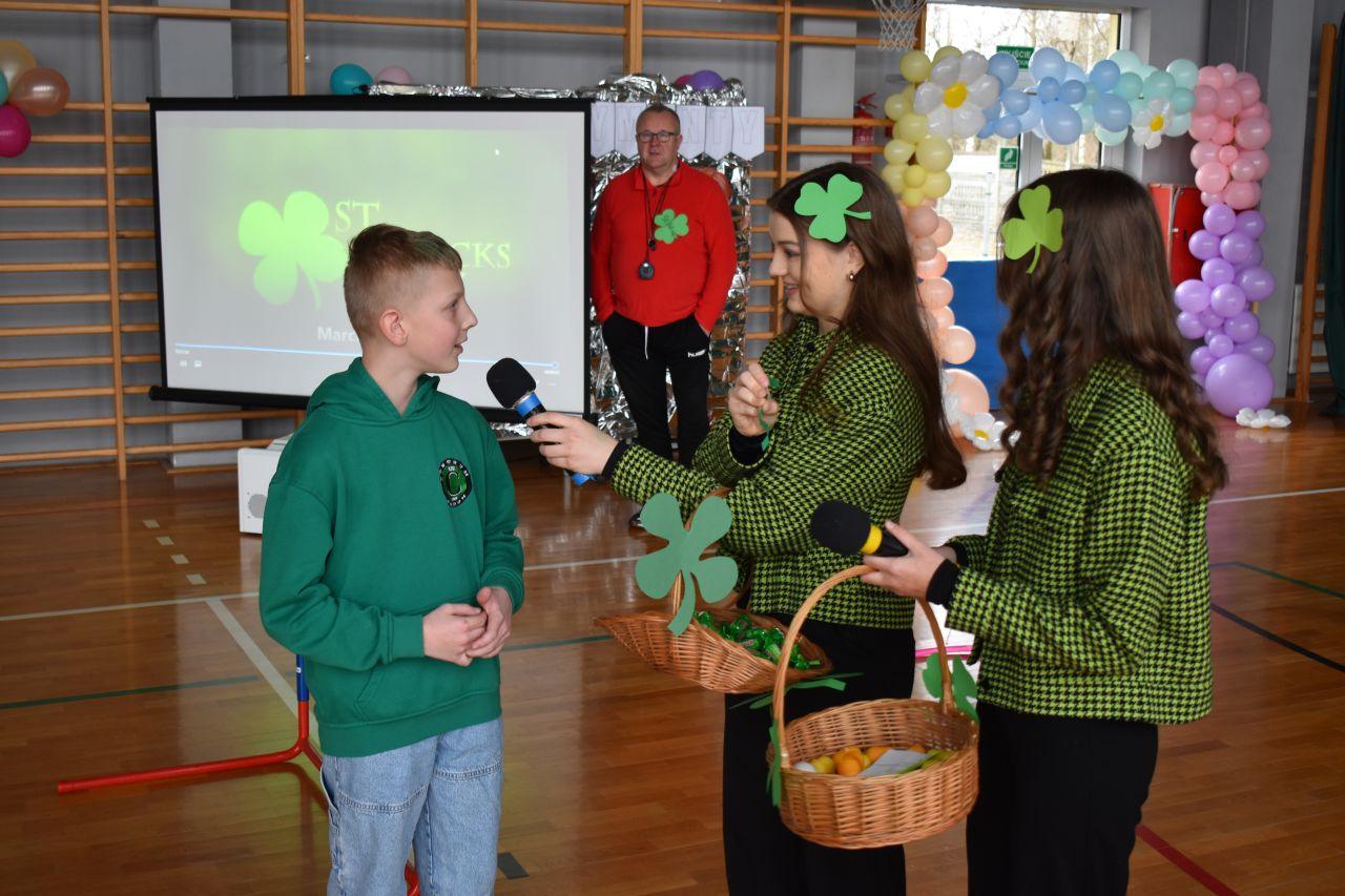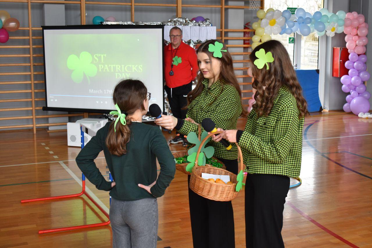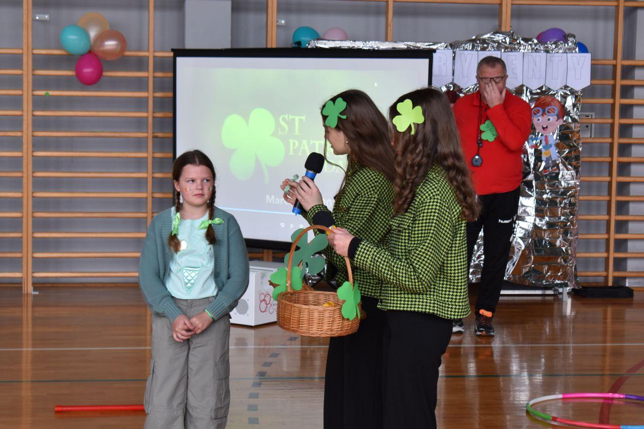 W zabawie brali również udział uczniowie zasiadający na widowni, którzy mogli wykazać się wiedzę kulturową na temat św. Partyka i Irlandii. Każda poprawna odpowiedź była słodko nagradzana.