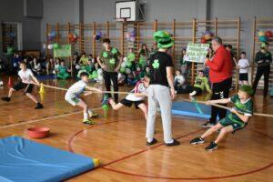 III część – Konkurs sprawnościowy: Ostatnia część turnieju koncentrowała się na aktywności fizycznej. Każda klasa wyznaczyła trzech uczniów, którzy reprezentowali ją w różnych konkurencjach sportowych. Uczestnicy wzięli udział w zmaganiach, które wymagały zręczności, szybkości i współpracy zespołowej.