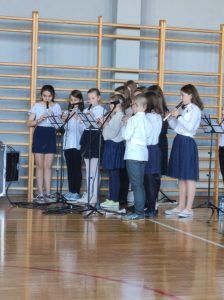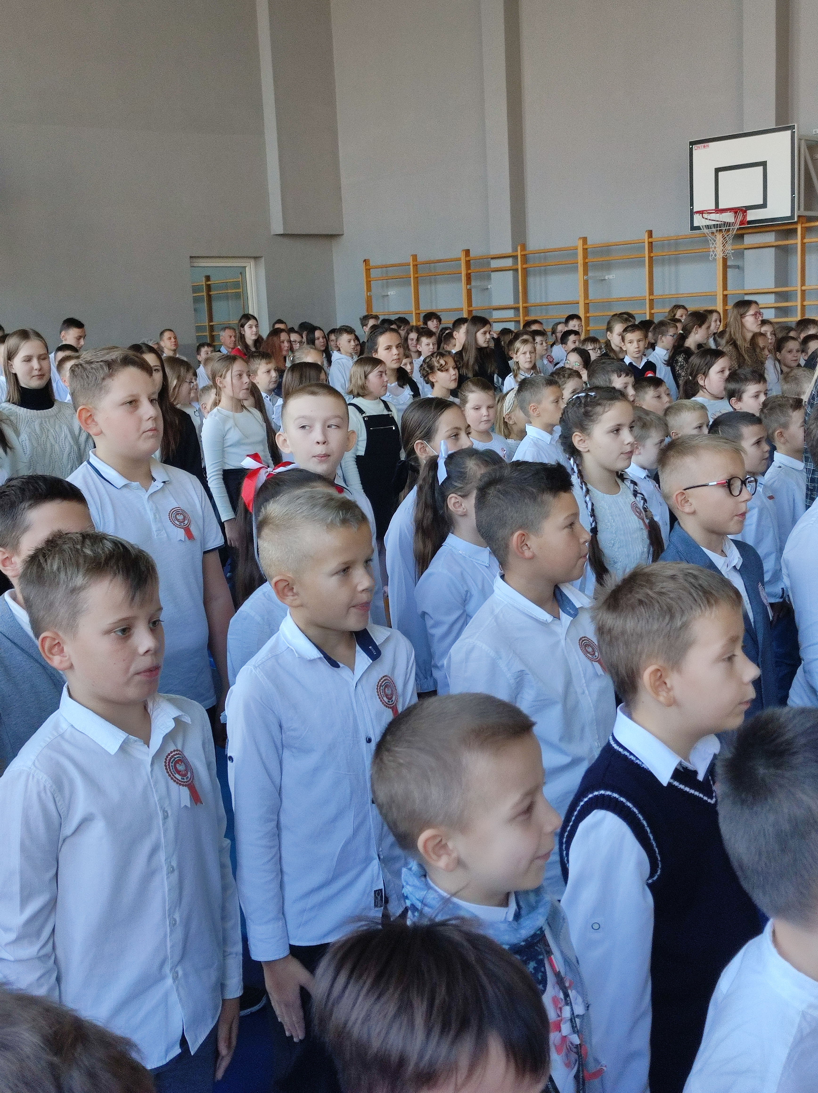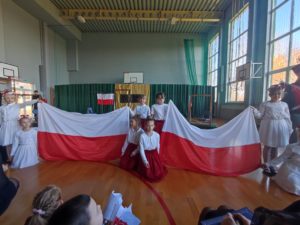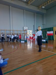103. rocznicę odzyskania niepodległości przez Polskę świętowano hucznie w całym kraju i poza jego granicami. O tym wydarzeniu pamiętali także uczniowie i pracownicy naszej szkoły, którzy 10 listopada licznie zgromadzili się w sali gimnastycznej, aby wspólnie uczcić to wyjątkowe Święto. O godzinie 11.11 cała społeczność szkolna odśpiewała hymn państwowy, włączając się tym samym w ogólnopolską akcję „Szkoła do hymnu”.
