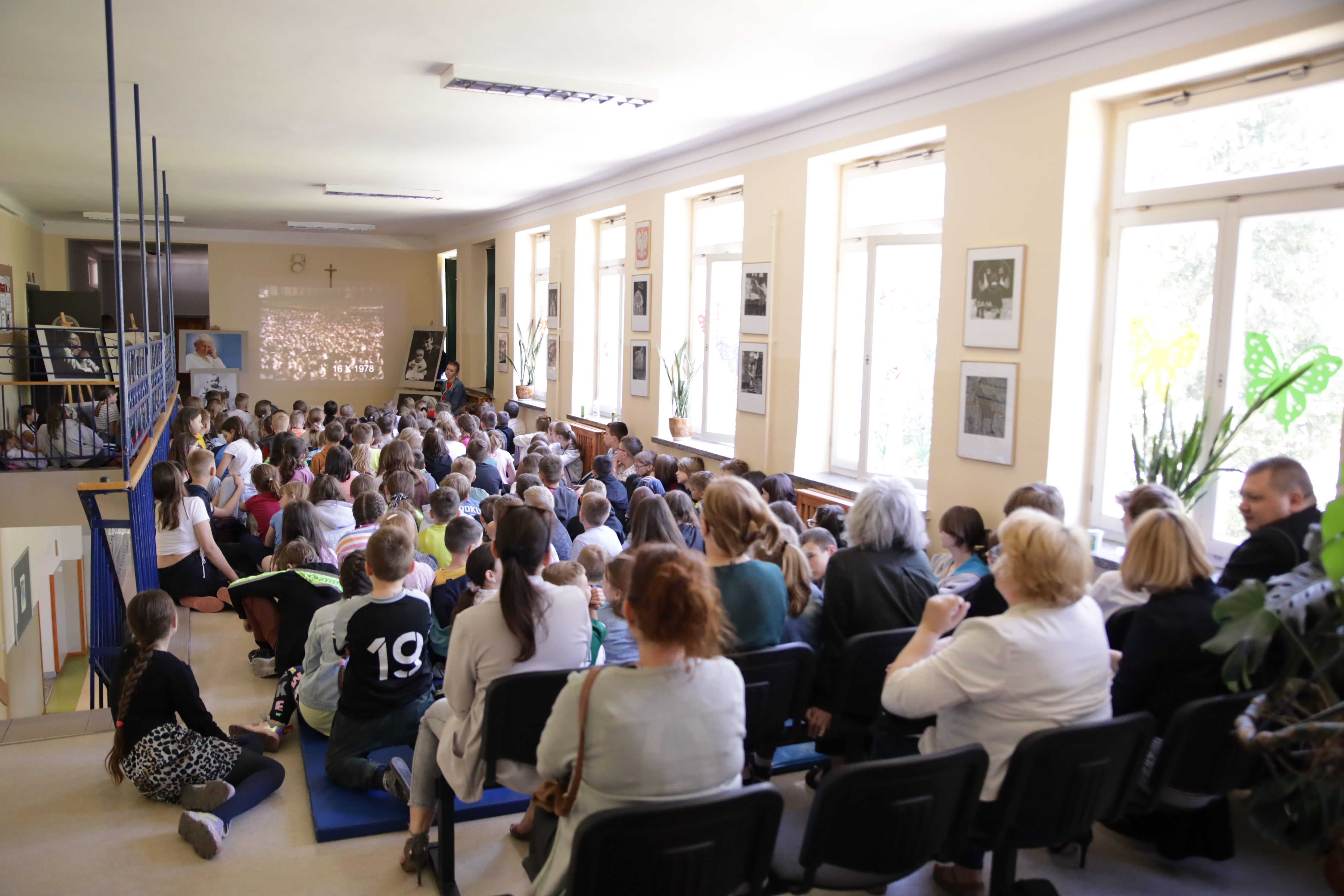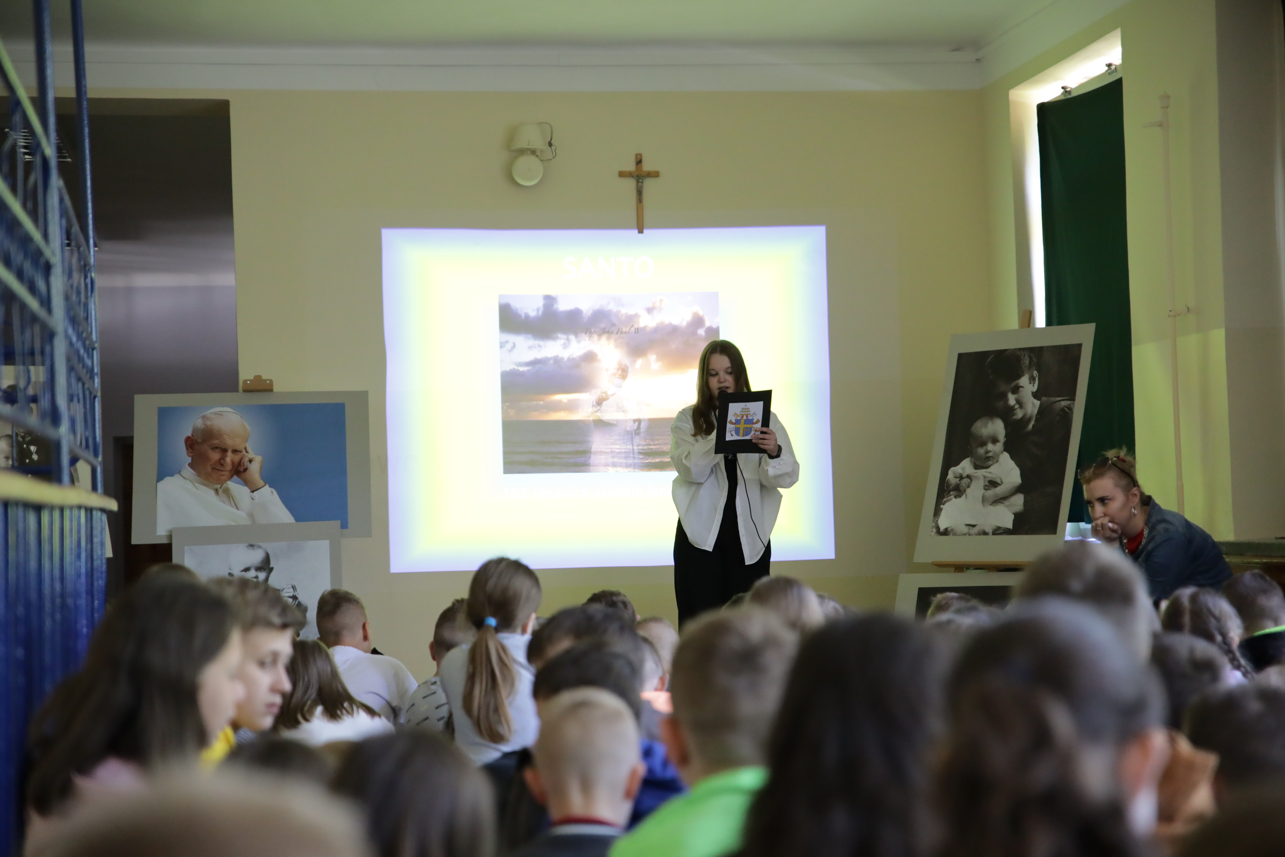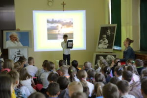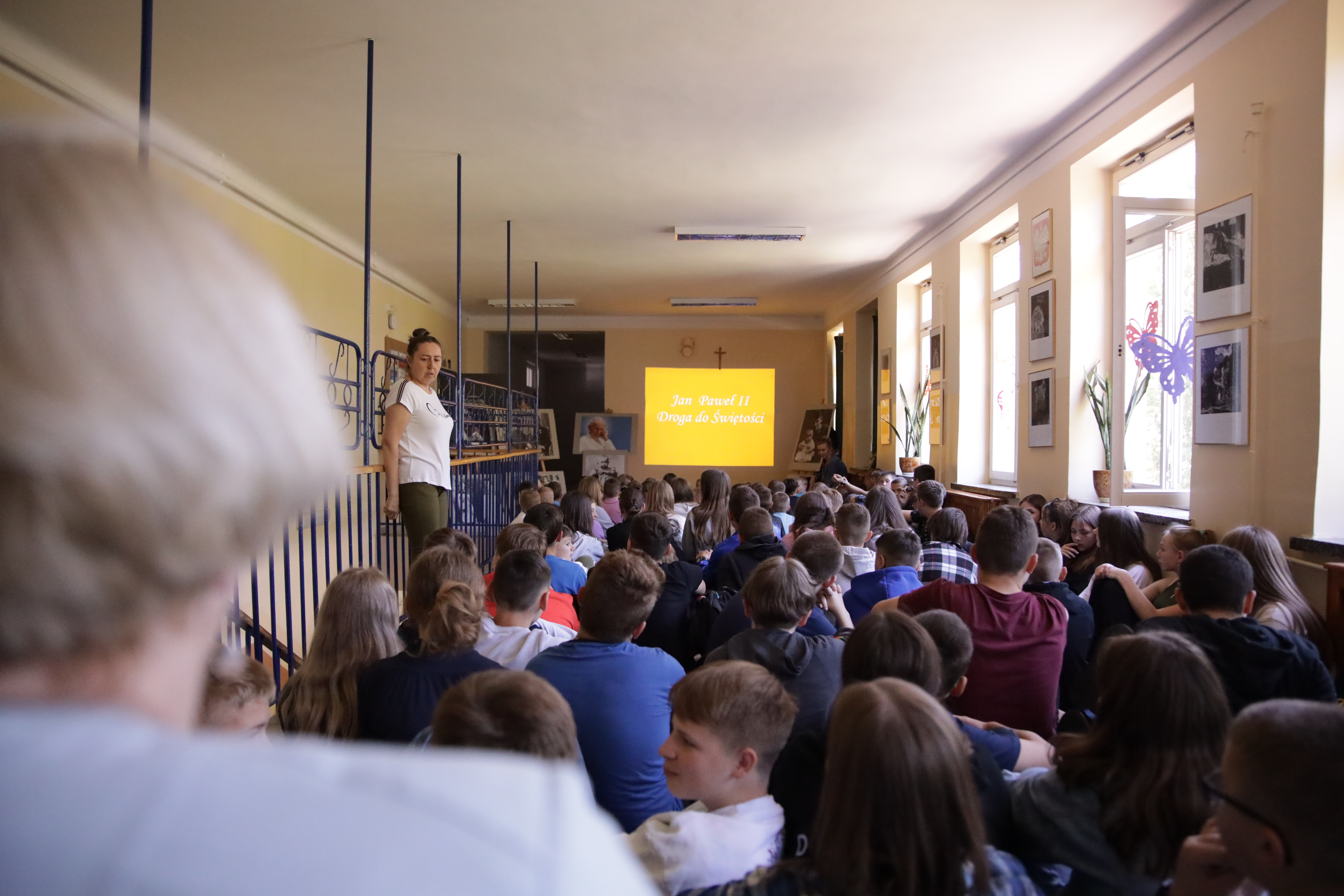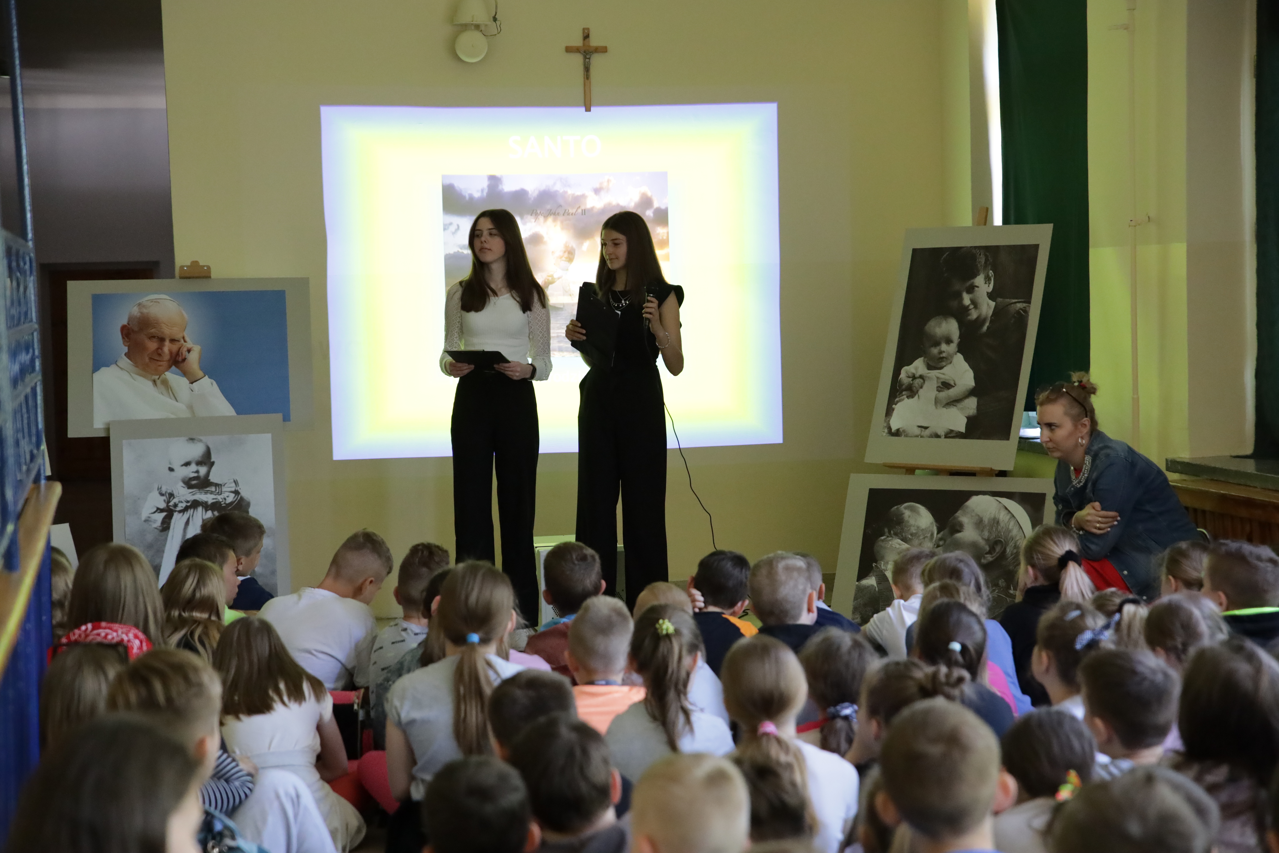 Szkolne Koło Wolontariatu miało przyjemność zorganizować w dniu 18.05.2022 r. obchody 102 urodzin Jana Pawła II. Z tej okazji przygotowane zostało przedstawienie wraz z pokazem filmów oraz kiermasz słodkości w tym kremówek – ulubionych ciastek papieża. Pieniądze ze sprzedaży zostaną przeznaczone na akcję Adopcja Serca.