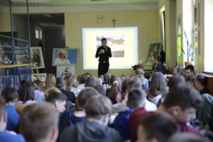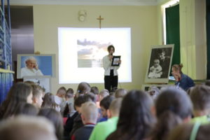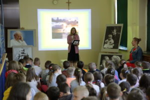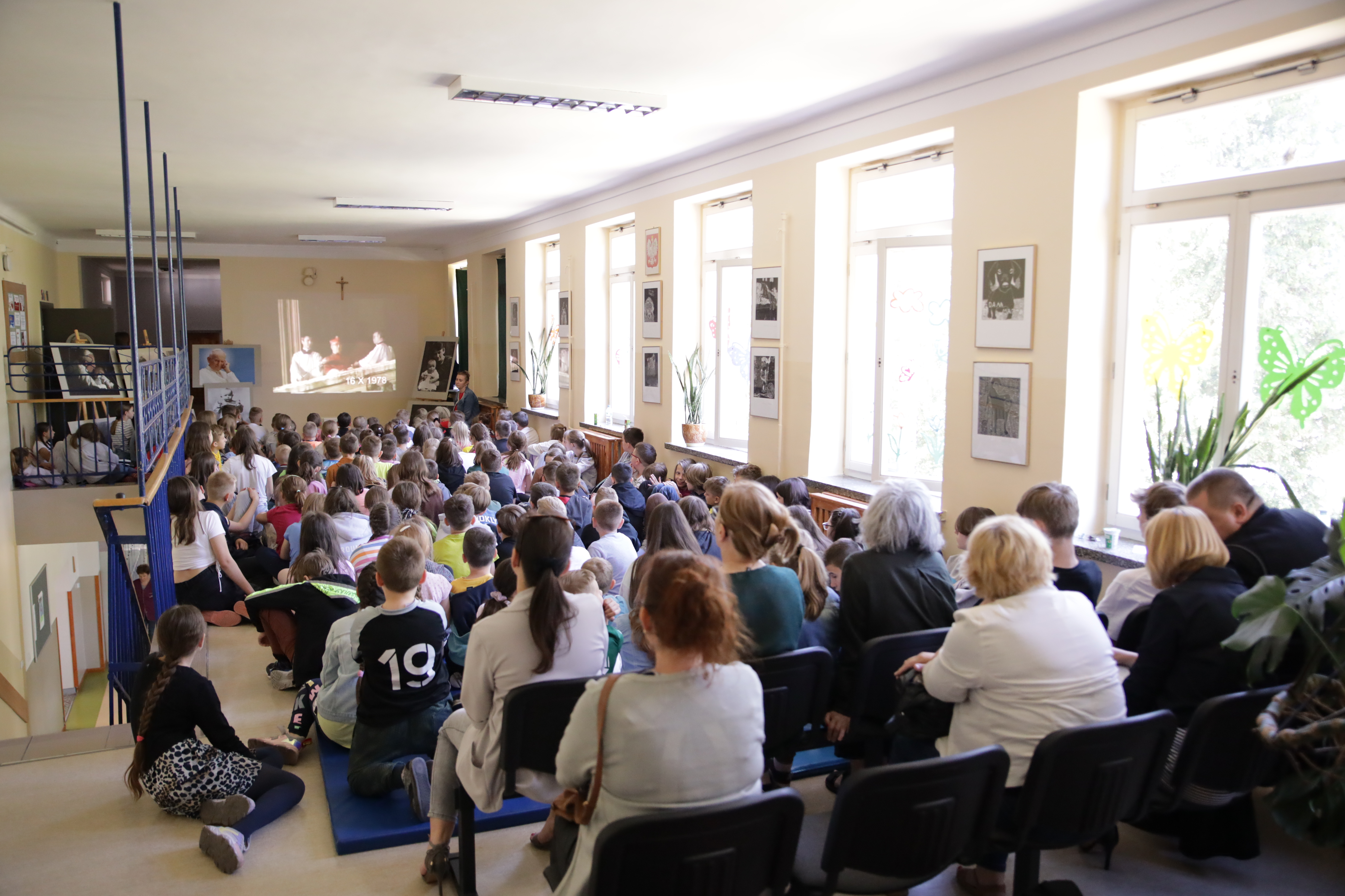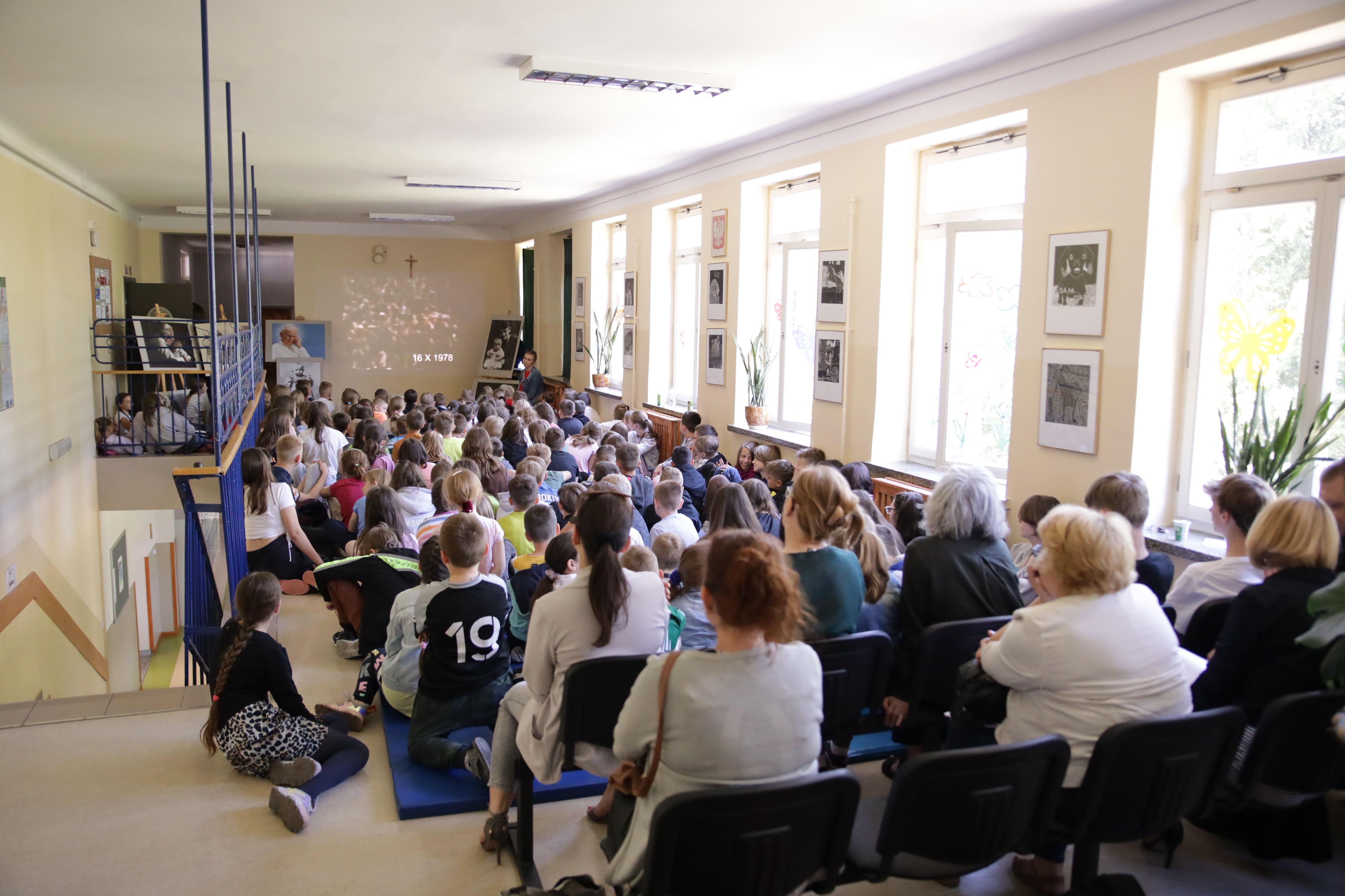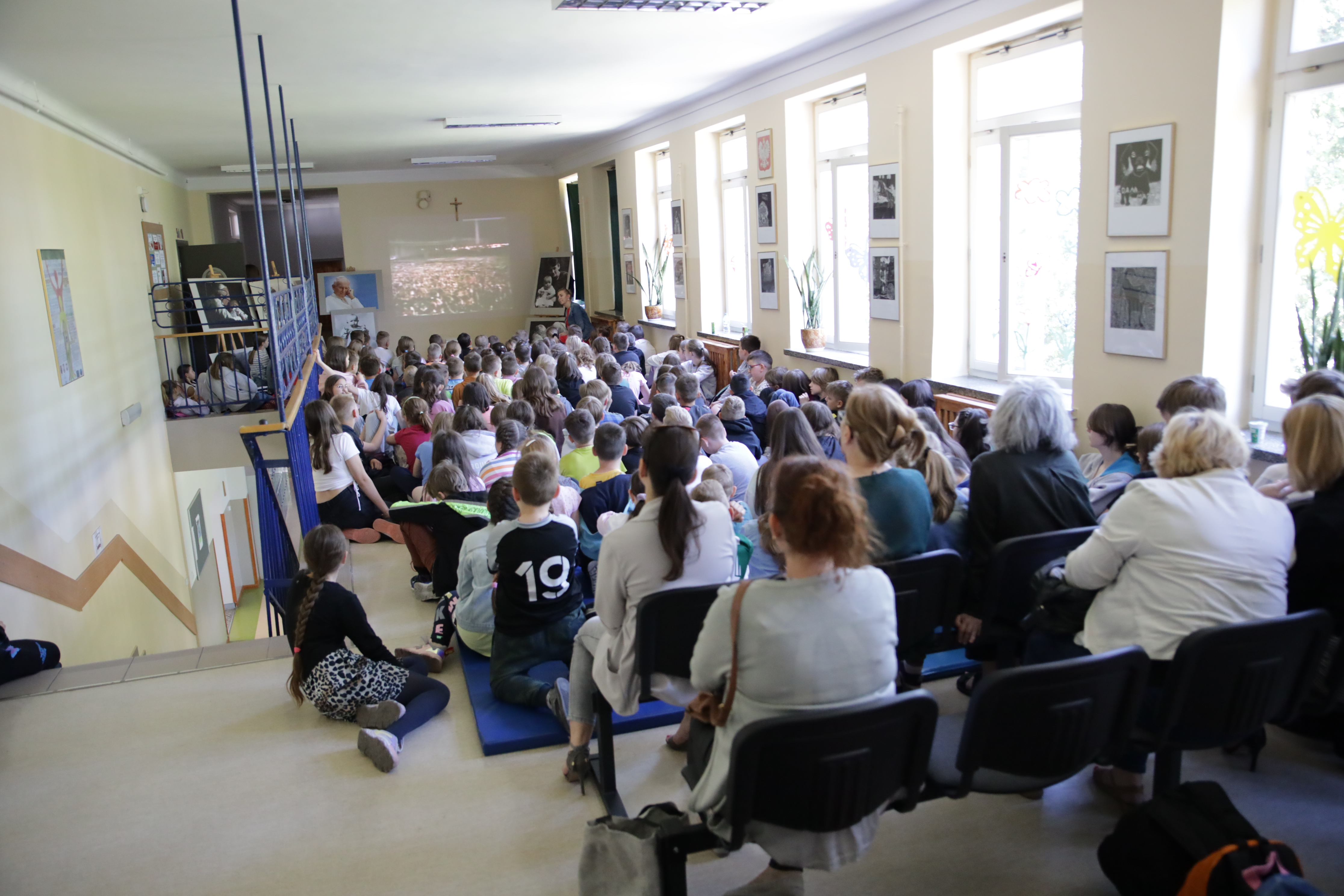 Szkolne Koło Wolontariatu miało przyjemność zorganizować w dniu 18.05.2022 r. obchody 102 urodzin Jana Pawła II. Z tej okazji przygotowane zostało przedstawienie wraz z pokazem filmów oraz kiermasz słodkości w tym kremówek – ulubionych ciastek papieża. Pieniądze ze sprzedaży zostaną przeznaczone na akcję Adopcja Serca.