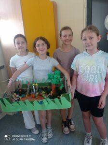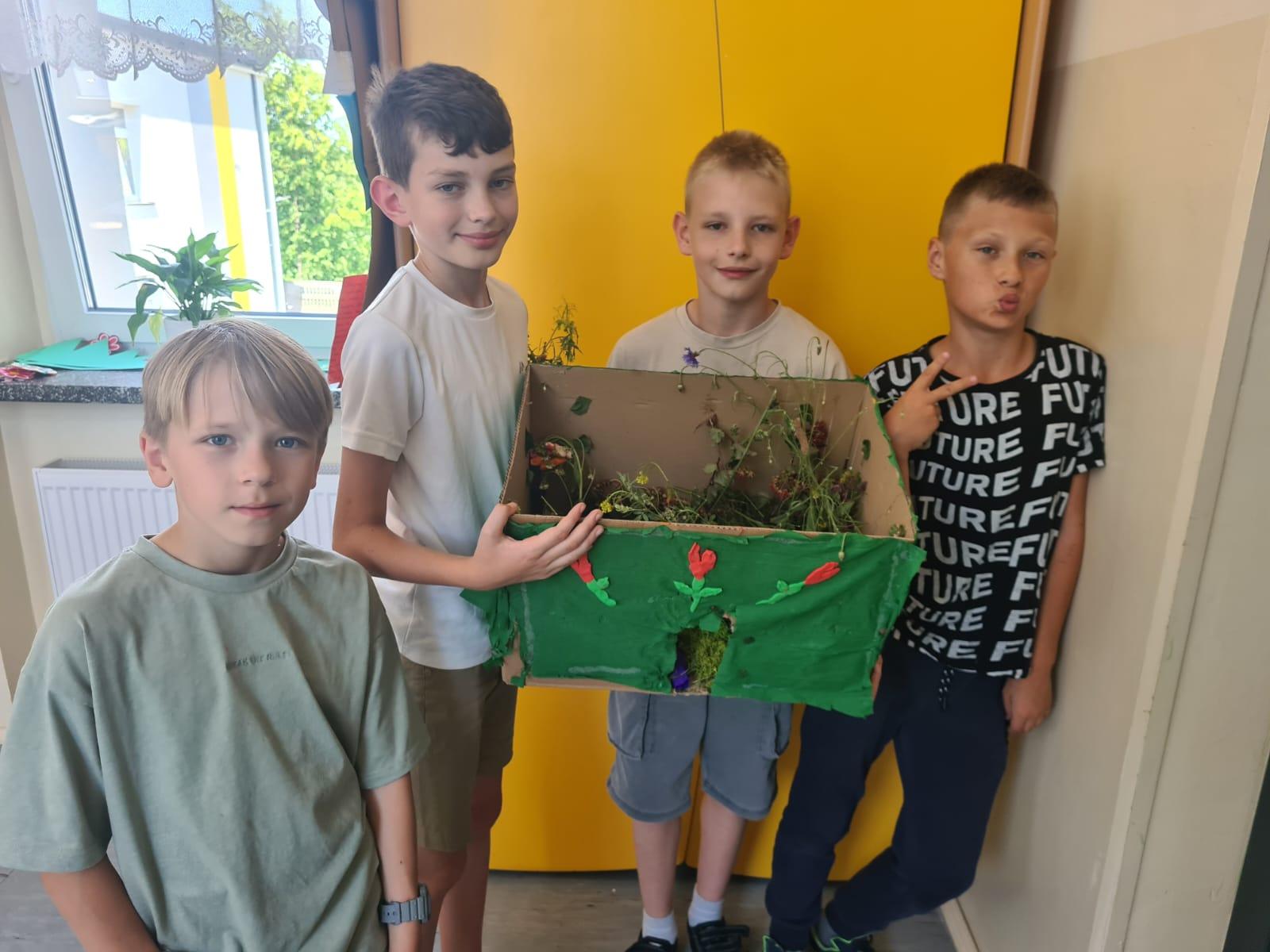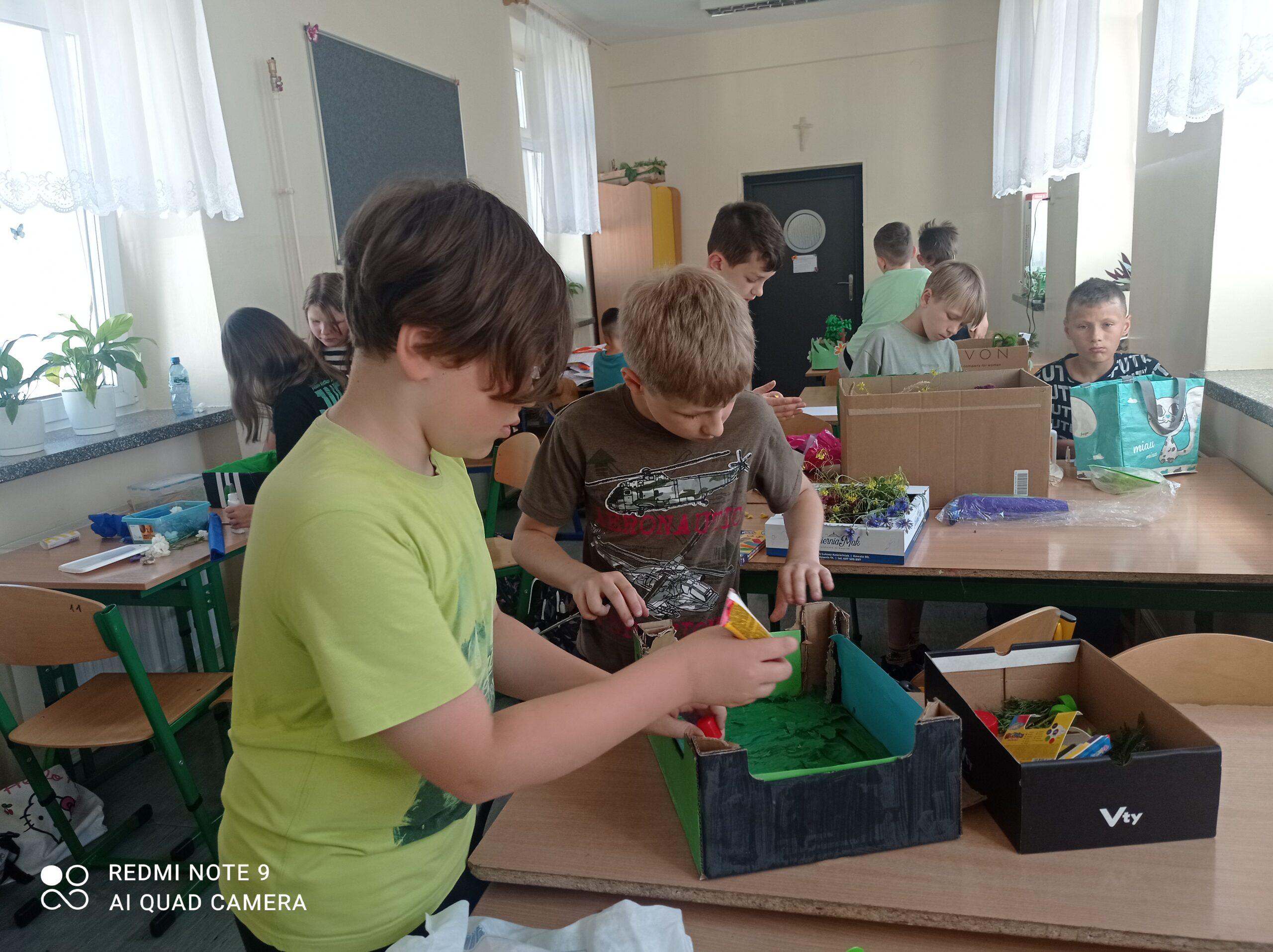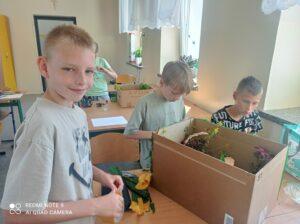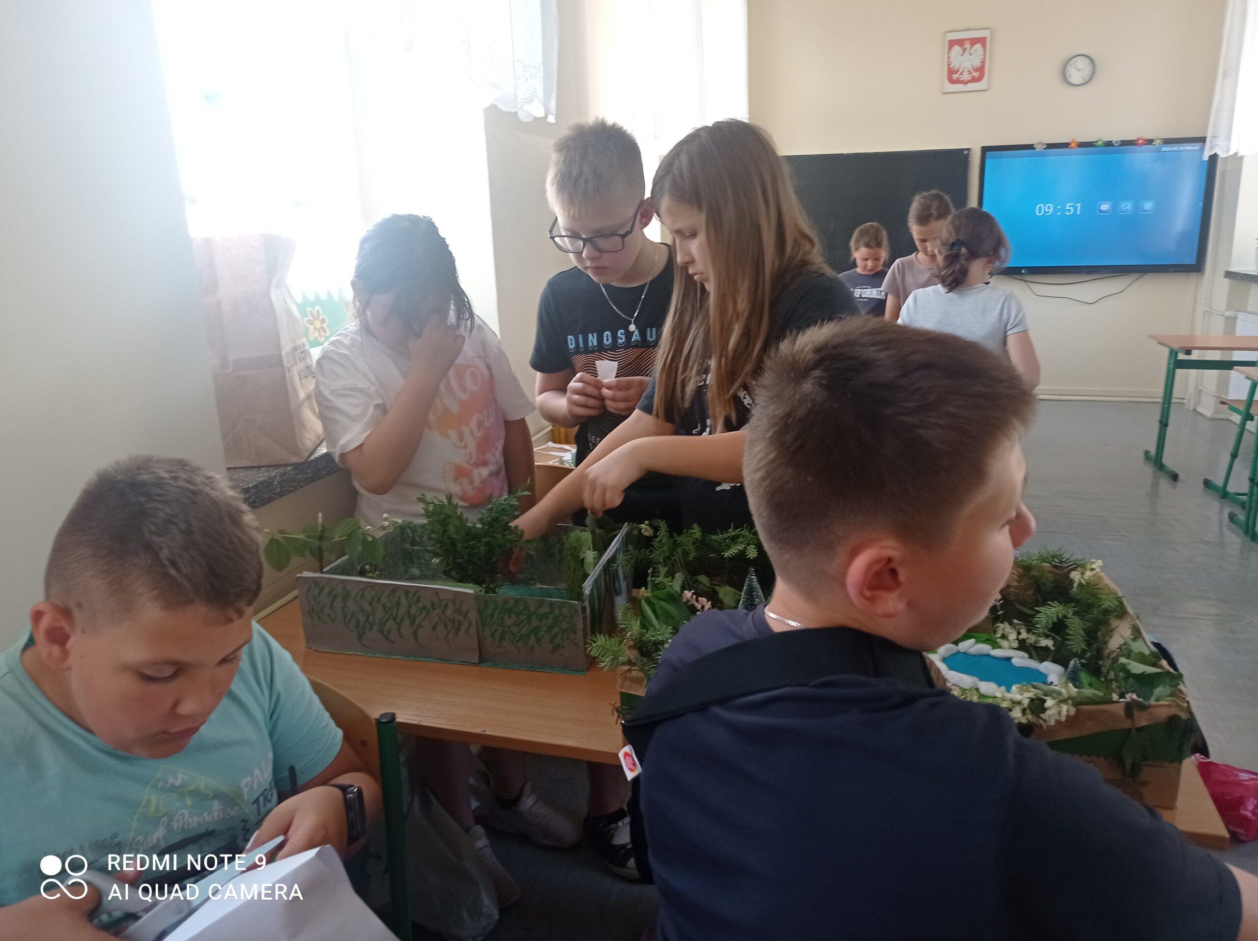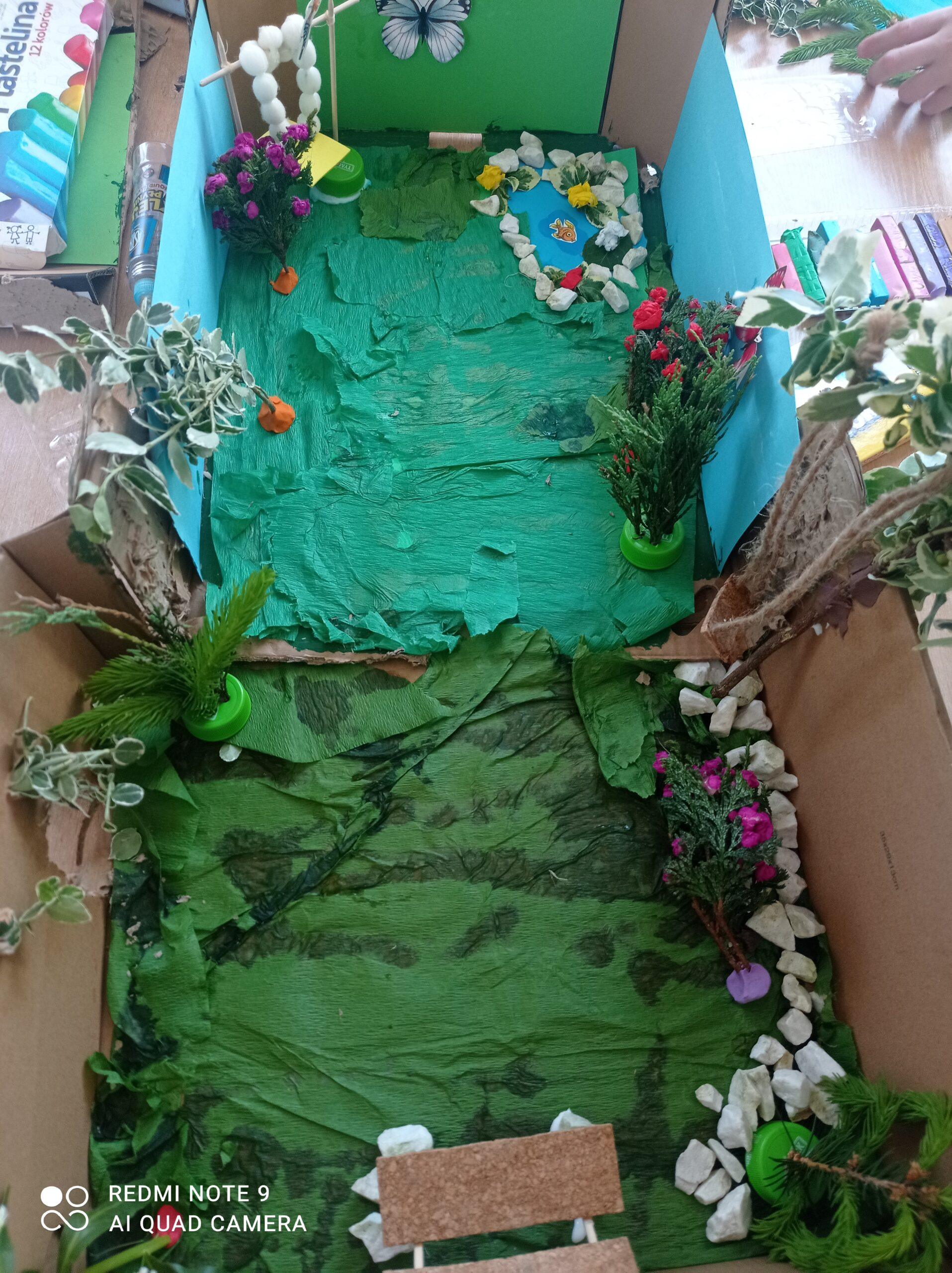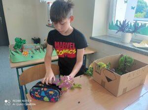 Uczniowie kl. IV a i kl. IV b na zajęciach języka polskiego wykonali barwne przestrzenne makiety tajemniczego ogrodu. Inspiracją była powieść F. H. Burnett pt. „Tajemniczy ogród”. Do zrobienia makiet wykorzystali pudełka, bibułę, papier kolorowy, kamyki, piasek, żywe kwiaty, patyki, plastelinę, gałązki, gąbki, plastikowe figurki itp. Czwartoklasiści z wielkim zaangażowaniem i pasją wykonywali własne oryginalne projekty tajemniczego ogrodu, wykazując się niezwykłą kreatywnością i pomysłowością. Na prostokątnych podkładkach budowali wysoki mur, którym otoczone było to niezwykłe miejsce. Nie zapomnieli o bluszczu i różach, które pięły się po ogrodzeniu, a także o furtce, która została zamknięta na klucz po śmierci pani Craven. Ogród stał się uroczym, bajkowym i magicznym zakątkiem. Pośród zieleni stały kamienne ławeczki, znajdowały się tam również altany oraz szczególne miejsce – drzewo z ławeczką pani Lilias Craven. O tych wszystkich szczegółach i jeszcze wielu innych nie zapomnieli młodzi projektanci. Na koniec liderzy poszczególnych zespołów prezentowali swoje makiety, starannie dobierając słowa i dbając o to, aby ich opis był wyjątkowy. Uczniowie opowiedzieli nie tylko o pracy nad wykonaniem makiet, odnieśli się też do treści lektury i jej bohaterów. Niecodzienna lekcja języka polskiego dostarczyła uczniom niezwykłych wrażeń. Poczuli się jak wielcy architekci. Na uwagę zasługuje zgodna praca zespołowa. Zajęcia cieszyły się ogromnym zainteresowaniem. Prace były przygotowywane w ramach innowacji pedagogicznej „Lektury nie muszą być nudne – twórcze spotkania z lekturami”.