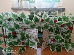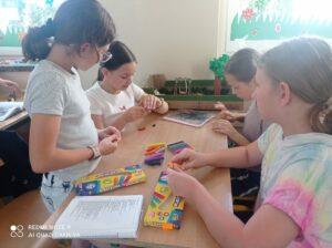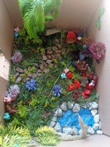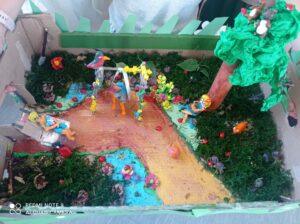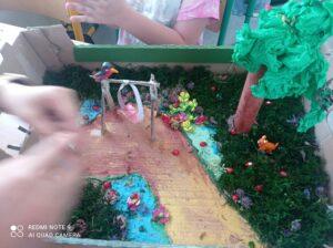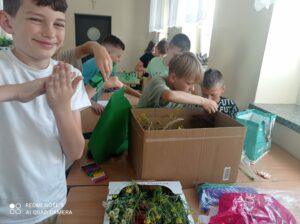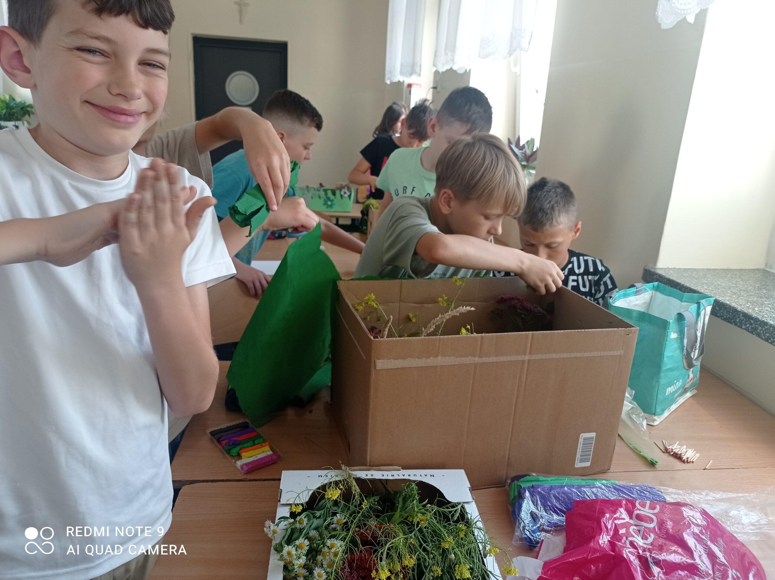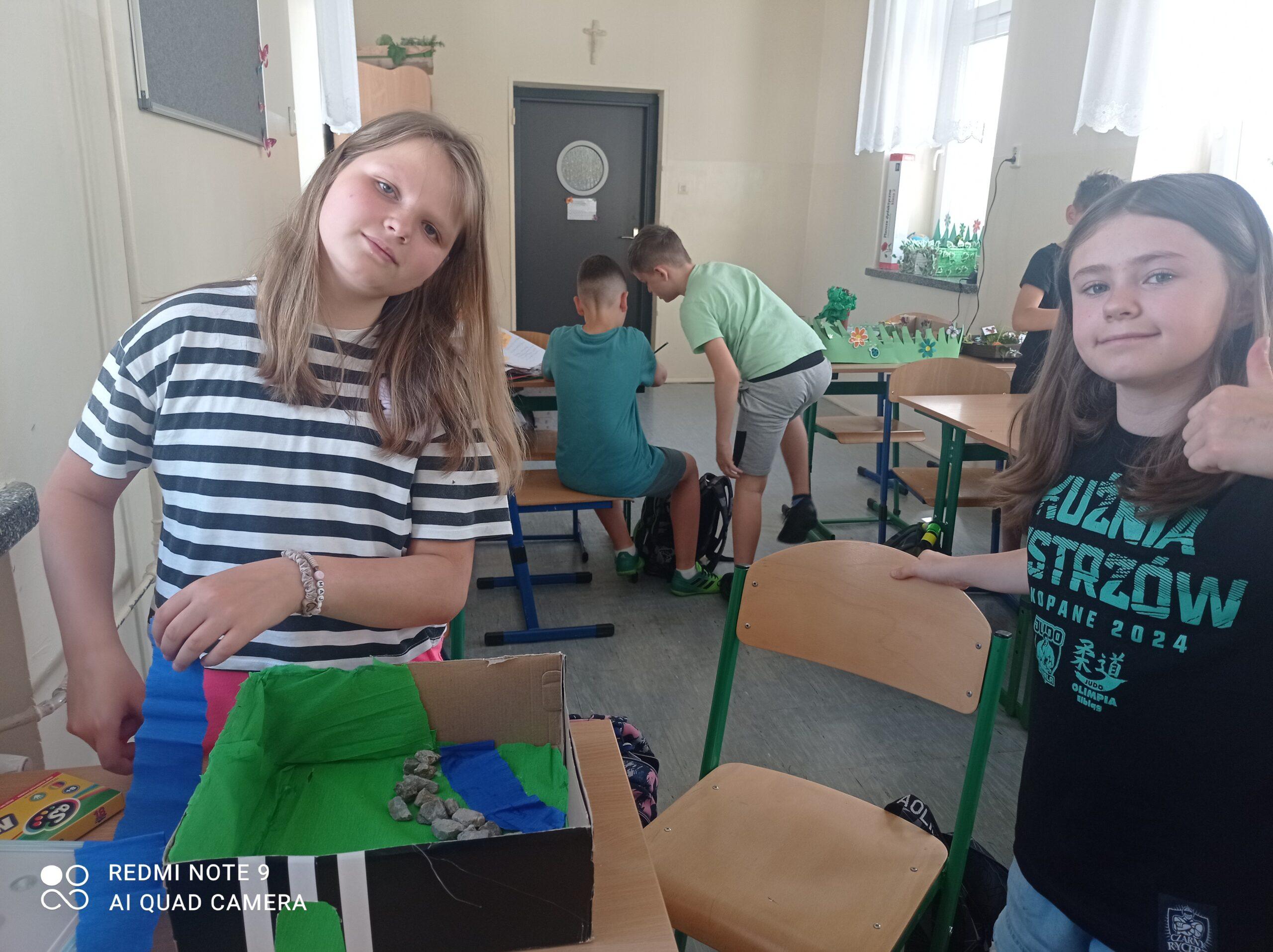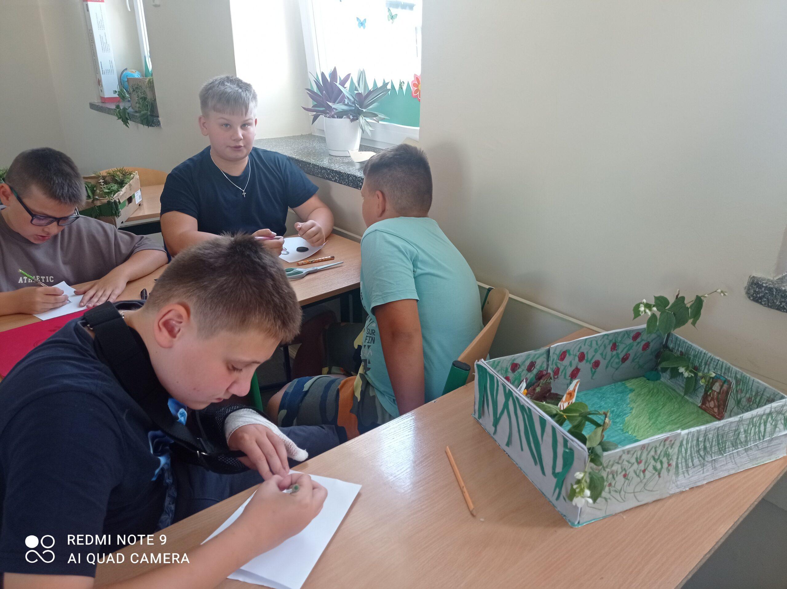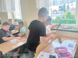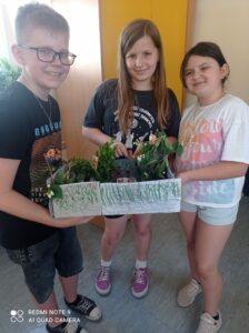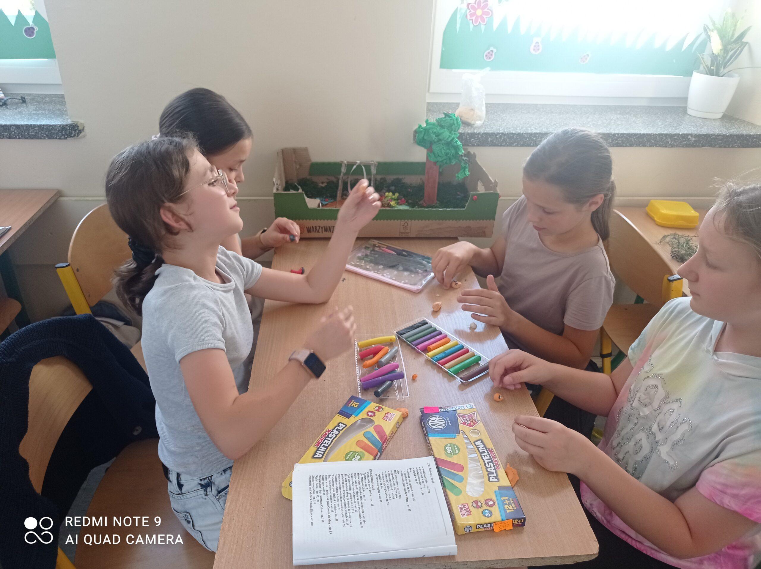 Uczniowie kl. IV a i kl. IV b na zajęciach języka polskiego wykonali barwne przestrzenne makiety tajemniczego ogrodu. Inspiracją była powieść F. H. Burnett pt. „Tajemniczy ogród”. Do zrobienia makiet wykorzystali pudełka, bibułę, papier kolorowy, kamyki, piasek, żywe kwiaty, patyki, plastelinę, gałązki, gąbki, plastikowe figurki itp. Czwartoklasiści z wielkim zaangażowaniem i pasją wykonywali własne oryginalne projekty tajemniczego ogrodu, wykazując się niezwykłą kreatywnością i pomysłowością. Na prostokątnych podkładkach budowali wysoki mur, którym otoczone było to niezwykłe miejsce. Nie zapomnieli o bluszczu i różach, które pięły się po ogrodzeniu, a także o furtce, która została zamknięta na klucz po śmierci pani Craven. Ogród stał się uroczym, bajkowym i magicznym zakątkiem. Pośród zieleni stały kamienne ławeczki, znajdowały się tam również altany oraz szczególne miejsce – drzewo z ławeczką pani Lilias Craven. O tych wszystkich szczegółach i jeszcze wielu innych nie zapomnieli młodzi projektanci. Na koniec liderzy poszczególnych zespołów prezentowali swoje makiety, starannie dobierając słowa i dbając o to, aby ich opis był wyjątkowy. Uczniowie opowiedzieli nie tylko o pracy nad wykonaniem makiet, odnieśli się też do treści lektury i jej bohaterów. Niecodzienna lekcja języka polskiego dostarczyła uczniom niezwykłych wrażeń. Poczuli się jak wielcy architekci. Na uwagę zasługuje zgodna praca zespołowa. Zajęcia cieszyły się ogromnym zainteresowaniem. Prace były przygotowywane w ramach innowacji pedagogicznej „Lektury nie muszą być nudne – twórcze spotkania z lekturami”.
