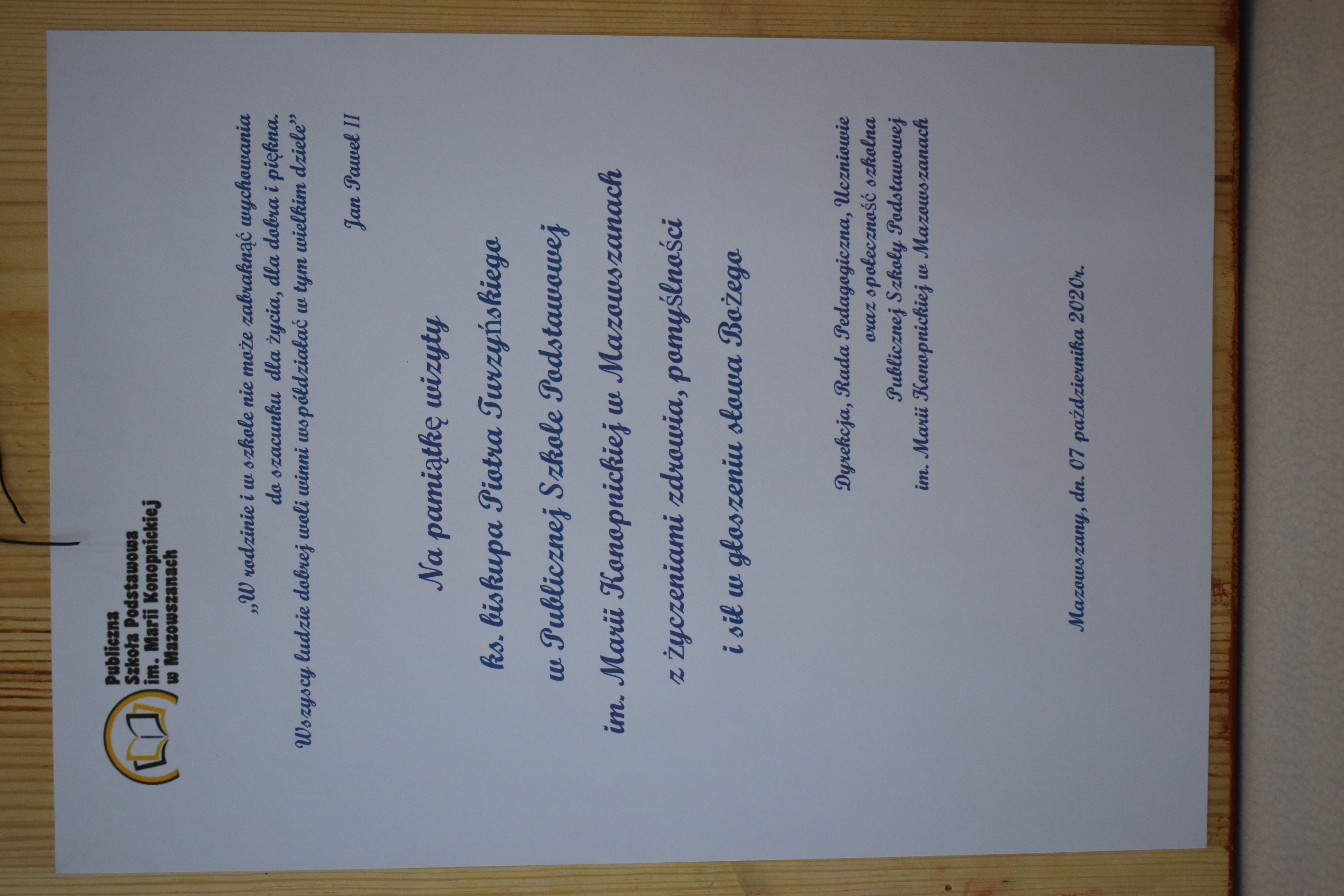 W dniu 7 października 2020 r. miała miejsce w naszej szkole niecodzienne spotkanie- w ramach wizytacji duszpasterskiej parafii Matki Bożej Różańcowej w Mazowszanach, naszą szkołę odwiedził ksiądz biskup Piotr Turzyński.
