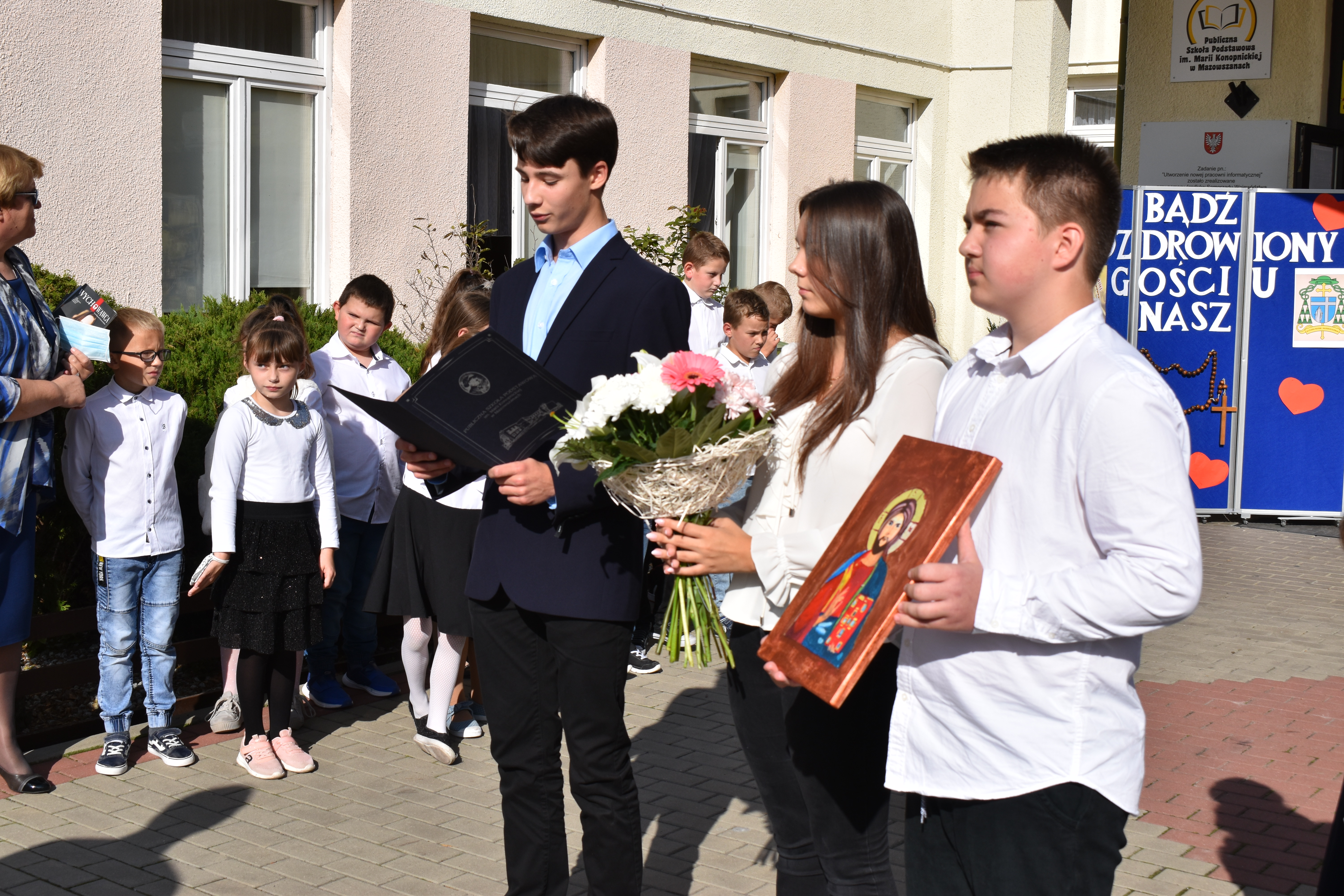 Było to niezwykłe i wzruszające wydarzenie w życiu naszej szkoły. Pozwala dostrzec, że wśród wartości, które wprowadza w życie dziecka szkoła, są też wartości chrześcijańskie i patriotyczne.