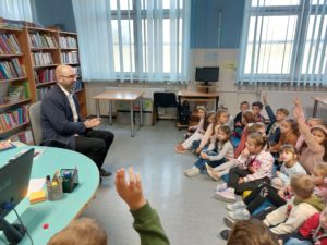 W tym roku po raz kolejny nasza szkoła uczestniczyła w akcji Ogólnopolski Dzień Głośnego Czytania. Punktualnie o godzinie 9:50 nauczyciele przerwali lekcję i zaczęli czytać uczniom swoją ulubioną książkę. Przez ten krótki moment dzieci oderwały się od nauki, relaksowały się, słuchając ciekawych historii oraz poznając interesujących bohaterów i ich przygody. W tym dniu w bibliotece odbyło się pasowanie na czytelników uczniów klas pierwszych. Wysłuchali oni baśni oraz ciekawostek na temat bibliotek na całym świecie.