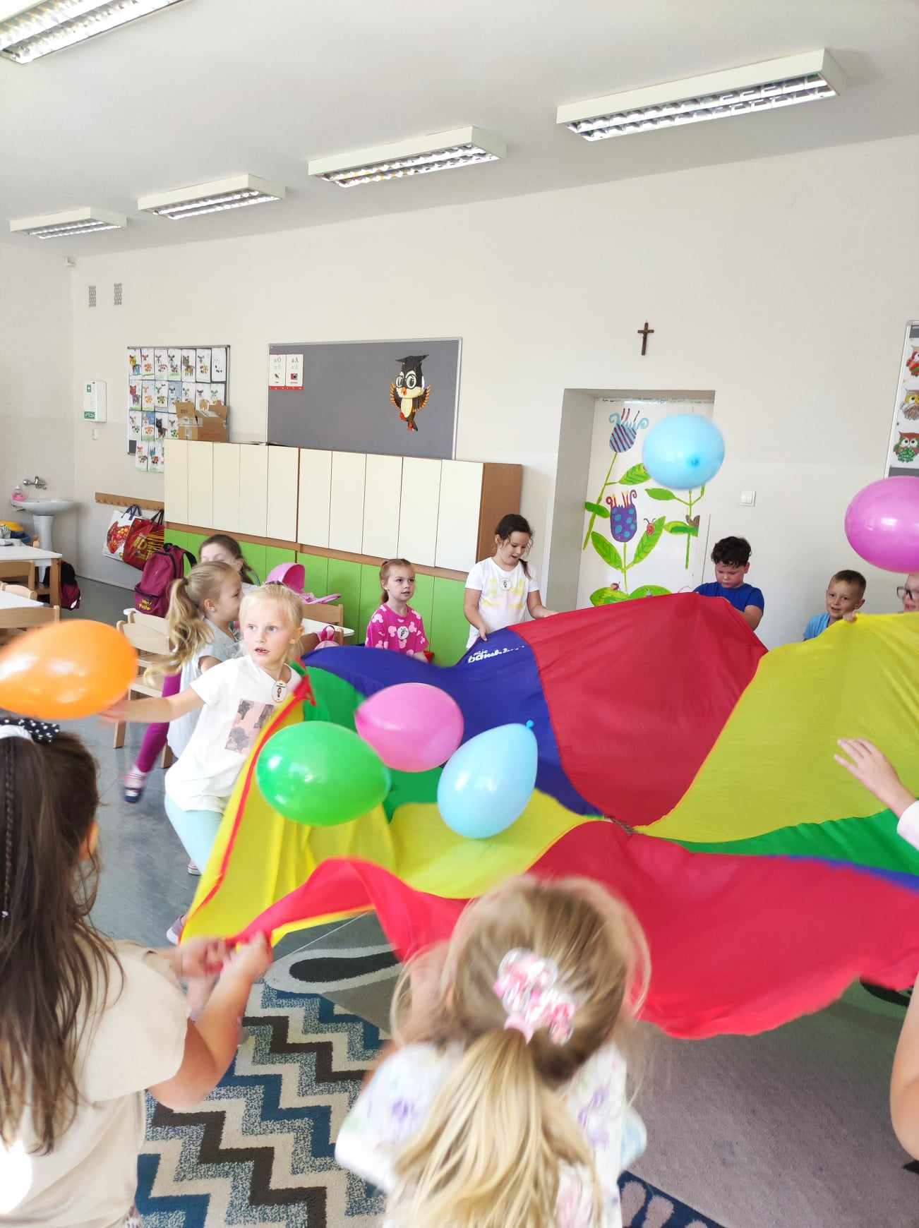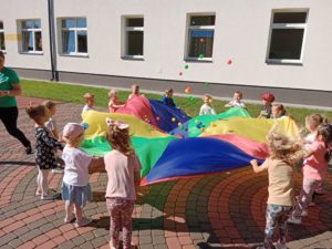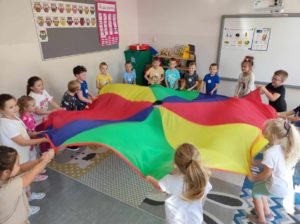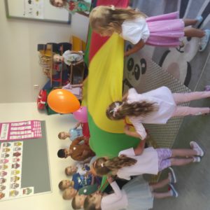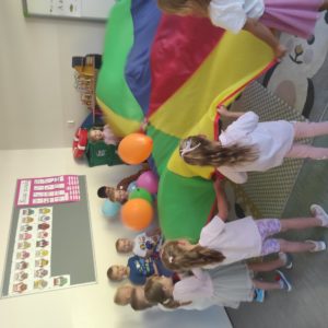 20 września obchodzimy Ogólnopolski Dzień Przedszkolaka. W naszej szkole był to dzień pełen niespodzianek i atrakcji. Przedszkolaki zostały zaproszone do wspólnej zabawy z wykorzystaniem chusty animacyjnej i balonów, do udziału w konkursach i tańcach przy ulubionych przebojach muzyki dla dzieci. Radość, śmiech i głośny doping uczestników świadczyły o wspaniałej zabawie. Dzieci dostały słodkie upominki oraz odznaki wesołego przedszkolaka. Panie wychowawczynie złożyły wszystkim przedszkolakom życzenia, aby każdy dzień był wspaniałą przygodą i niósł ze sobą mnóstwo radości i uśmiechów.