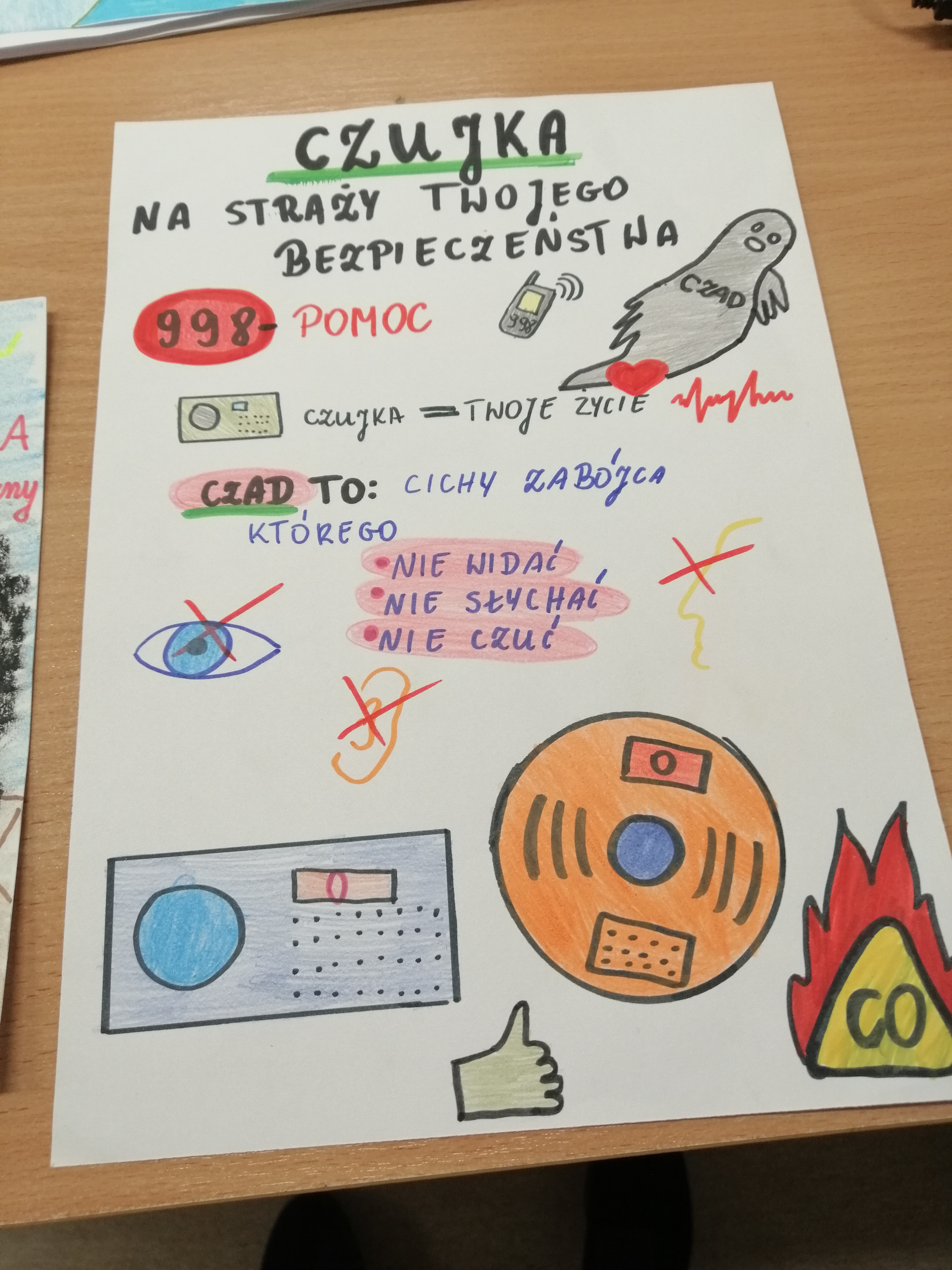 W pierwszym semestrze roku szkolnego 2021/2022 w naszej szkole został ogłoszony konkurs pod hasłem ,,Czujka na straży” zorganizowany przez Państwową Straż Pożarną w Radomiu. Jest to konkurs ogólnopolski. Na konkurs wpłynęły 4 prace, które wykonali uczniowie z klas: 1a,2b i 5a.