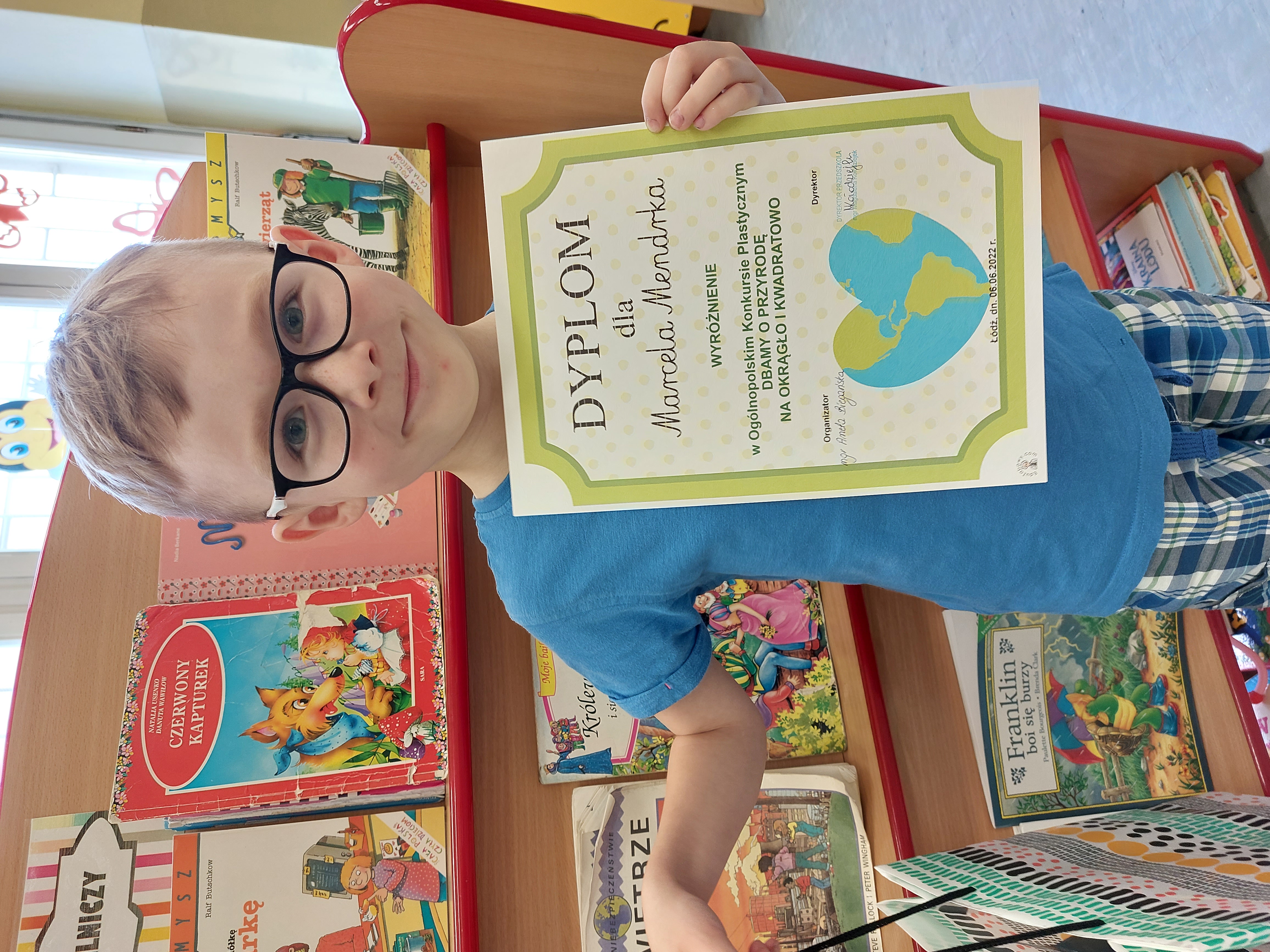 Pragniemy poinformować, że uczniowie naszej szkoły: Lena Lipiec zdobyła I miejsce, natomiast Marcel Mendrek wyróżnienie w ogólnopolskim konkursie plastycznym „Dbamy o przyrodę na okrągło i kwadratowo” zorganizowanego przez Przedszkole Miejskie nr 119 w Łodzi.