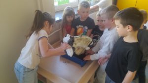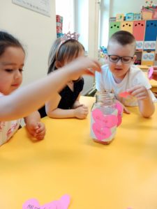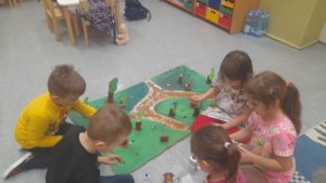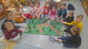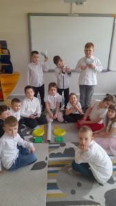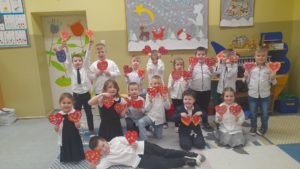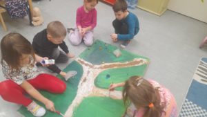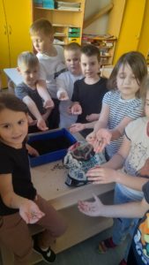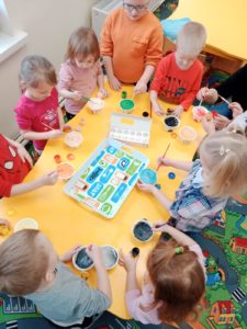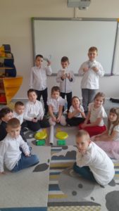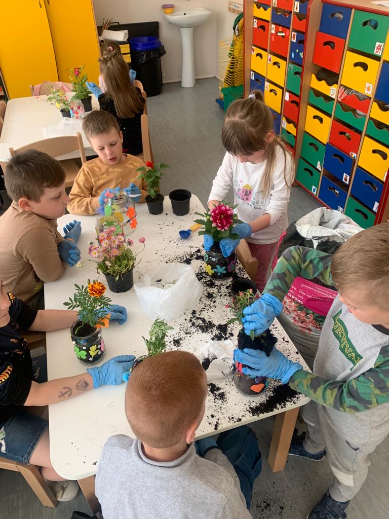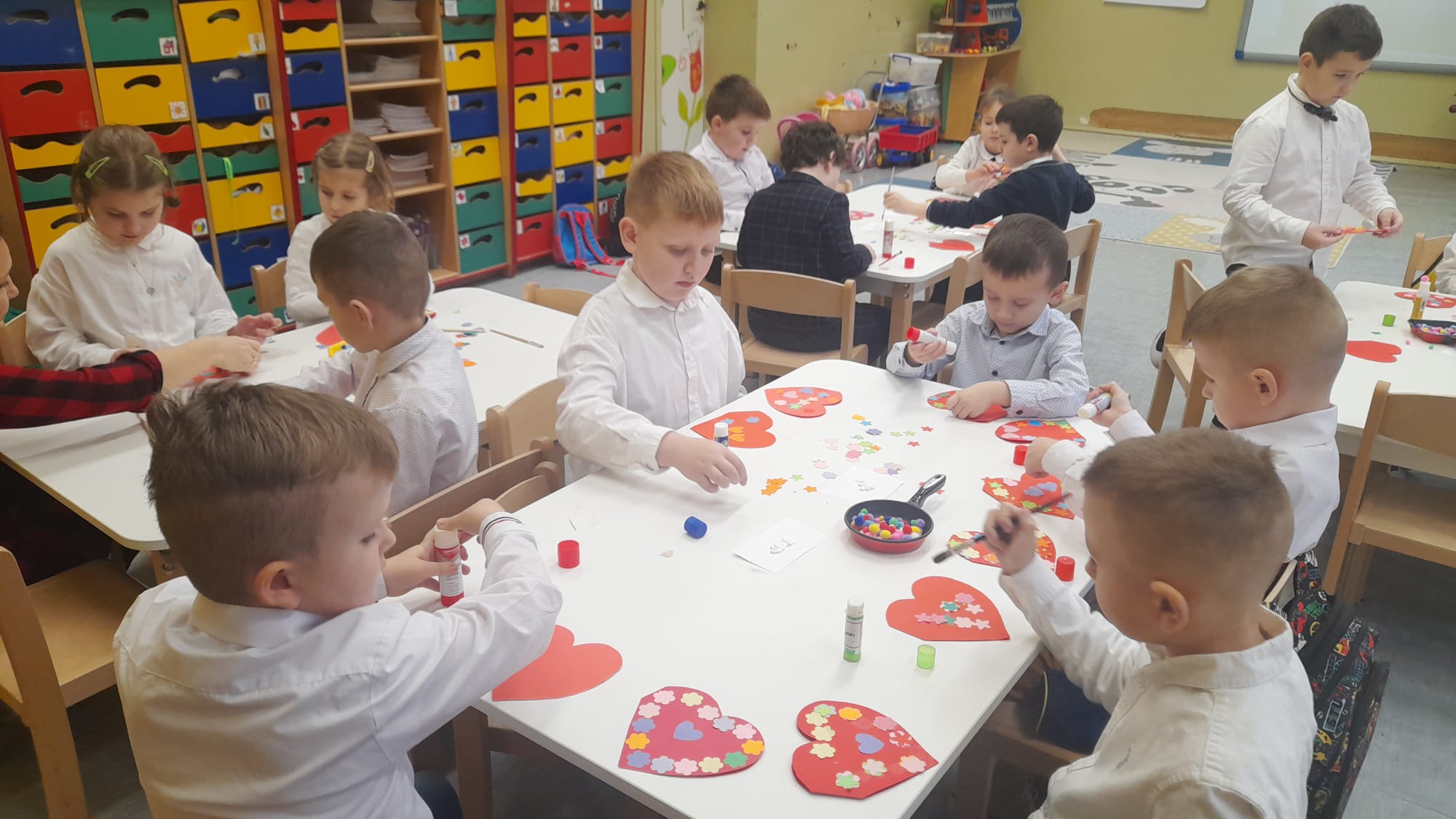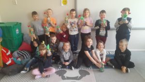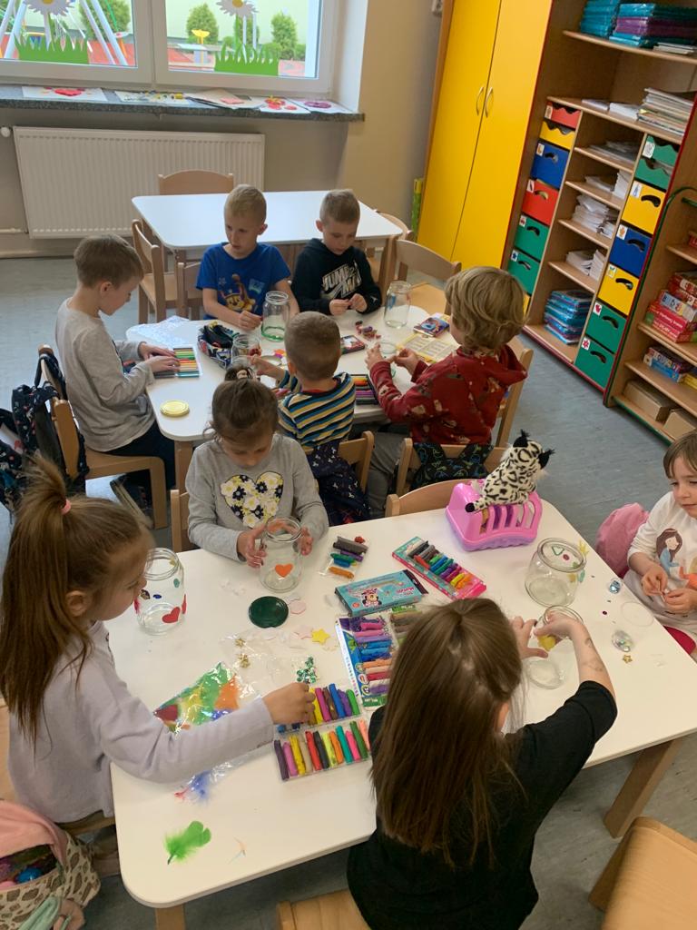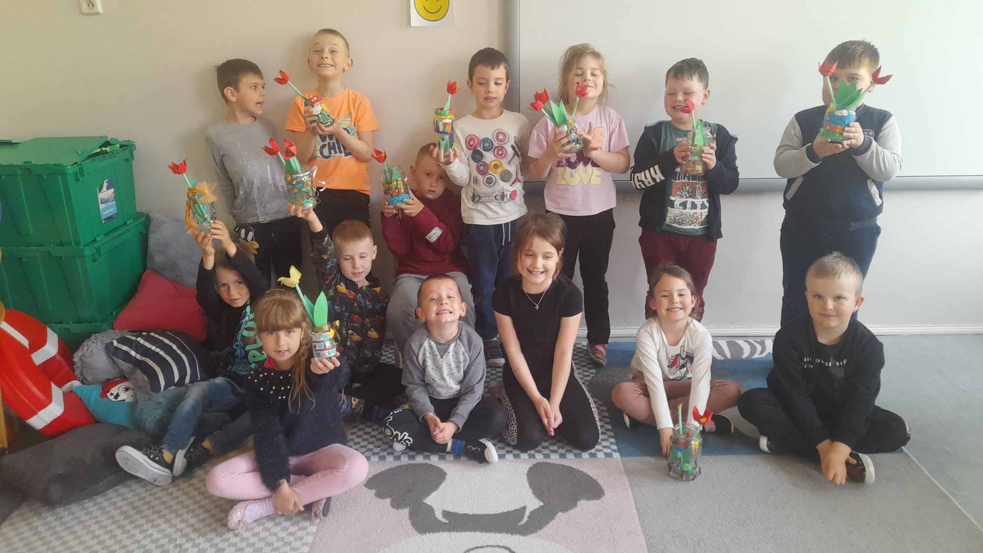 W roku szkolnym 2022/23 w oddziałach przedszkolnych został zrealizowany Ogólnopolski Projekt Edukacyjny Kreatywny Przedszkolak Kreatywne Dziecko. Głównym celem niniejszego projektu były kreatywne i twórcze działania nauczycieli z przedszkolakami oraz uruchamianie twórczości dzieci, by potrafiły zrobić „coś z niczego”. Nauczyciele pokazywali dzieciom, że można tworzyć piękne dzieła niekoniecznie kupując gotowe produkty. Dzieci doskonaliły umiejętności: planowania pracy, logicznego myślenia, motoryki małej, obowiązkowości, koncentracji, skupienia i współpracy. Realizacja projektu przebiegała według harmonogramu. W październiku dzieci wykonały sensoryczne jesienne drzewo, w listopadzie jesienny park, makietę, którą bawiły się i eksperymentowały. Zimą pamiętały o zwierzętach, wykonały karmnik dla ptaków. W styczniu, prezent dla babci i dziadka miał charakter pomponowego zawrotu głowy. W lutym dzieci malowały po lodzie. W marcu układały wiosenną symetrię, eksperymentowały z lustrem. W kwietniu dbały o ziemię, tworzyły łąki kwiatowe, brały udział w sadzeniu drzew w ogrodzie przedszkolnym. W maju wykonały słoik pełen miłości dla mamy i taty. Jesteśmy dumni z naszych przedszkolaków!