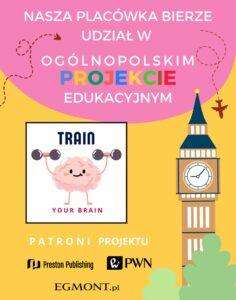 W bieżącym roku szkolnym uczniowie klasy 4a pod opieką p. Magdaleny Gębskiej dołączyli do Ogólnopolskiego Projektu Edukacyjnego Train Your Brain. Głównym celem projektu jest wspieranie i wzmacnianie procesu uczenia się poprzez angażowanie uczniów w praktyczne, realne zadania, które rozwijają ich umiejętności, wiedzę oraz kompetencje społeczne i emocjonalne. Projekt ma na celu nie tylko zwiększenie zasobu słownictwa i poprawę gramatyki, ale także doskonalenie umiejętności mówienia, słuchania, czytania i pisania w języku angielskim. A oto fotorelacja z realizacji pierwszego zadania. Było wesoło i kreatywnie.