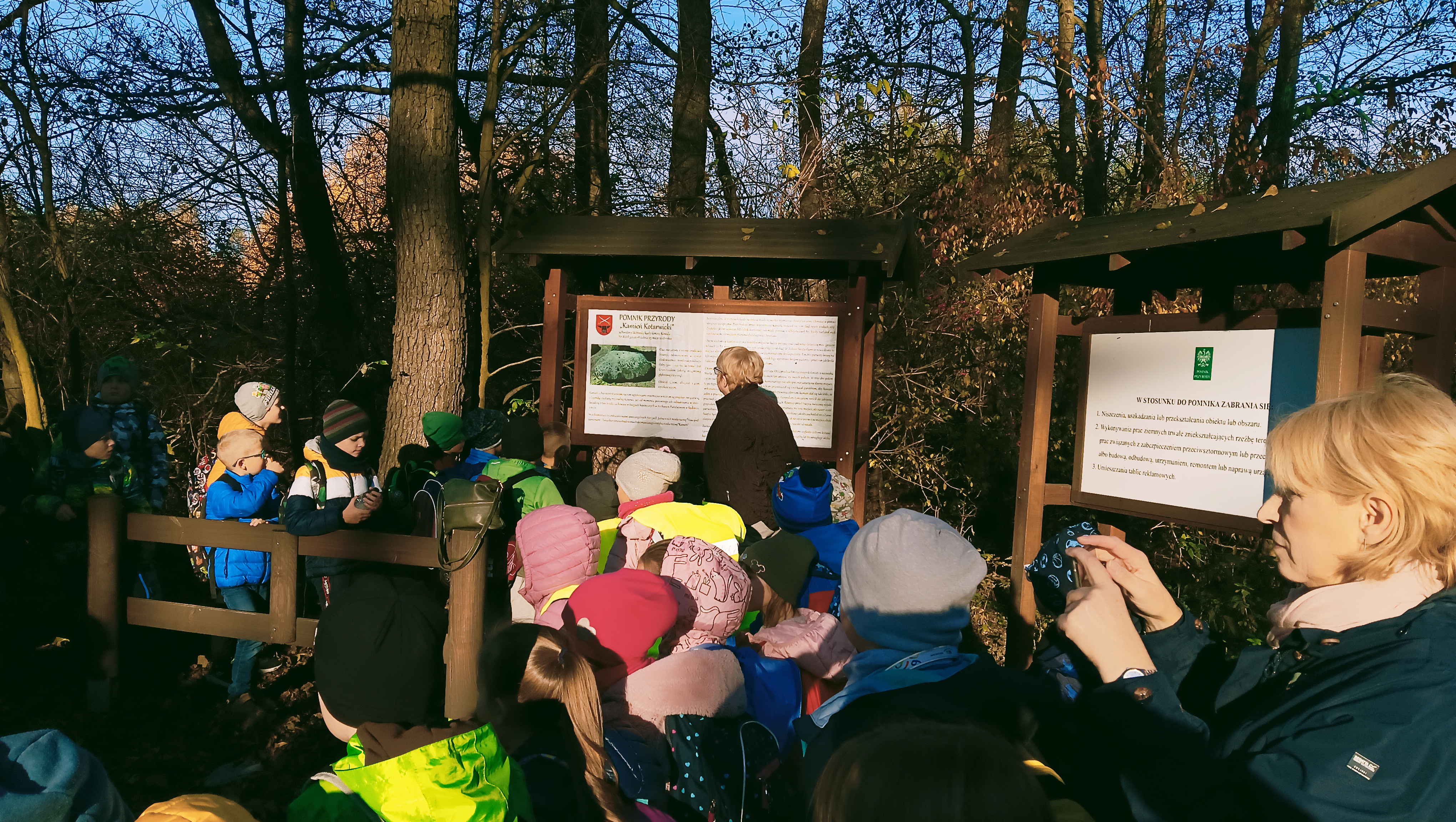 W czasie wycieczki odwiedziliśmy również POMNIK PRZYRODY „Kamień Kotarwicki”. Pani Dorota wychowawczyni klasy 1b opowiedziała uczniom dzieje i legendy związane z kamieniem. To była bardzo ważna lekcja wychowania rodzinnego, obywatelskiego i patriotycznego, która pozostanie dzieciom w pamięci.