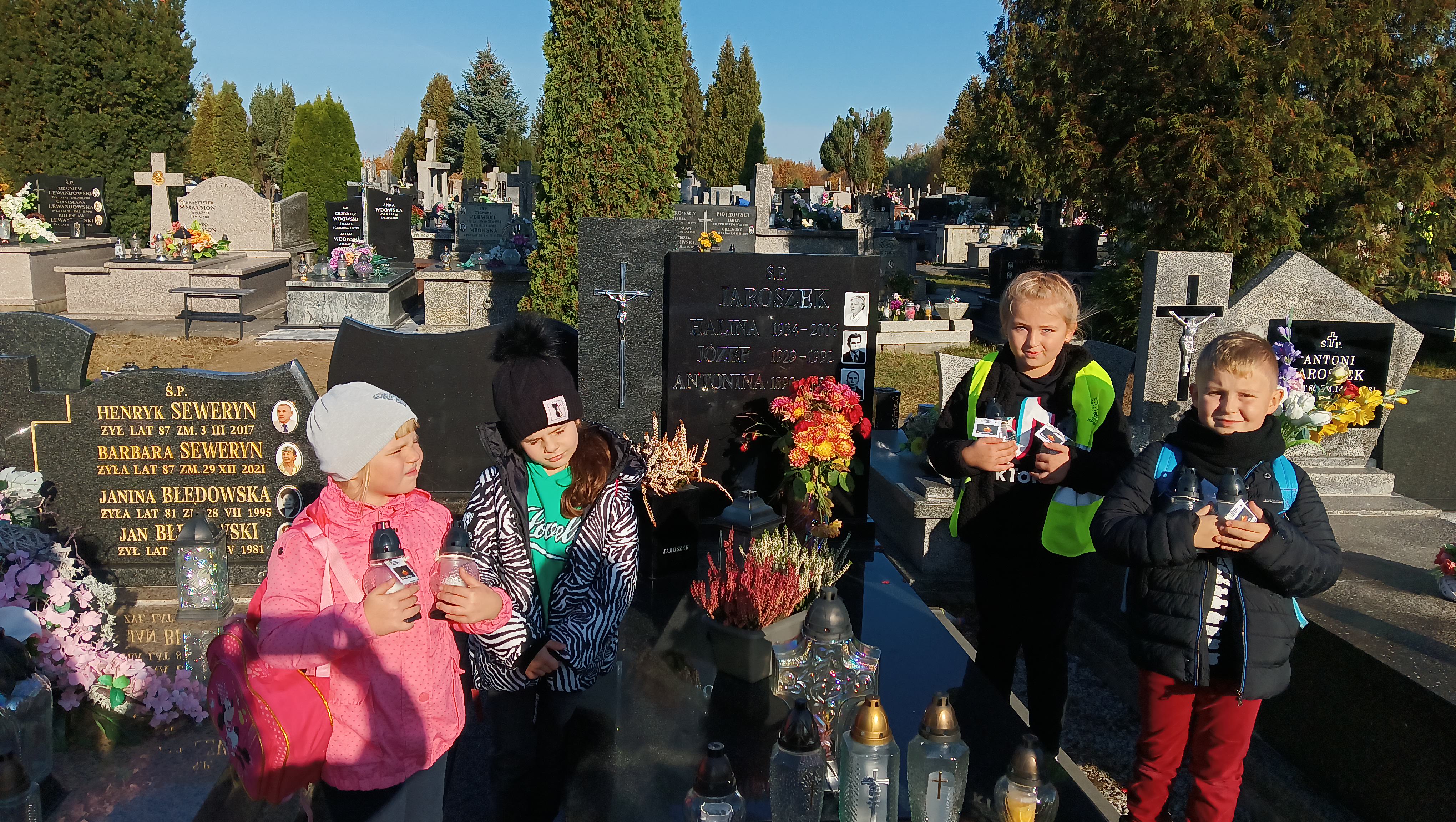 W dniu 27 października uczniowie klas I i II wraz z wychowawczyniami, a także przedstawiciele Małego Samorządu Uczniowskiego wybrali się na Cmentarz Parafialny w Trablicach, celem uczczenia pamięci zmarłych.