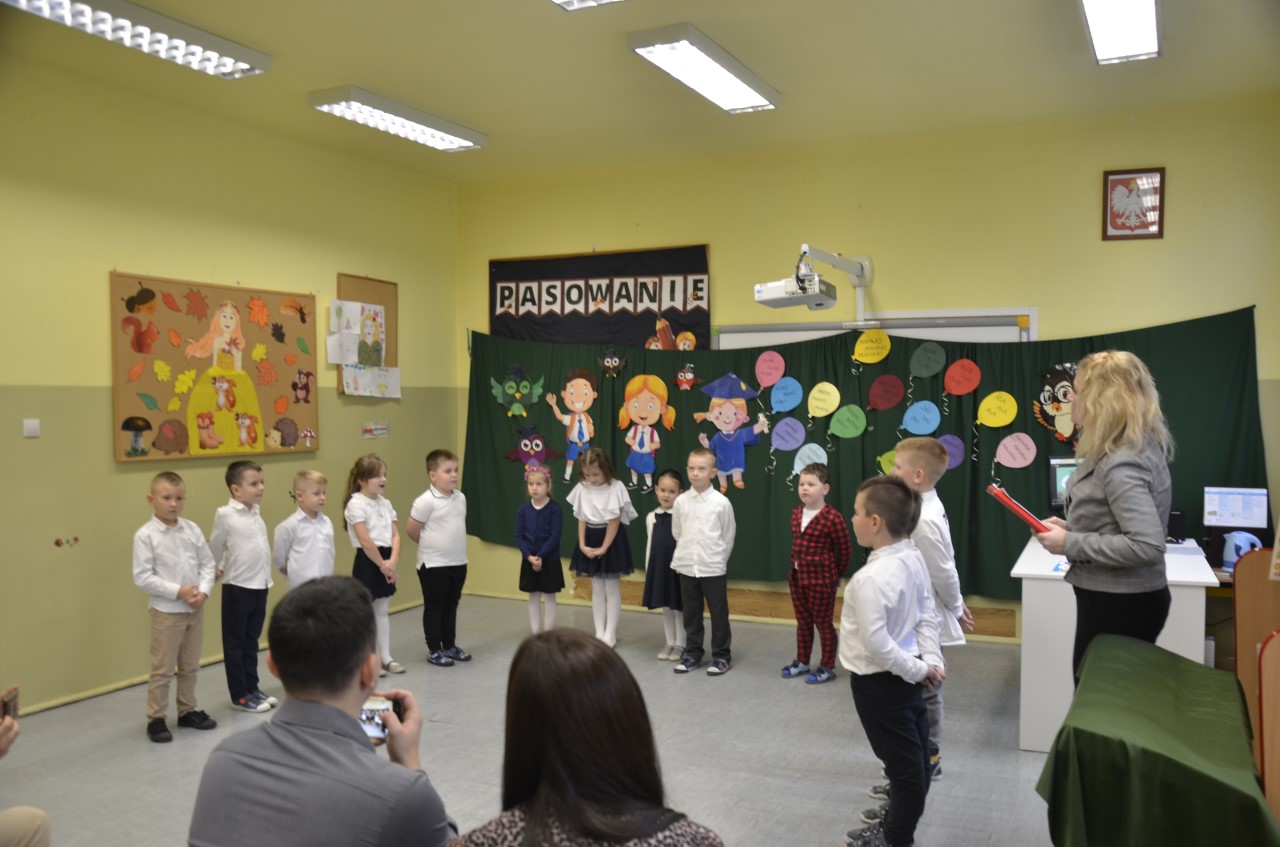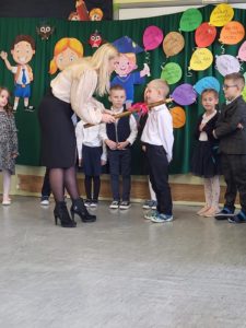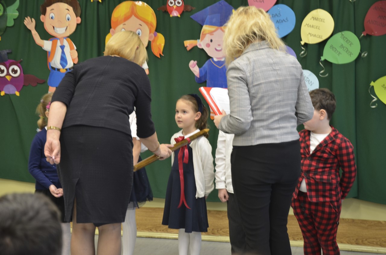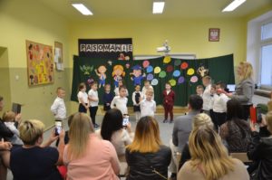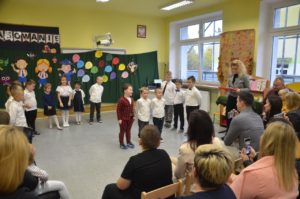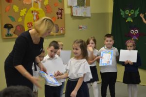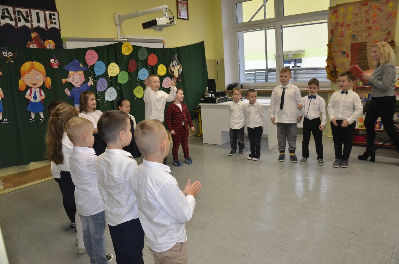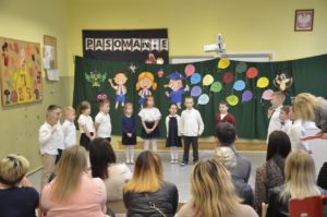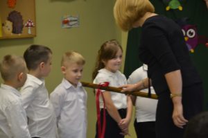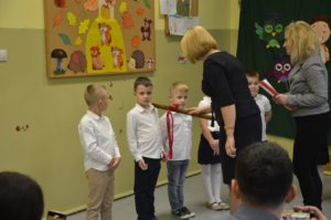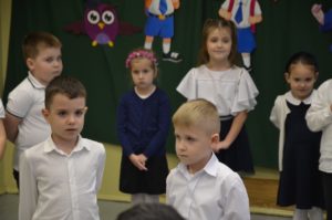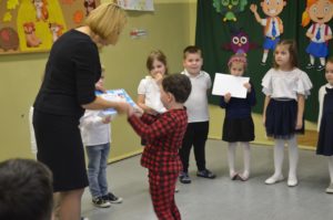 Dzieci podekscytowane wyczekiwały zaproszonych na tę uroczystość gości- Pań Dyrektor oraz Rodziców. Specjalnie na tę okazję przygotowały występ artystyczny, prezentując to, czego od września nauczyły się podczas zajęć. Były wiersze, tańce i śpiew. Znamienita publiczność doceniła kunszt młodych artystów, nagradzając ich zaangażowanie gromkimi brawami.