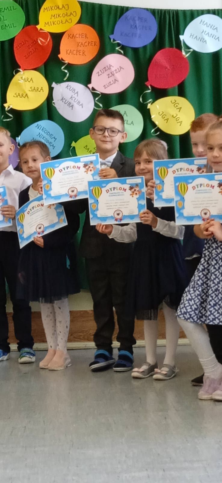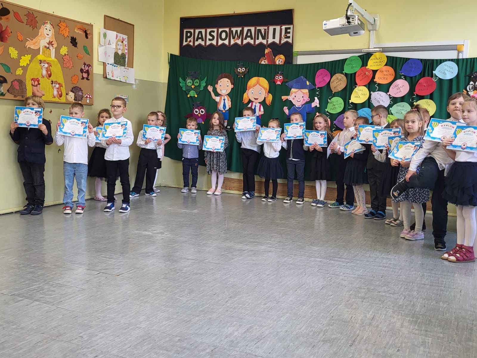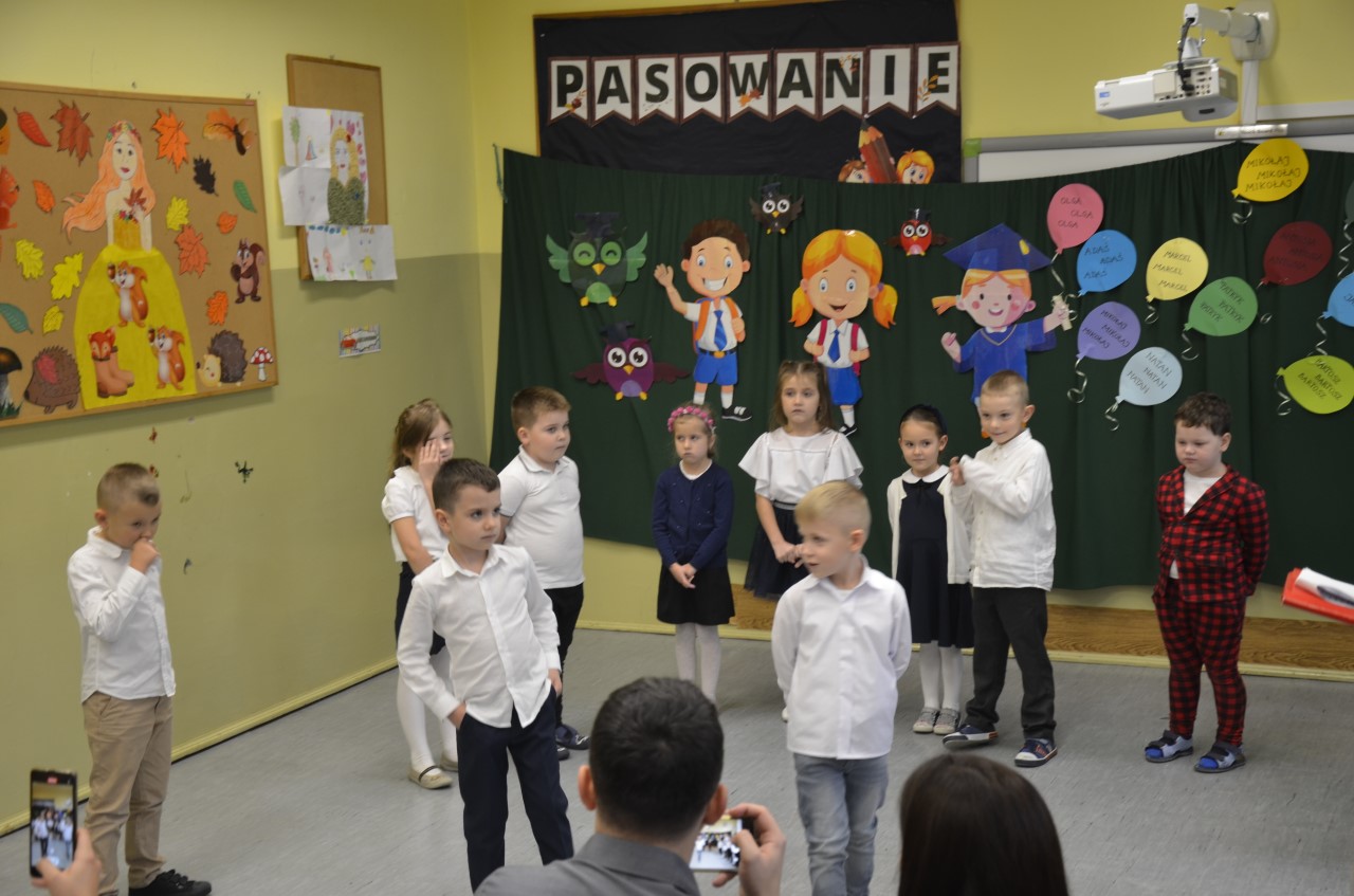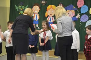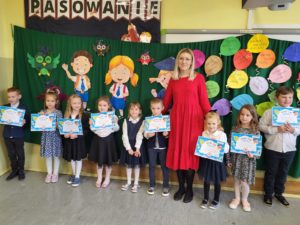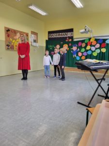 Dzieci podekscytowane wyczekiwały zaproszonych na tę uroczystość gości- Pań Dyrektor oraz Rodziców. Specjalnie na tę okazję przygotowały występ artystyczny, prezentując to, czego od września nauczyły się podczas zajęć. Były wiersze, tańce i śpiew. Znamienita publiczność doceniła kunszt młodych artystów, nagradzając ich zaangażowanie gromkimi brawami.