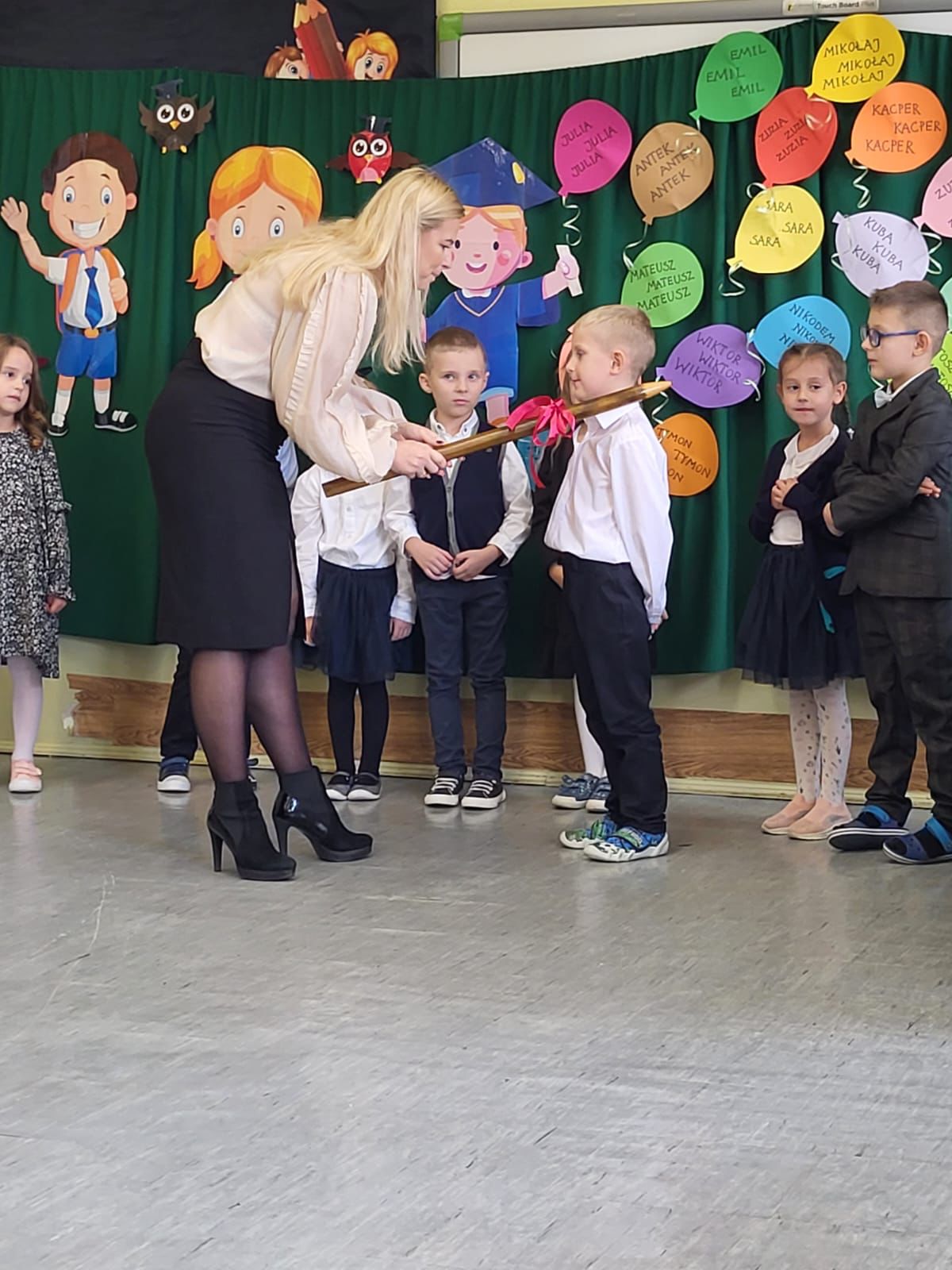W tym roku szkolnym uroczystego aktu pasowania na zerówkowicza w oddziale O a dokonała Pani Wicedyrektor Agnieszka Czerwińska, natomiast w oddziale O b – Pani Dyrektor Małgorzata Trelka. Następnie Panie Dyrektor wręczyły dzieciom pamiątkowe dyplomy, złożyły gratulacje oraz życzyły dalszych sukcesów. Na zakończenie nasi milusińscy otrzymali również upominki oraz poczęstunek od Rodziców.