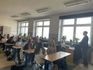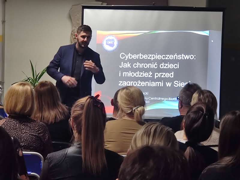 Dodatkowo 9 listopada 2022r., sierż. szt. Jan Suracki wygłosił prelekcję skierowaną do rodziców i nauczycieli dotyczącą cyberbezpieczeństwa- „Jak chronić dzieci i młodzież przed zagrożeniami w Sieci.” Poruszono wiele kwestii dotyczących aktywności dzieci w Internecie oraz korzystania przez nich z urządzeń mobilnych. Dorośli poznali wiele aplikacji, komunikatorów, stron, z których korzysta młodzież, a także usłyszeli współczesną „nowomowę”.