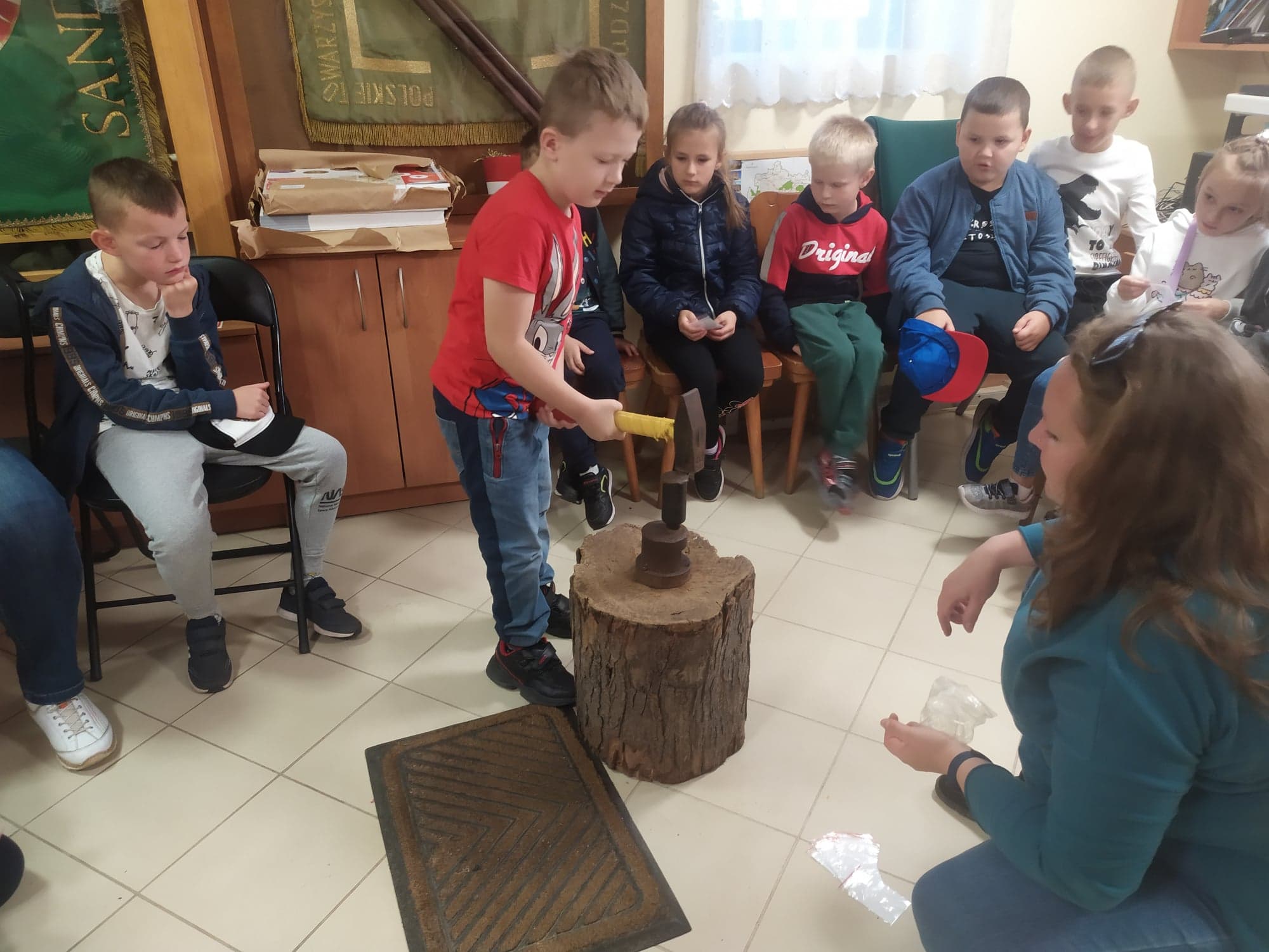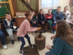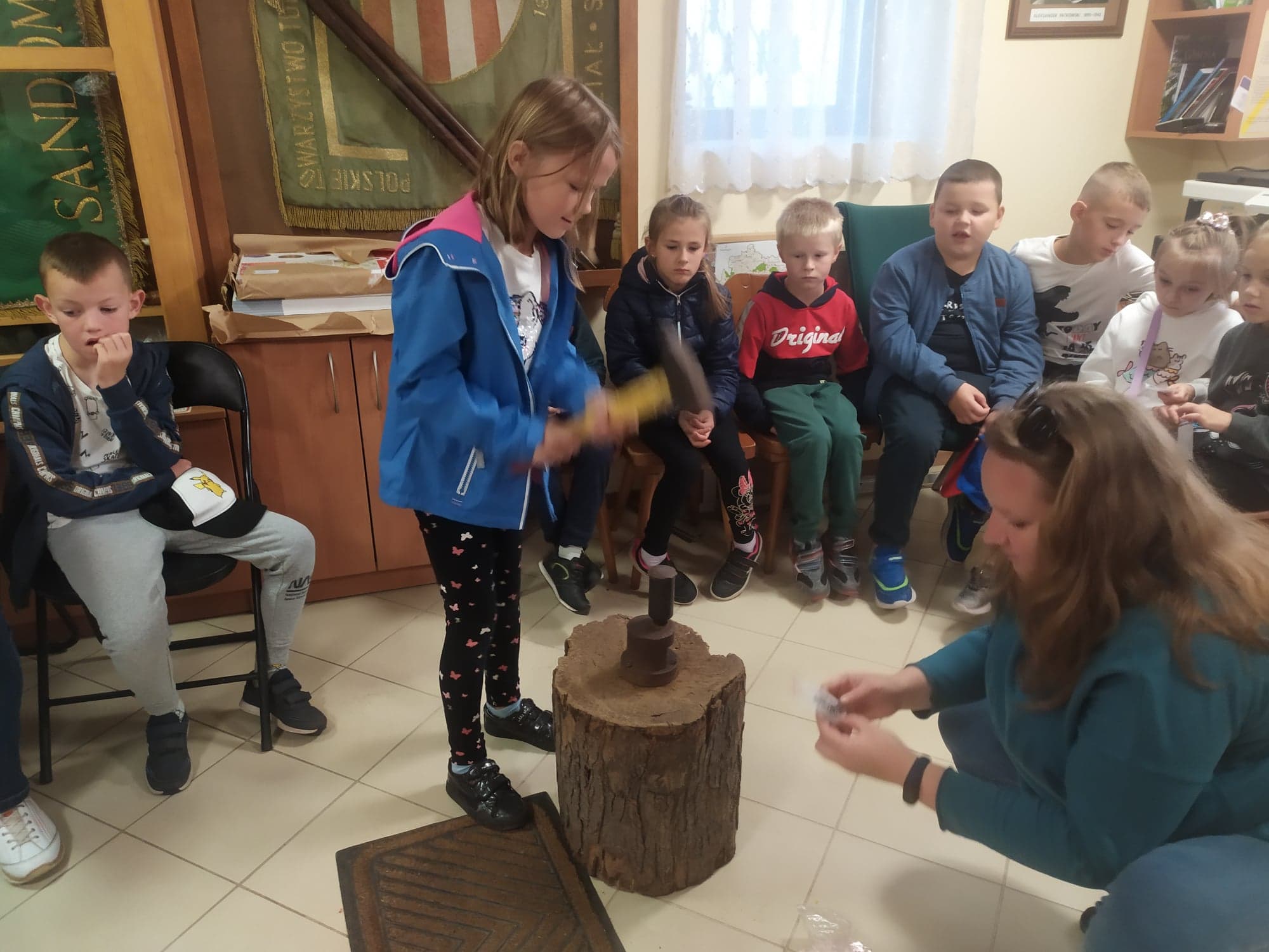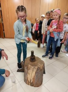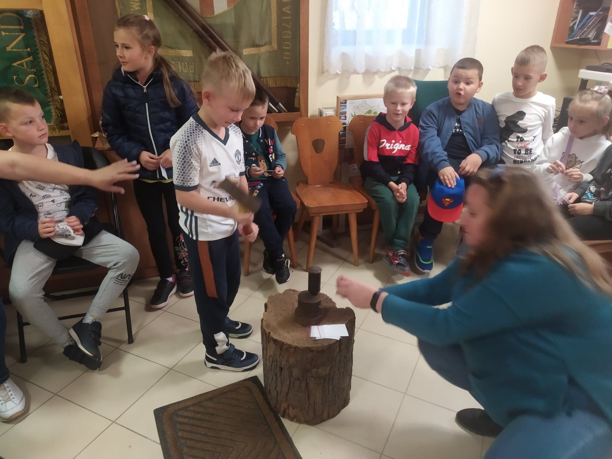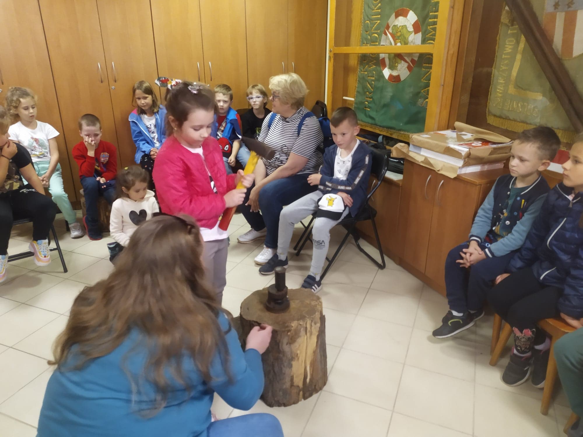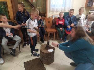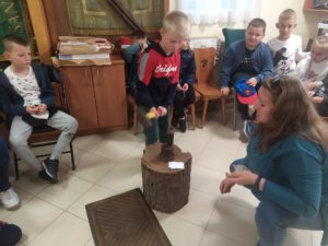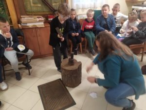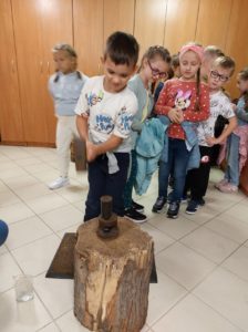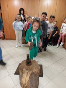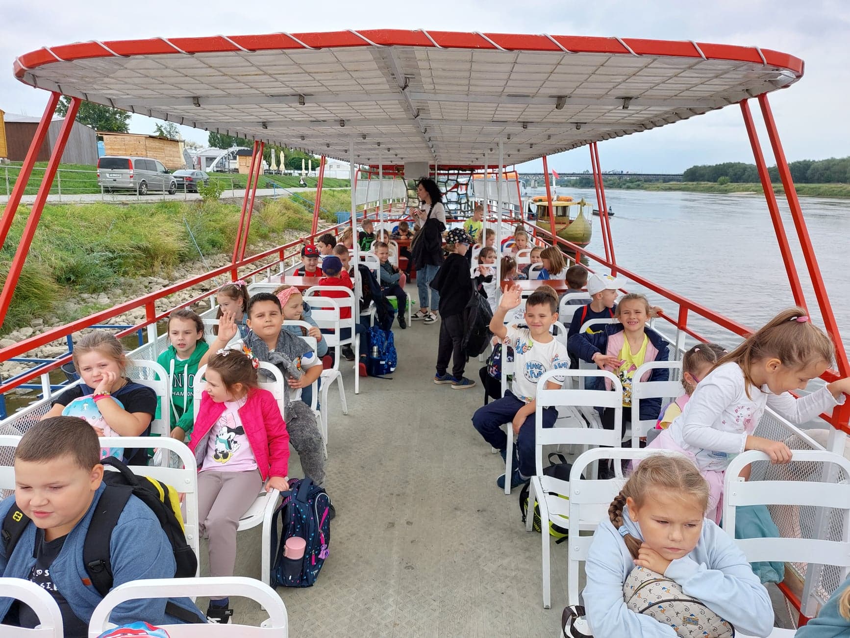 Za nami pierwsza wycieczka. Byliśmy w pięknym nadwiślańskim mieście – Sandomierzu. W czasie podróży podziwialiśmy krajobraz Wyżyny Sandomierskiej i widoczne pasmo Gór Świętokrzyskich. Sandomierz powitał nas piękną pogodą. Pani przewodnik opowiedziała nam różne fakty z historii Sandomierza. Powędrowaliśmy do Zbrojowni. Tam przeżywaliśmy chwile wielkiej radości, poznając dzieje miasta. Potem mogliśmy założyć stroje pochodzące z dawnych czasów. Niezapomniane wrażenia były w Podziemnej Trasie Turystycznej, na Bramie Opatowskiej, podczas własnoręcznego wybijania monety. Po zakupie pamiątek czekał nas pyszny obiad . Wycieczkę zakończył rejs statkiem po Wiśle pod okiem kapitana.