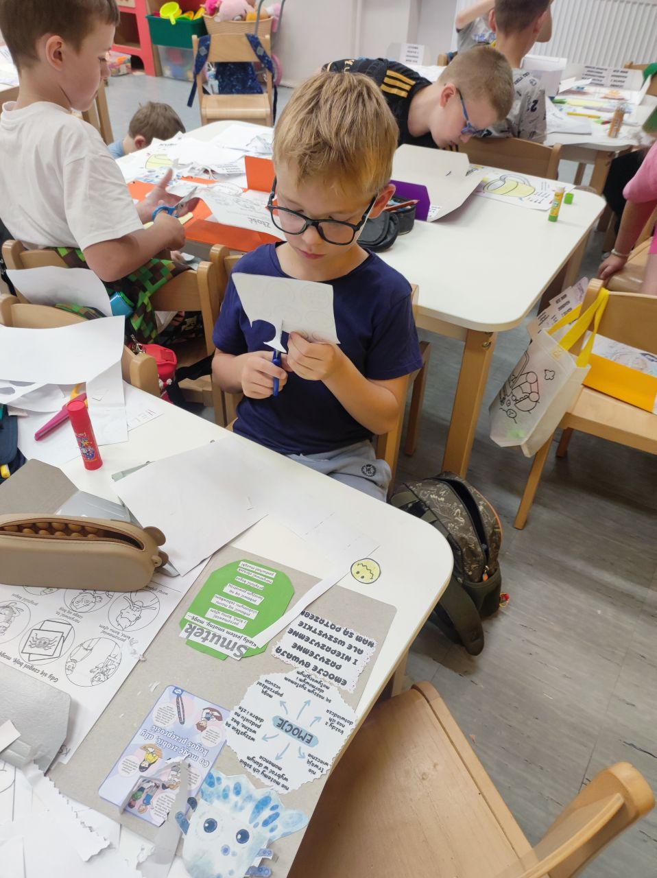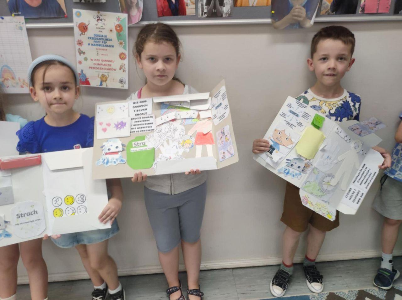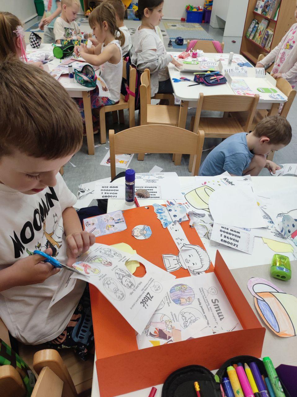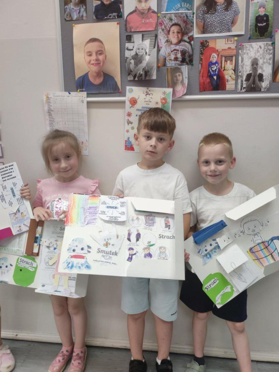W ramach podsumowania wiedzy odbył się quiz emocjonalny, a dzieci tworzyły własne lapbooki i odgrywały scenki dramowe. Dużo radości przyniosły również emocjonalne kalambury oraz zabawy grupowe, które rozwijały współpracę i komunikację.