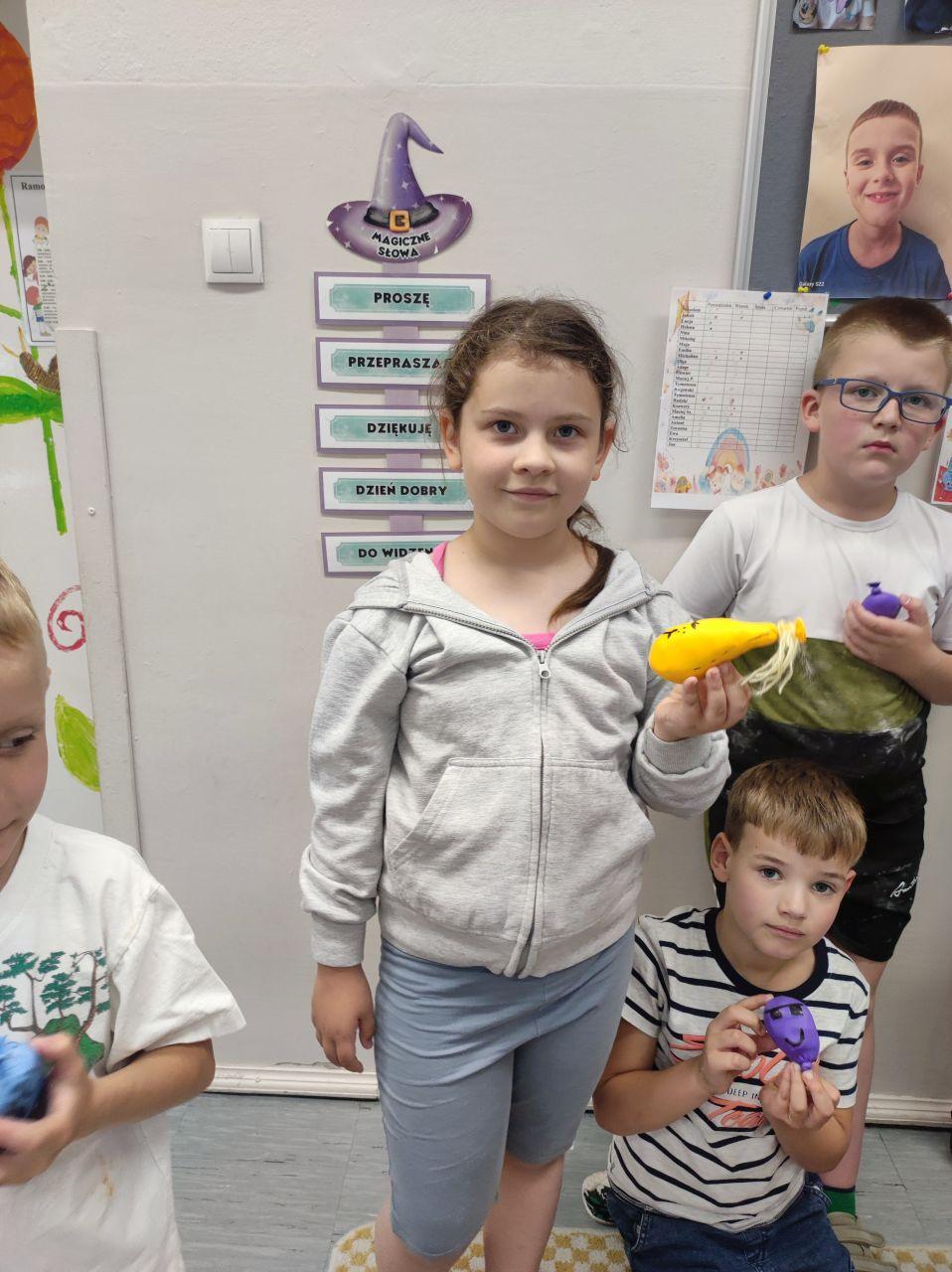Na początku dzieci poznawały emocje takie jak radość, smutek i strach, a następnie przyjrzały się bliżej złości – ucząc się, jak ją rozpoznawać i bezpiecznie wyrażać. Wykonywały gniotki, tworzyły kącik złości, eksperymentowały z balonami, uczestniczyły w ćwiczeniach relaksacyjnych i zabawach sensorycznych.