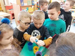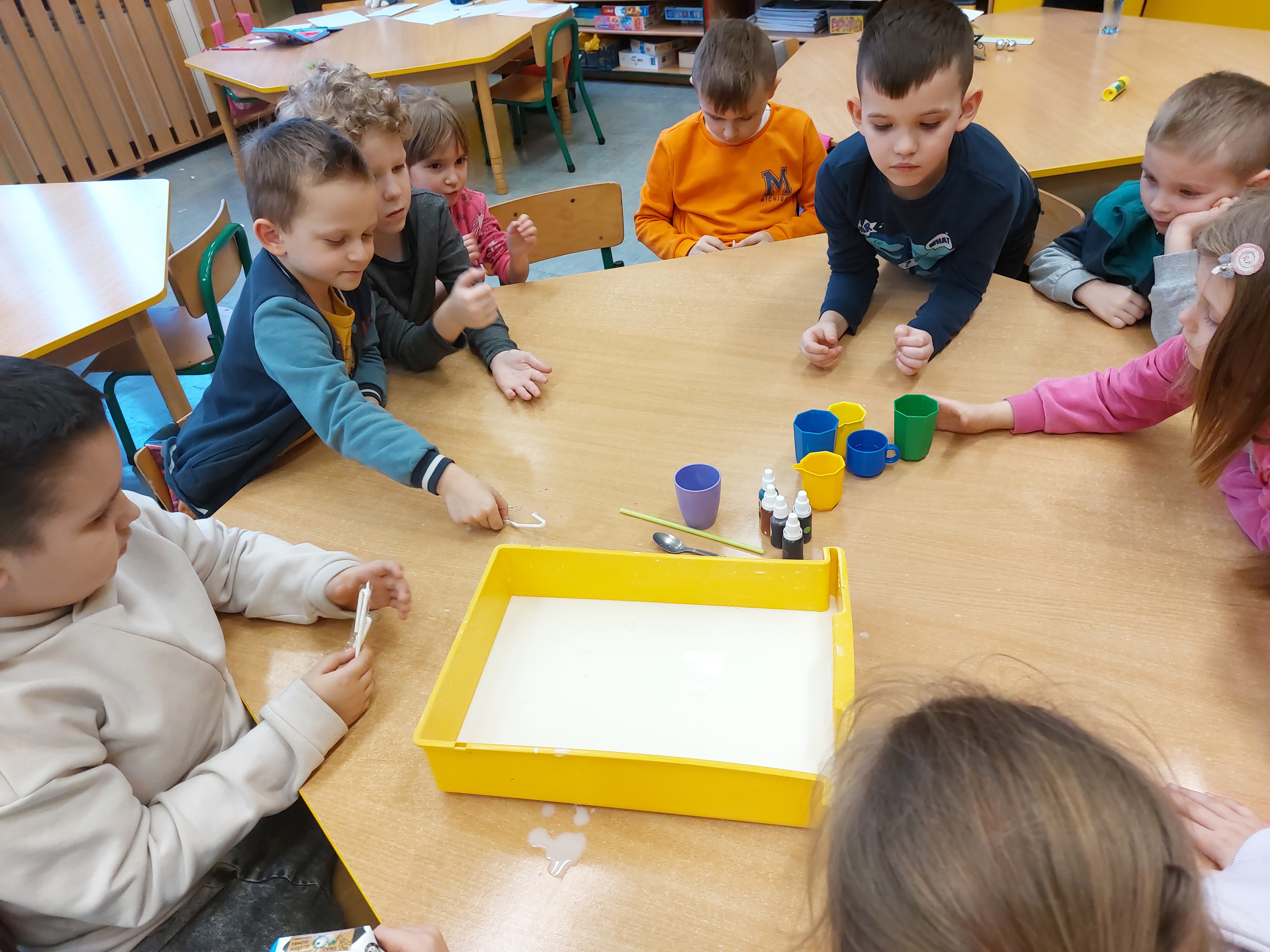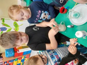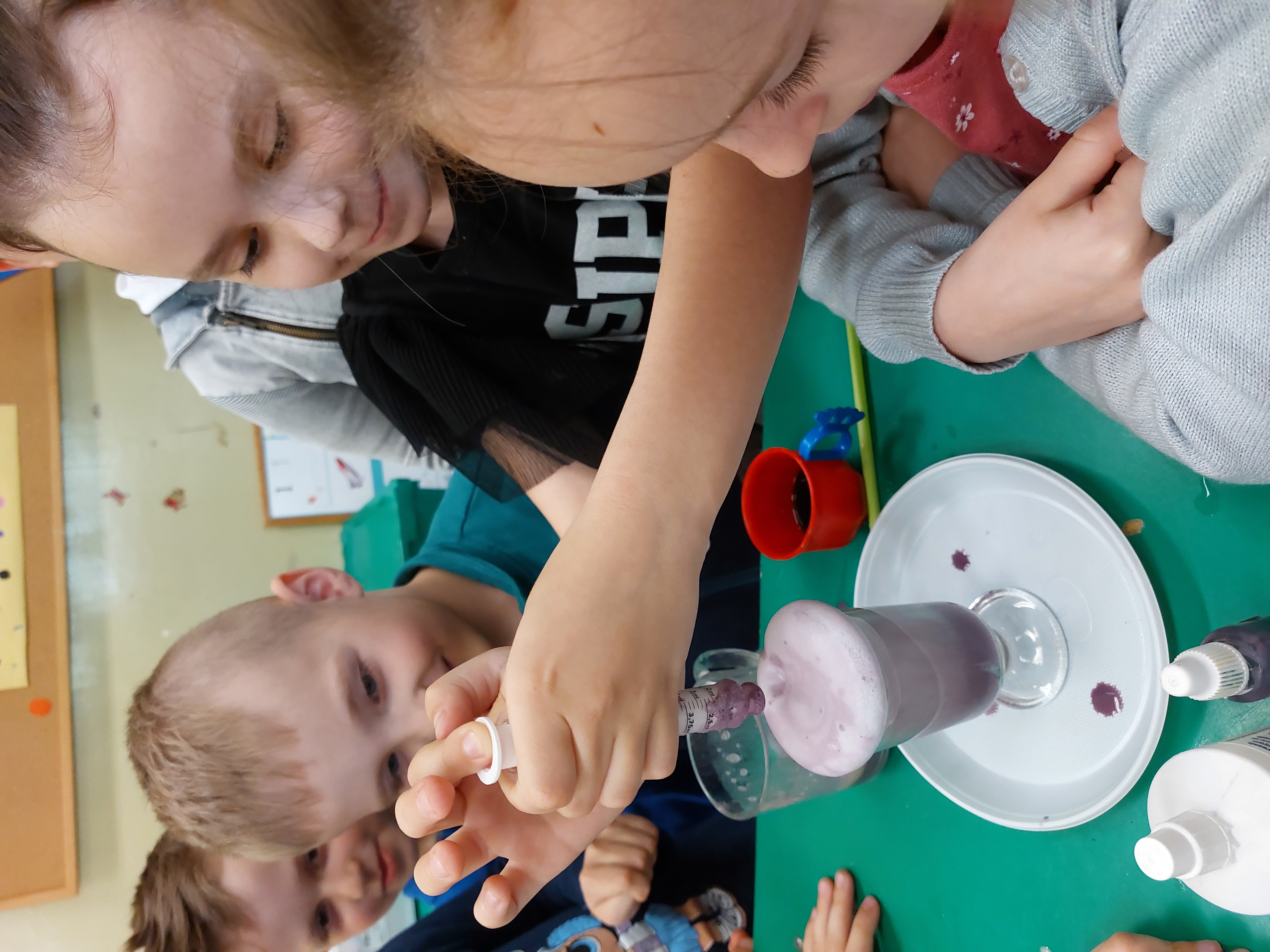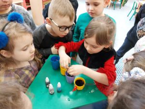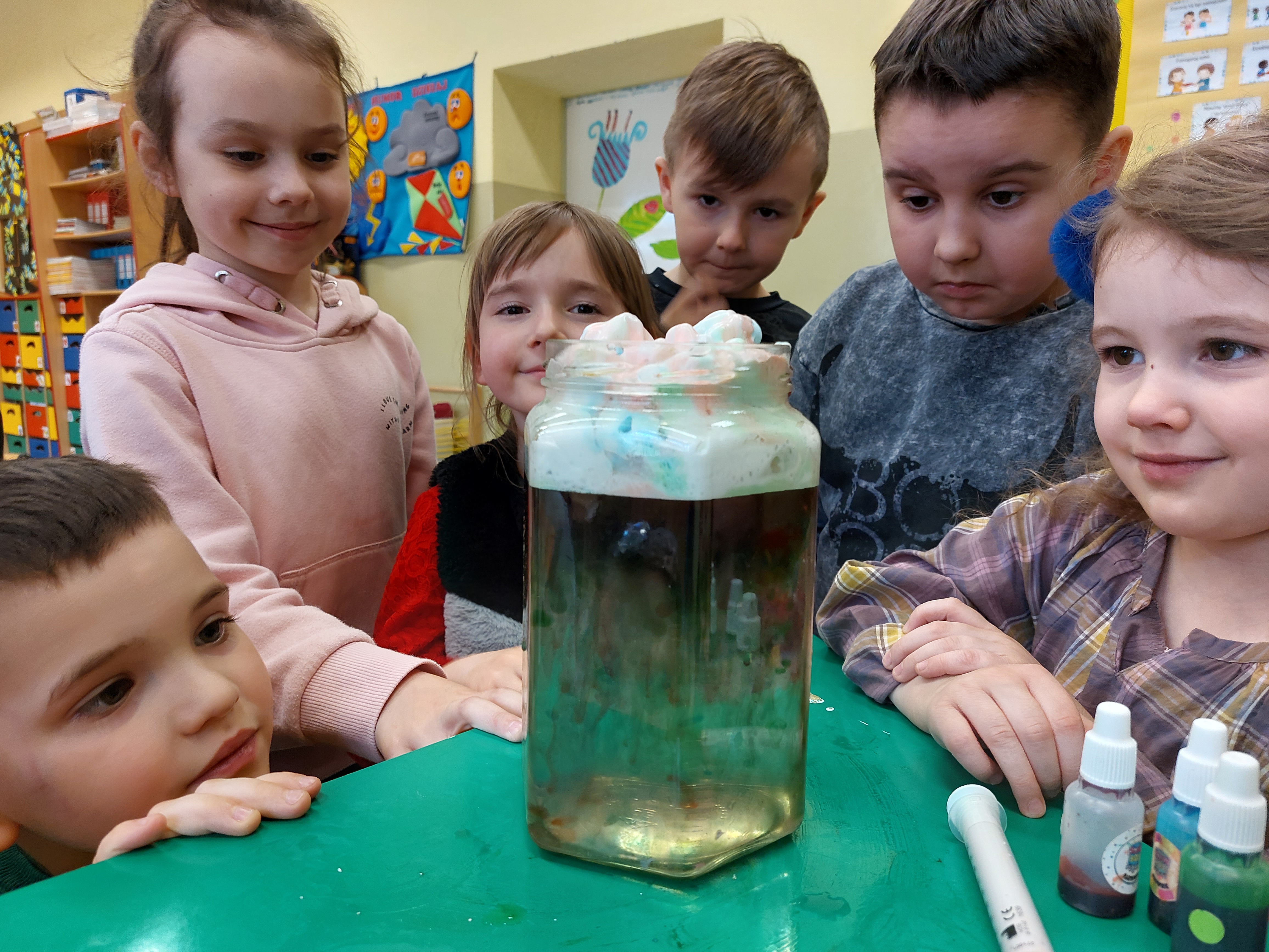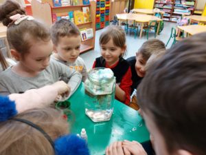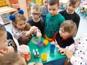 Dobiegły końca działania innowacyjne przedszkolaków z grupy 0b, które były krokiem w kierunku zaszczepienia wśród nich „mody na eksperymentowanie” i próbą rozbudzenia pasji naukowych i badawczych. Ogromny wpływ zabaw badawczych na rozwój i wychowanie dziecka związany jest z faktem, iż każda zabawa tego rodzaju niesie ze sobą ładunek pozytywnych emocji, co wspiera proces uczenia się. Najlepiej, bowiem zapamiętujemy to, co nam się miło kojarzy. Zabawy badawcze, doświadczenia, eksperymenty są też świetną okazją do kształtowania się w umyśle dziecka nowych operacji umysłowych takich jak: analiza, synteza, porównywanie i uogólnianie. Przy okazji można doskonalić wytrwałość, koncentrację uwagi i spostrzegawczość. To, co dzieci dotknęły, zobaczyły i samodzielnie wykonały, na długo zostanie w ich pamięci.