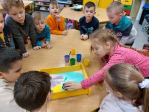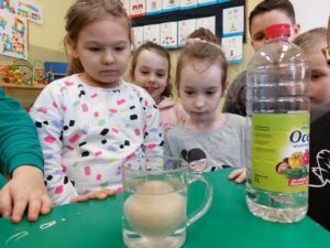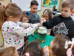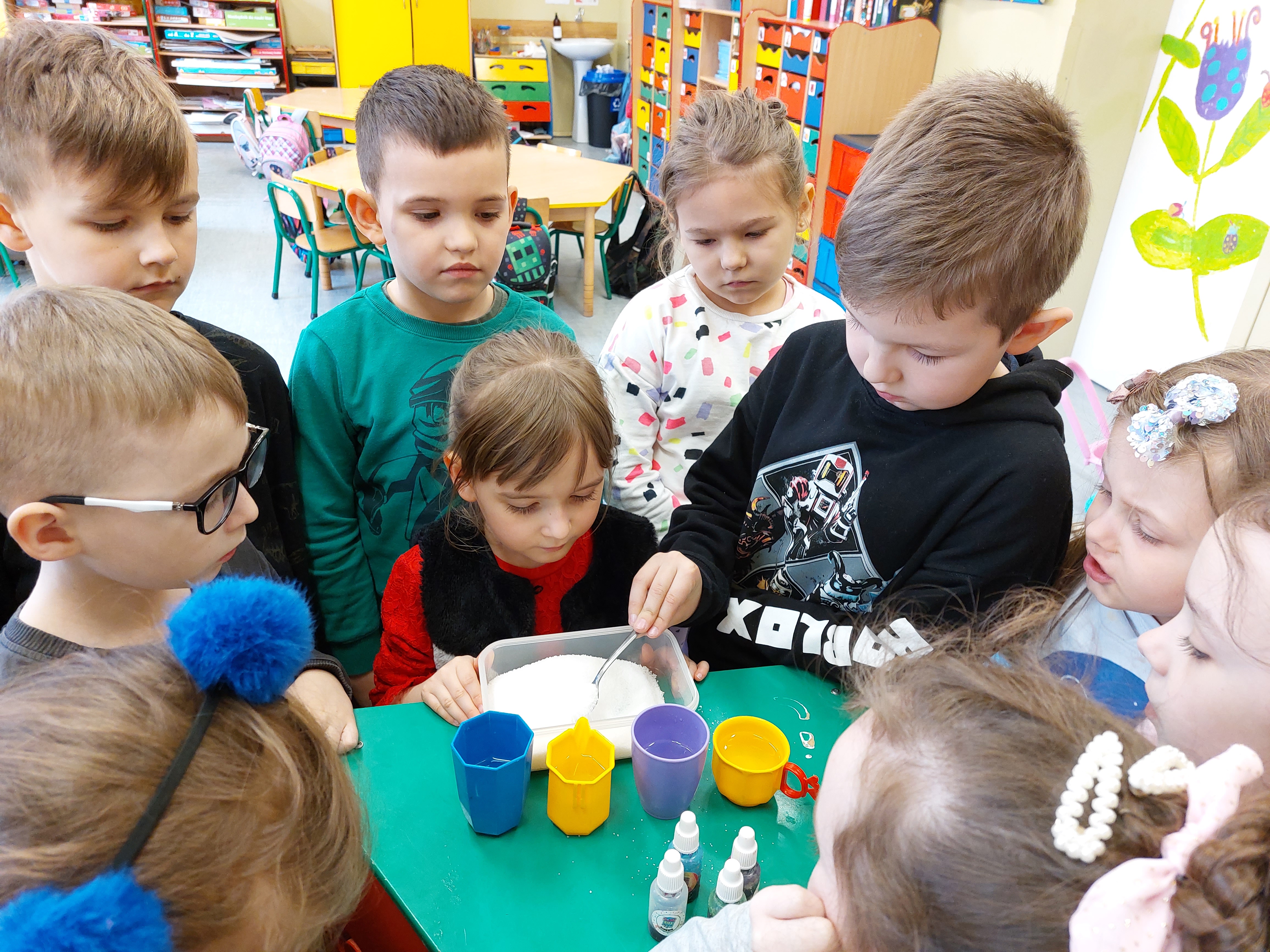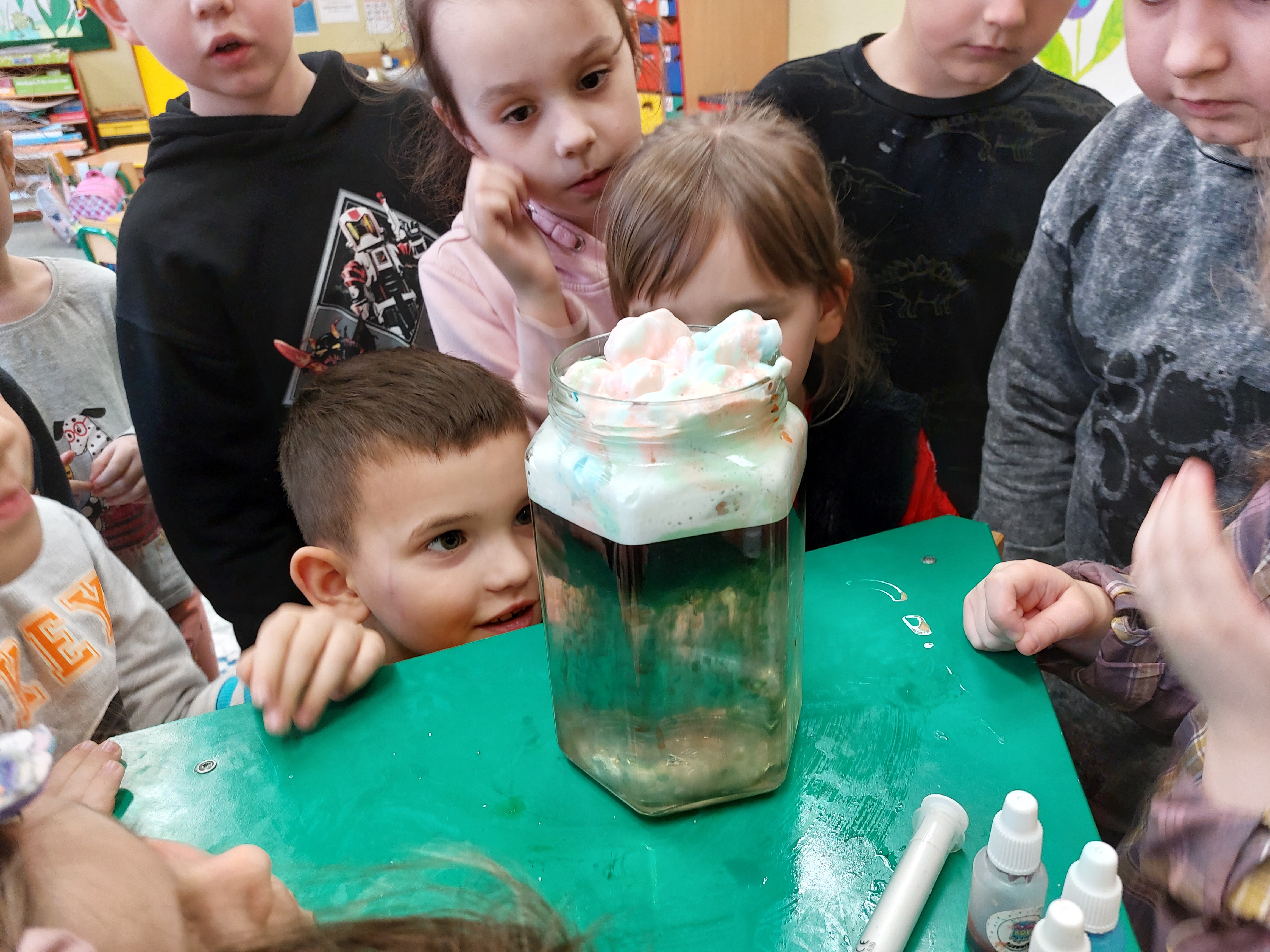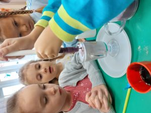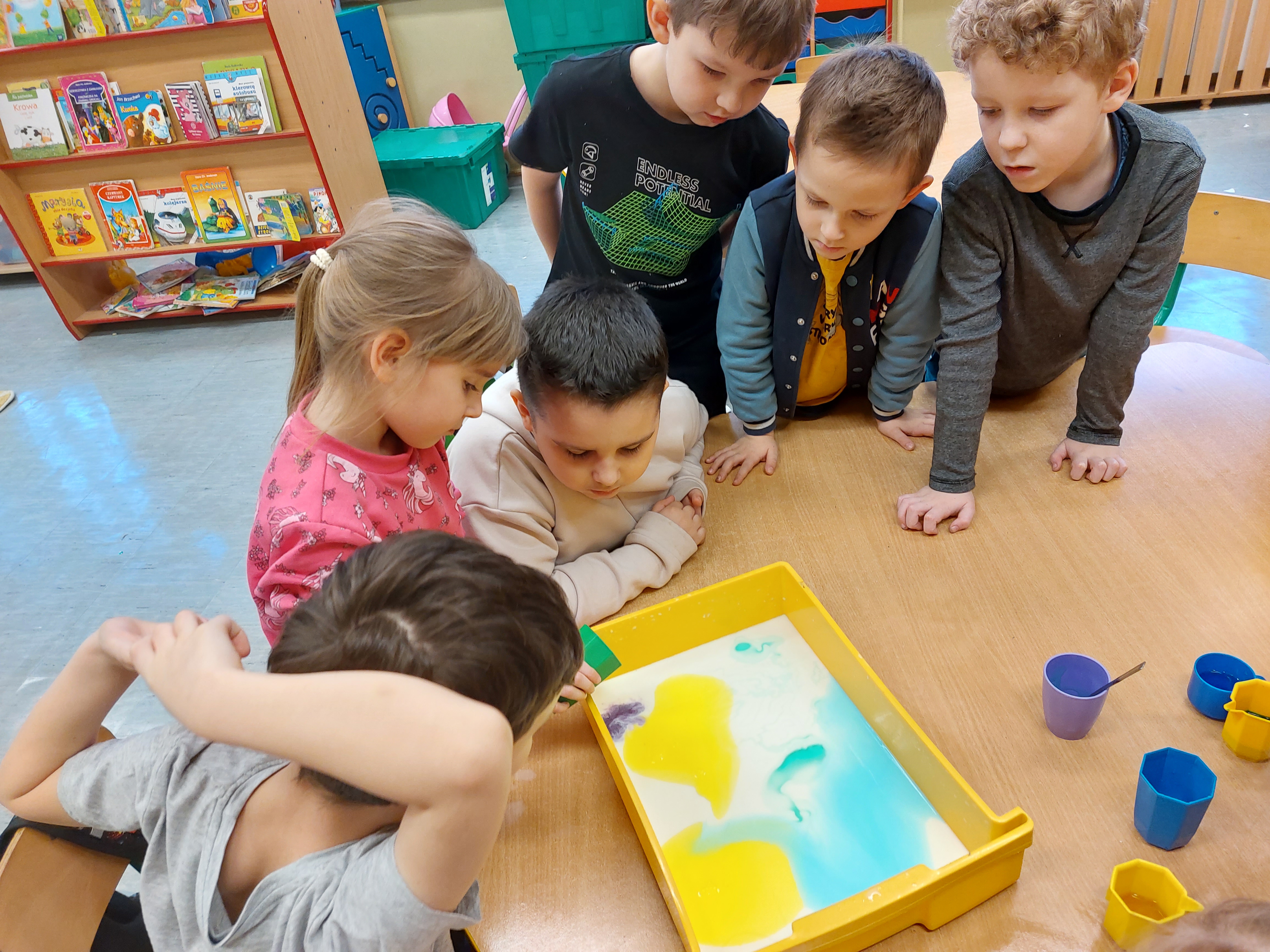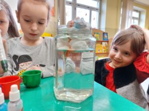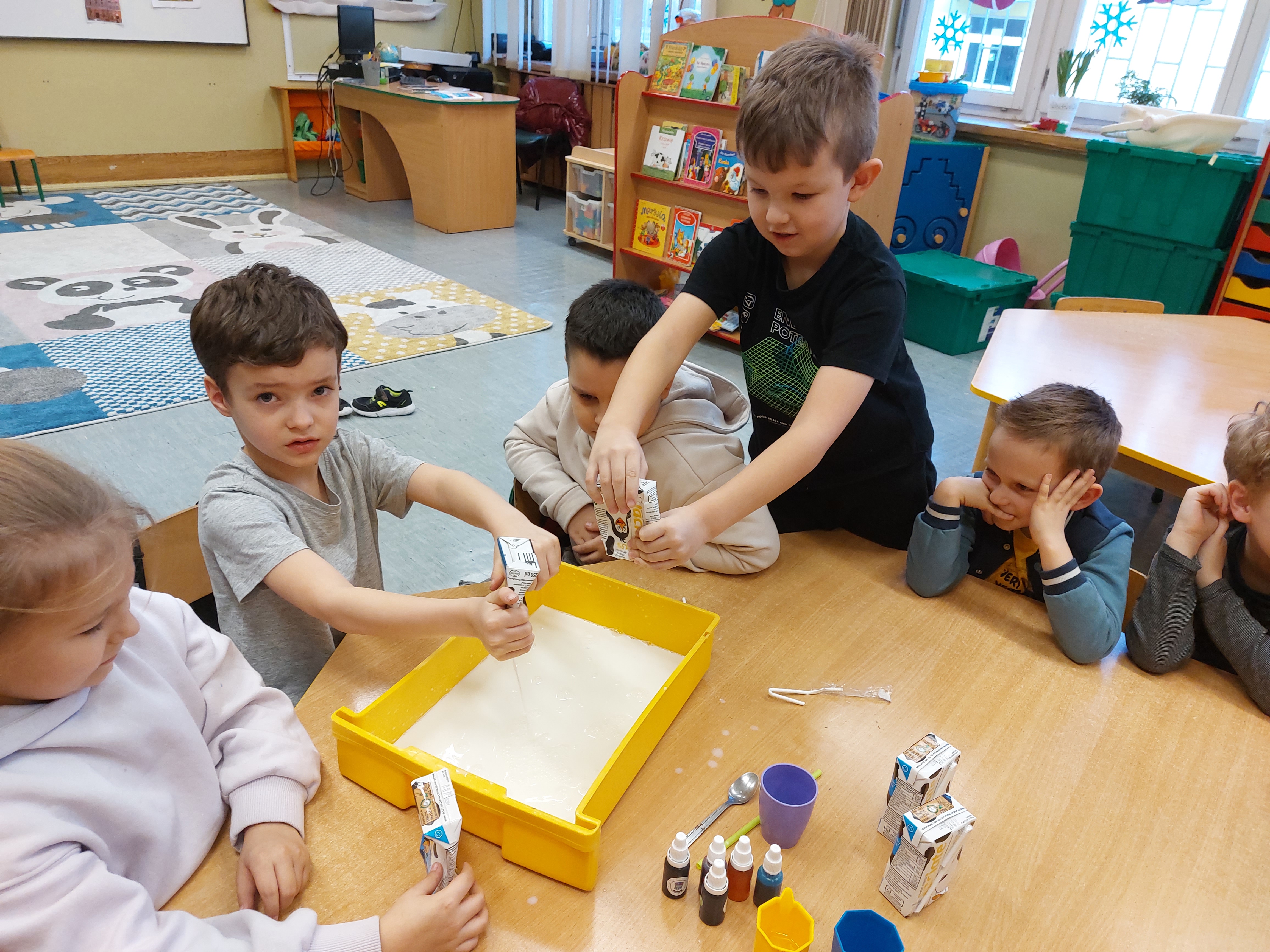 Dobiegły końca działania innowacyjne przedszkolaków z grupy 0b, które były krokiem w kierunku zaszczepienia wśród nich „mody na eksperymentowanie” i próbą rozbudzenia pasji naukowych i badawczych. Ogromny wpływ zabaw badawczych na rozwój i wychowanie dziecka związany jest z faktem, iż każda zabawa tego rodzaju niesie ze sobą ładunek pozytywnych emocji, co wspiera proces uczenia się. Najlepiej, bowiem zapamiętujemy to, co nam się miło kojarzy. Zabawy badawcze, doświadczenia, eksperymenty są też świetną okazją do kształtowania się w umyśle dziecka nowych operacji umysłowych takich jak: analiza, synteza, porównywanie i uogólnianie. Przy okazji można doskonalić wytrwałość, koncentrację uwagi i spostrzegawczość. To, co dzieci dotknęły, zobaczyły i samodzielnie wykonały, na długo zostanie w ich pamięci.