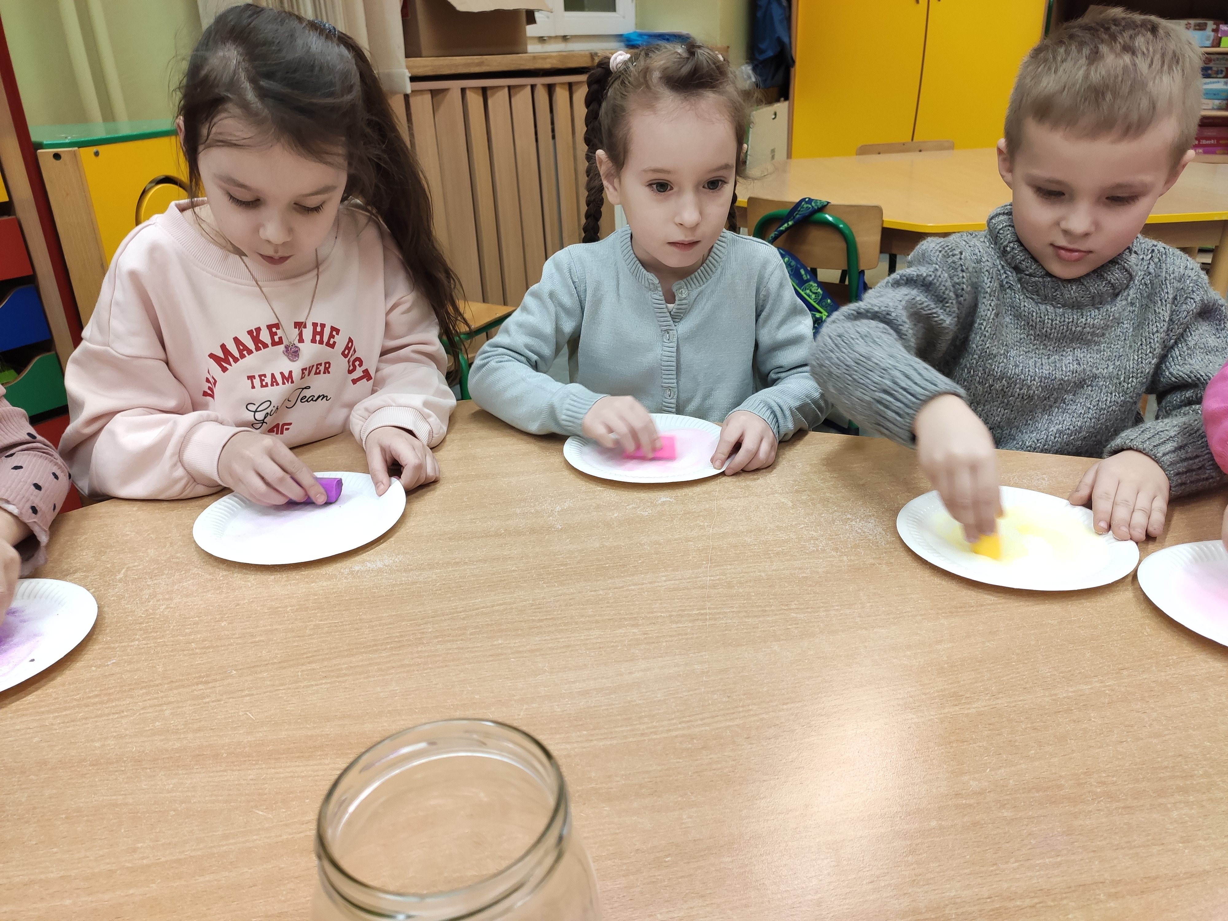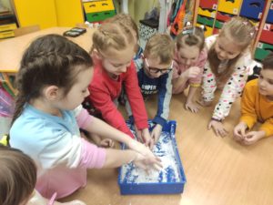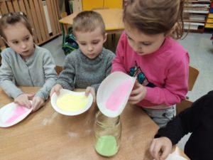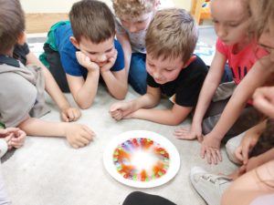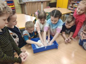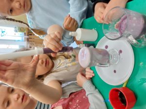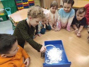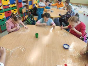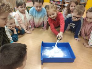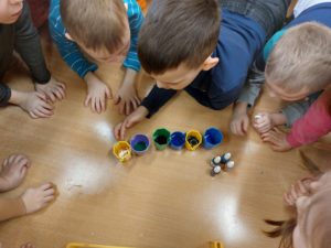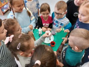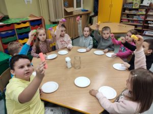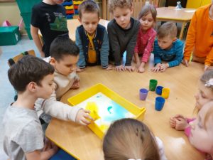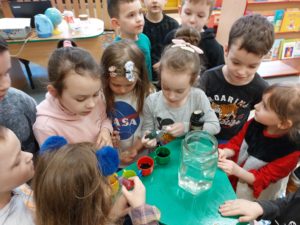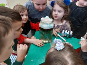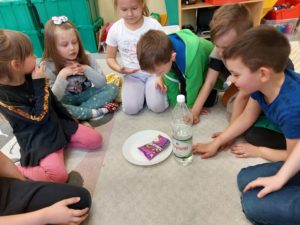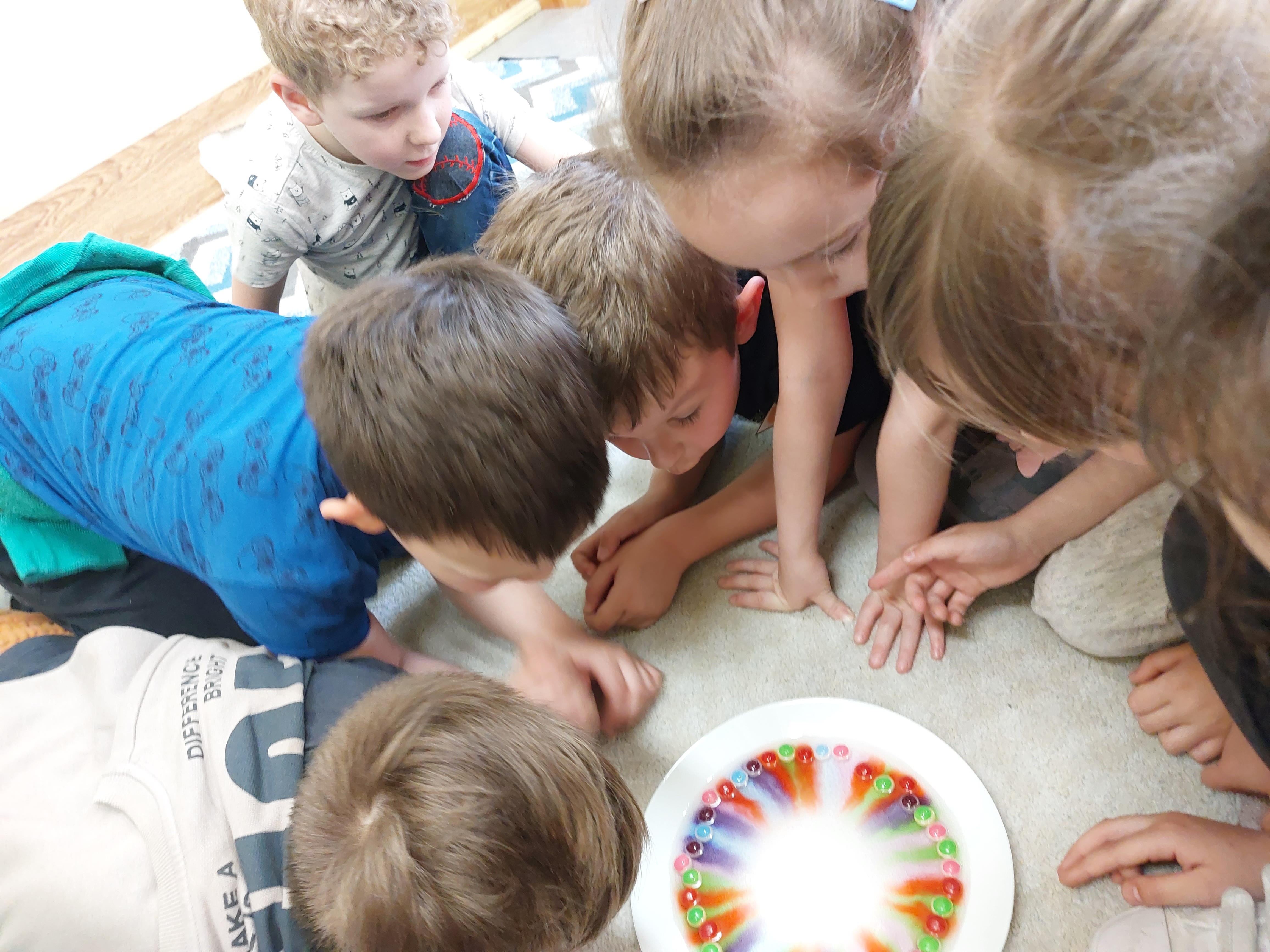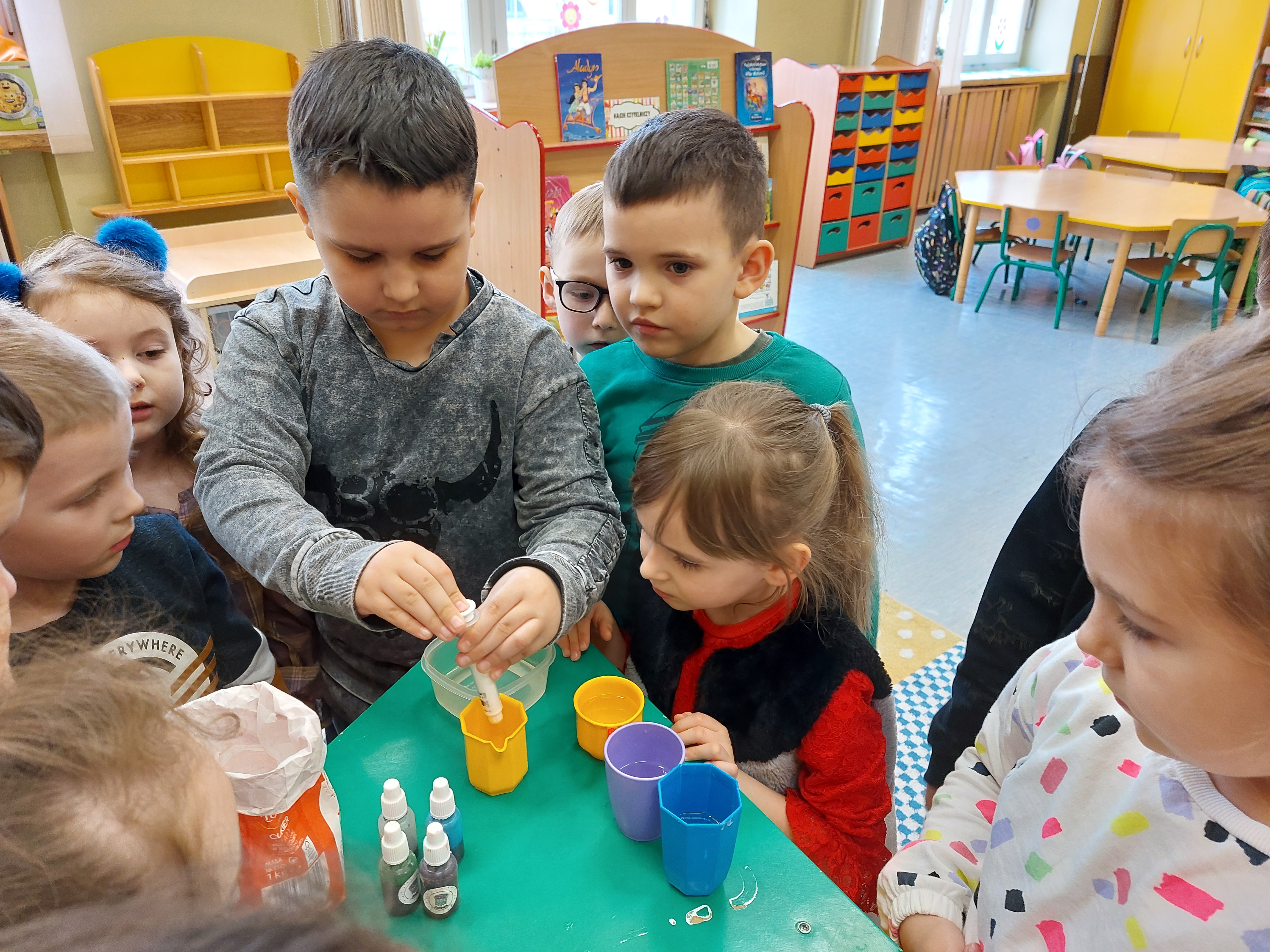 Dobiegły końca działania innowacyjne przedszkolaków z grupy 0b, które były krokiem w kierunku zaszczepienia wśród nich „mody na eksperymentowanie” i próbą rozbudzenia pasji naukowych i badawczych. Ogromny wpływ zabaw badawczych na rozwój i wychowanie dziecka związany jest z faktem, iż każda zabawa tego rodzaju niesie ze sobą ładunek pozytywnych emocji, co wspiera proces uczenia się. Najlepiej, bowiem zapamiętujemy to, co nam się miło kojarzy. Zabawy badawcze, doświadczenia, eksperymenty są też świetną okazją do kształtowania się w umyśle dziecka nowych operacji umysłowych takich jak: analiza, synteza, porównywanie i uogólnianie. Przy okazji można doskonalić wytrwałość, koncentrację uwagi i spostrzegawczość. To, co dzieci dotknęły, zobaczyły i samodzielnie wykonały, na długo zostanie w ich pamięci.