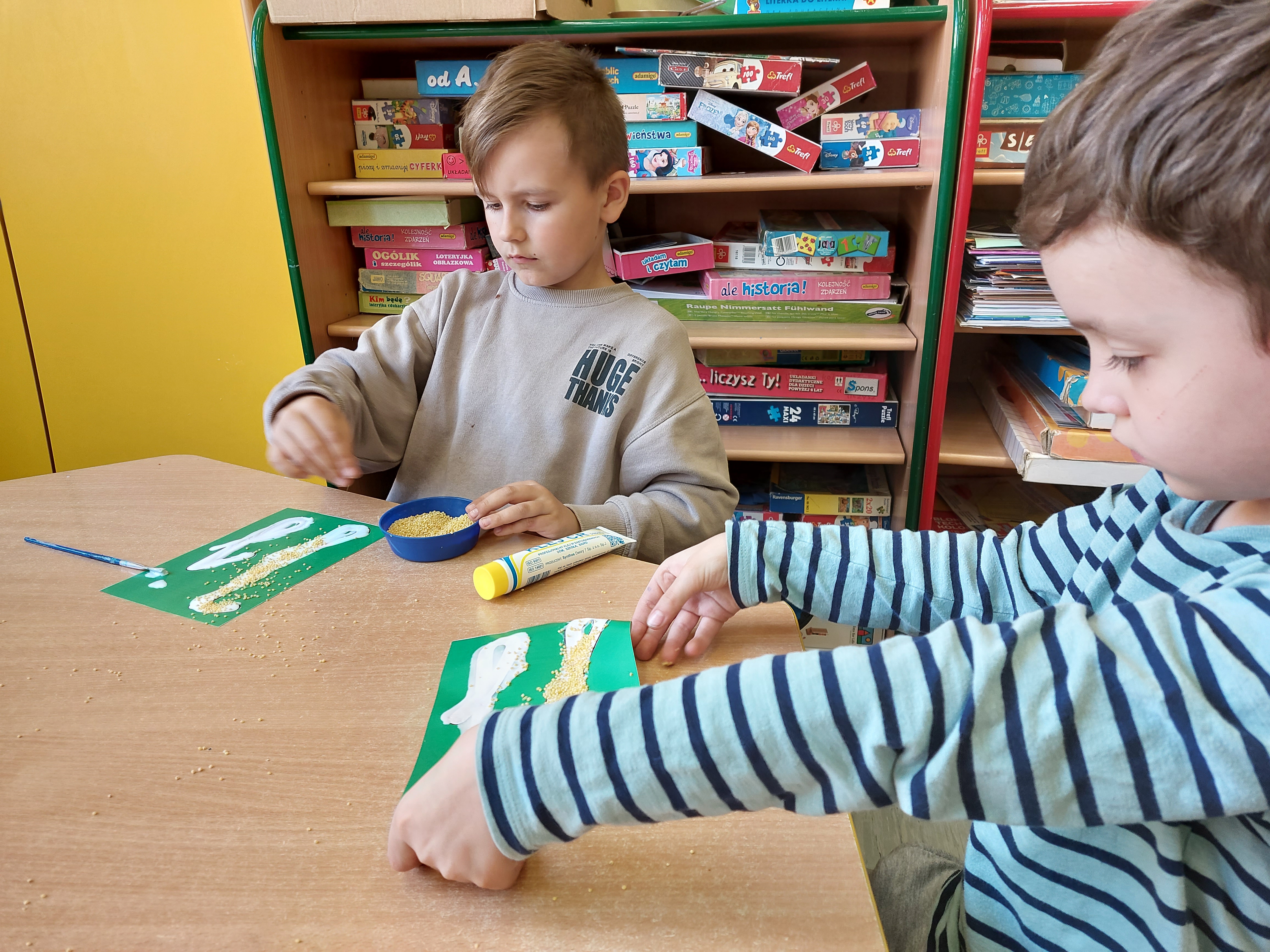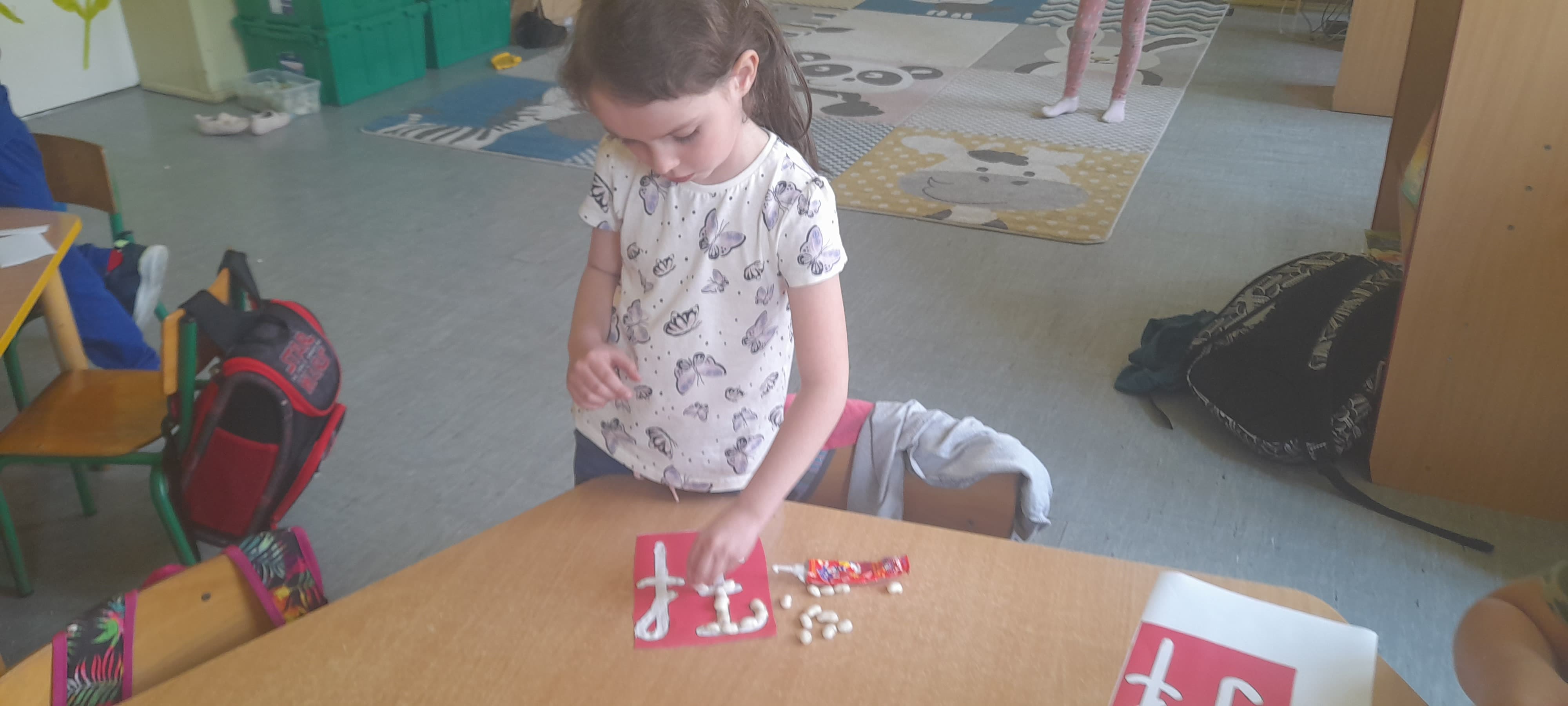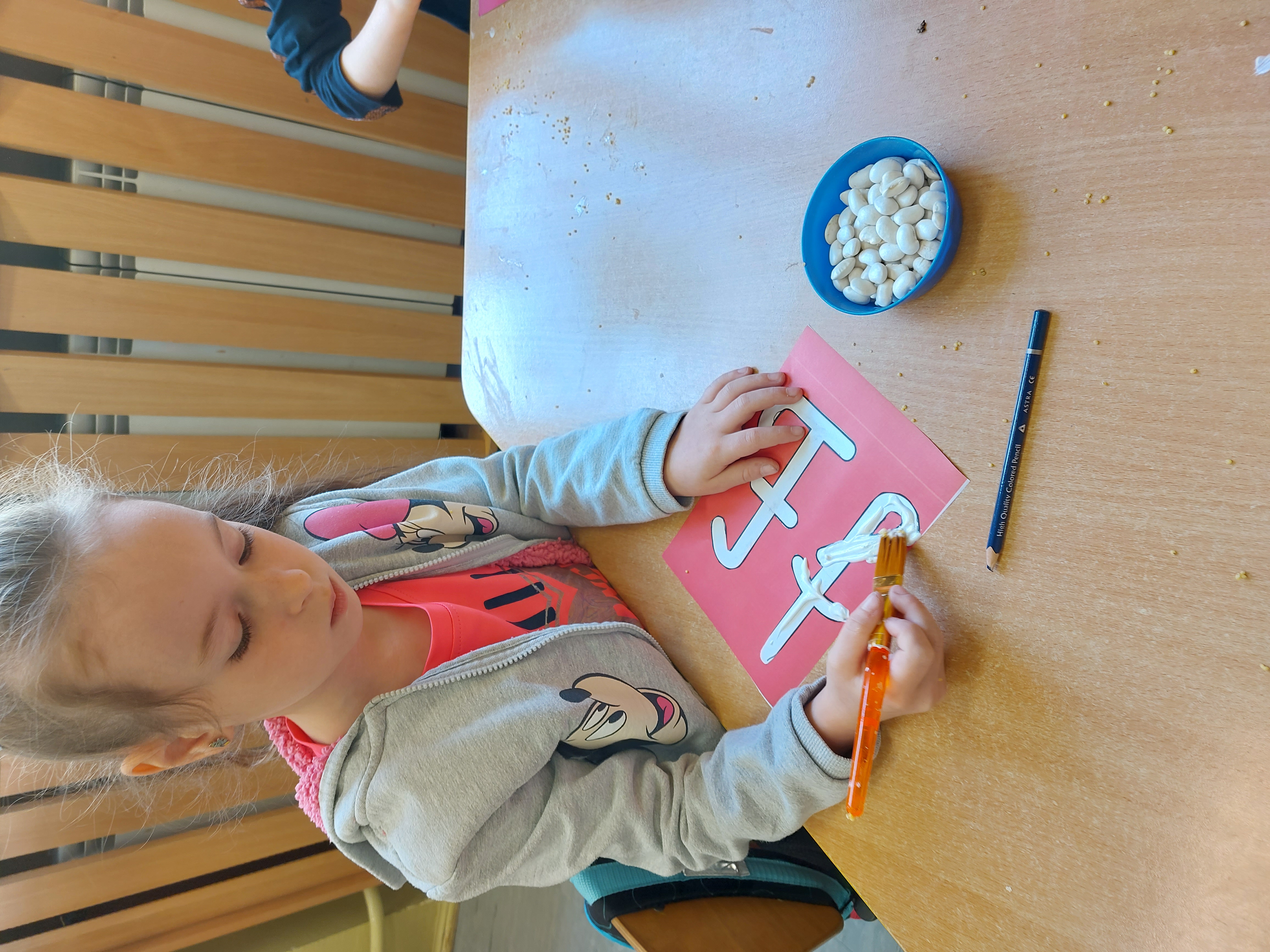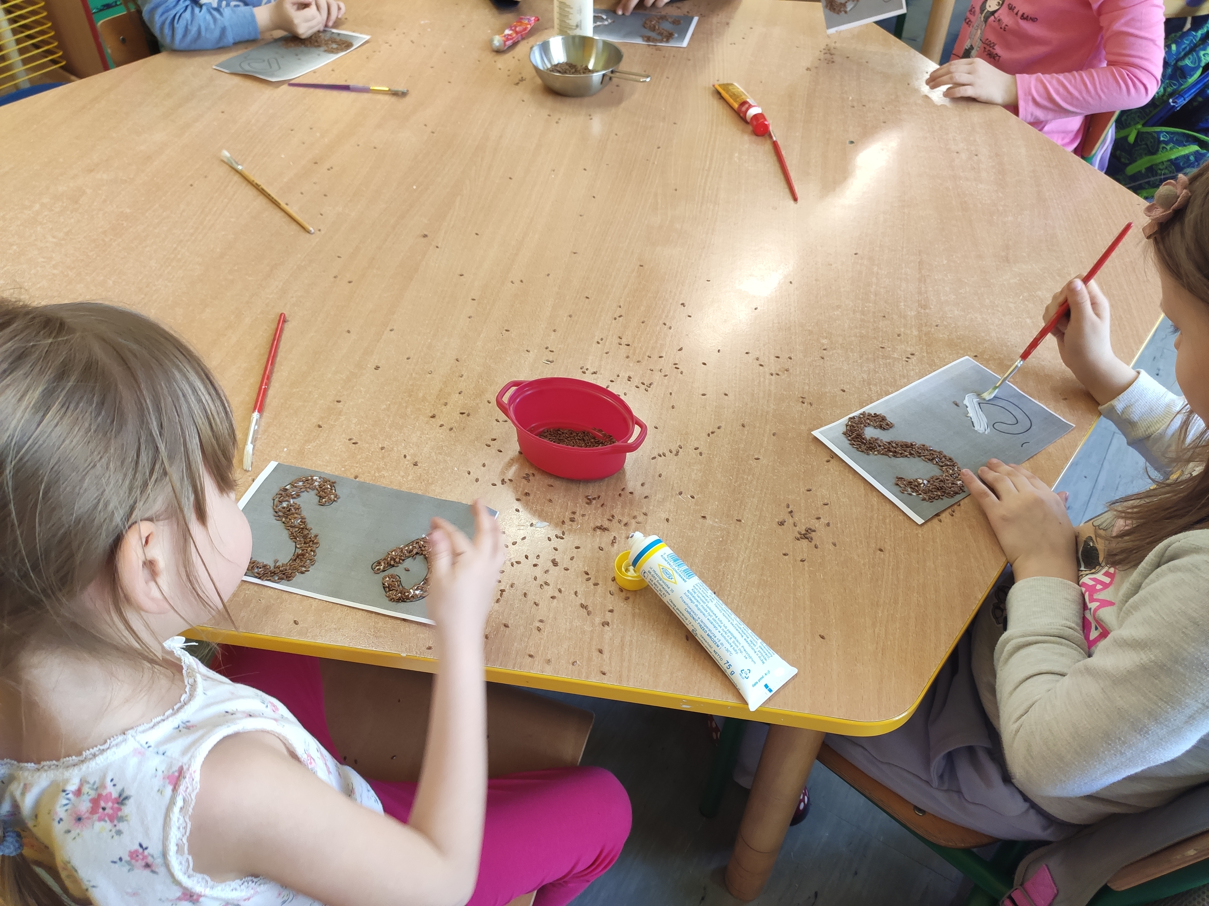W celu wzmocnienia efektu wielozmysłowego uczenia się dzieci wyklejały litery materiałami o różnej fakturze i barwie np.: koralikami, guzikami, sznurowadłem, plasteliną, kaszą. Potem odtwarzały litery, wodząc palcem po wzorze. Pracując w ten sposób z dziećmi, wykorzystywałyśmy cały ich potencjał płynący z wielu zmysłów aktywowanych jednocześnie, co wzmacniało pamięć i pozwalało w krótkim czasie dobrze zakodować obraz graficzny liter, a jest to bardzo ważny krok w nauce czytania i pisania.