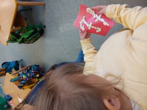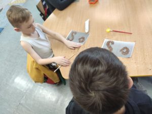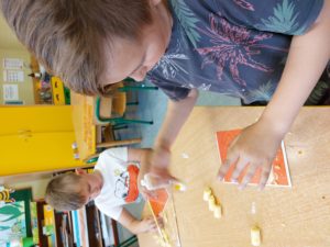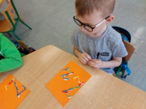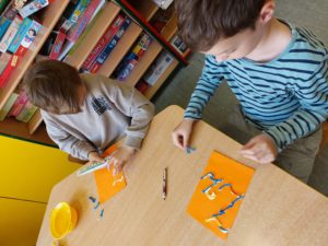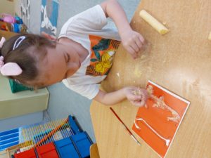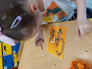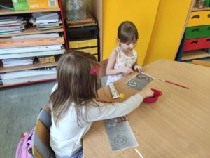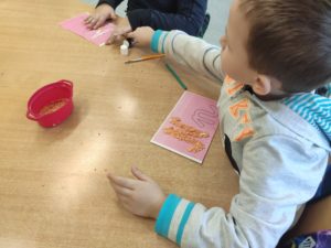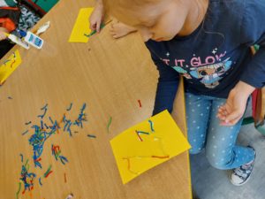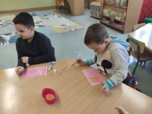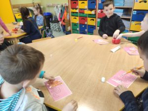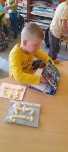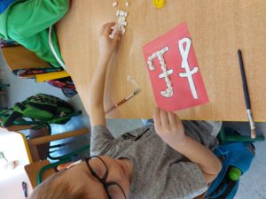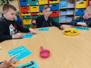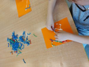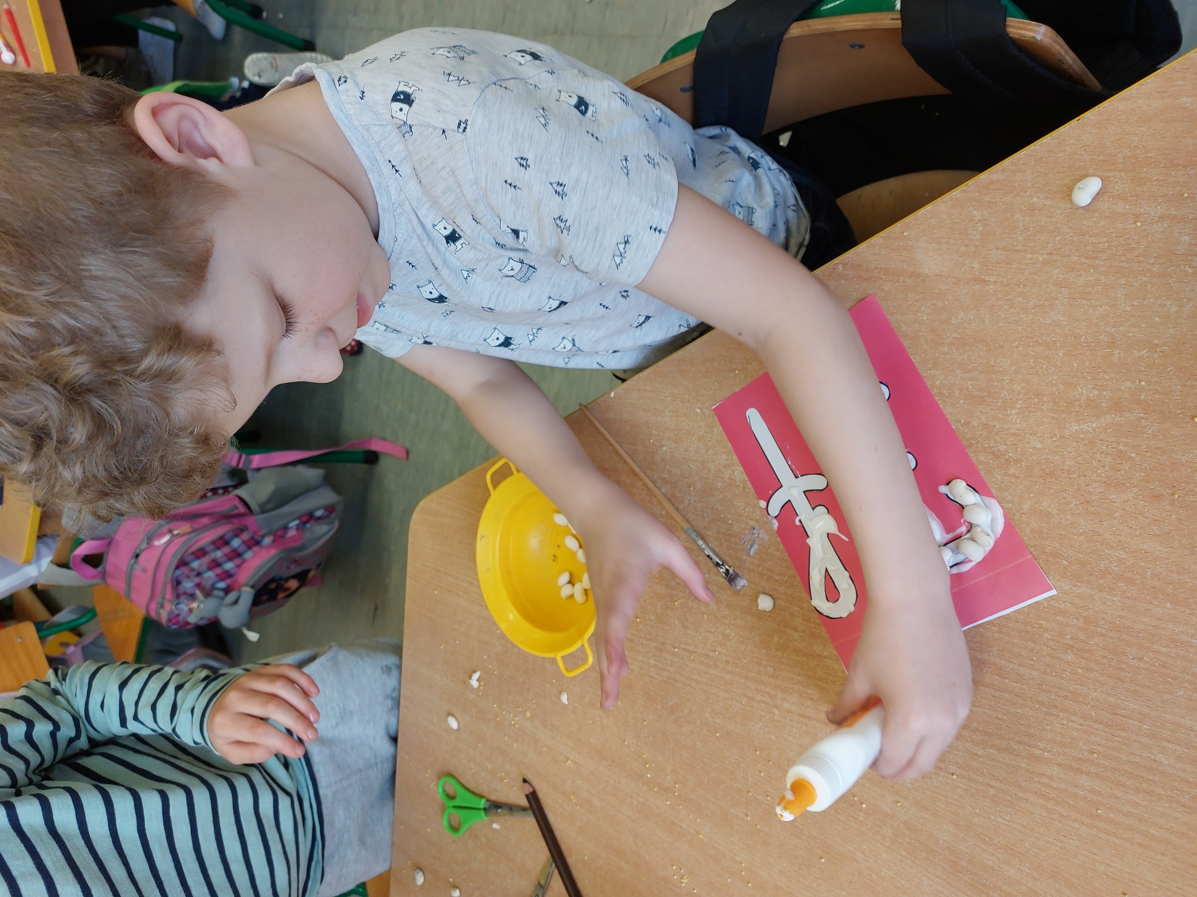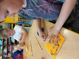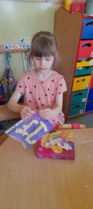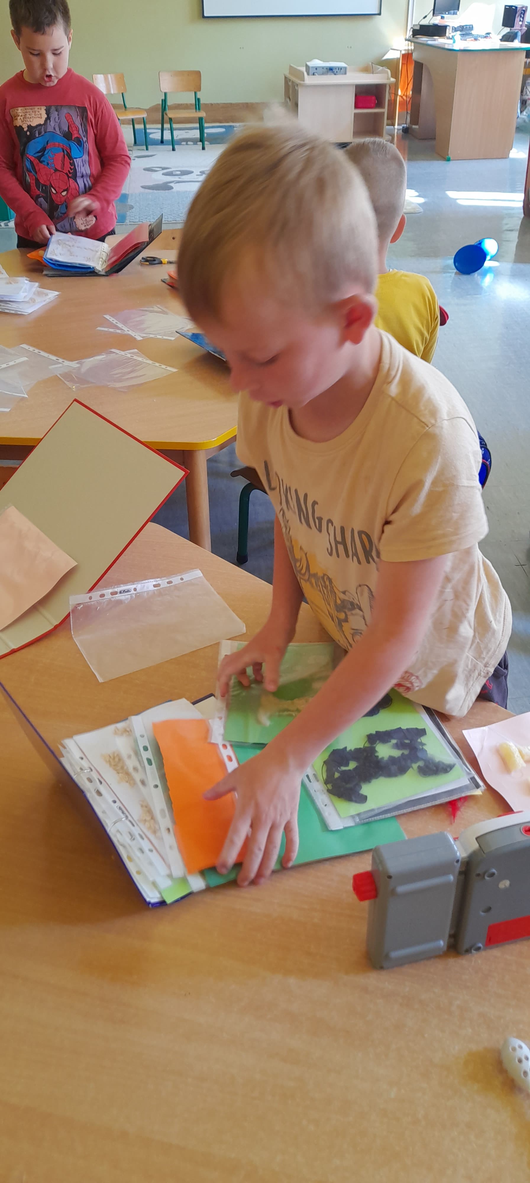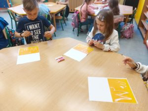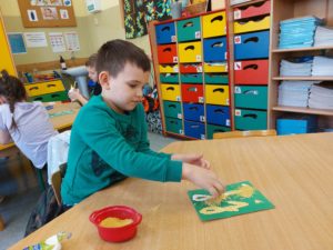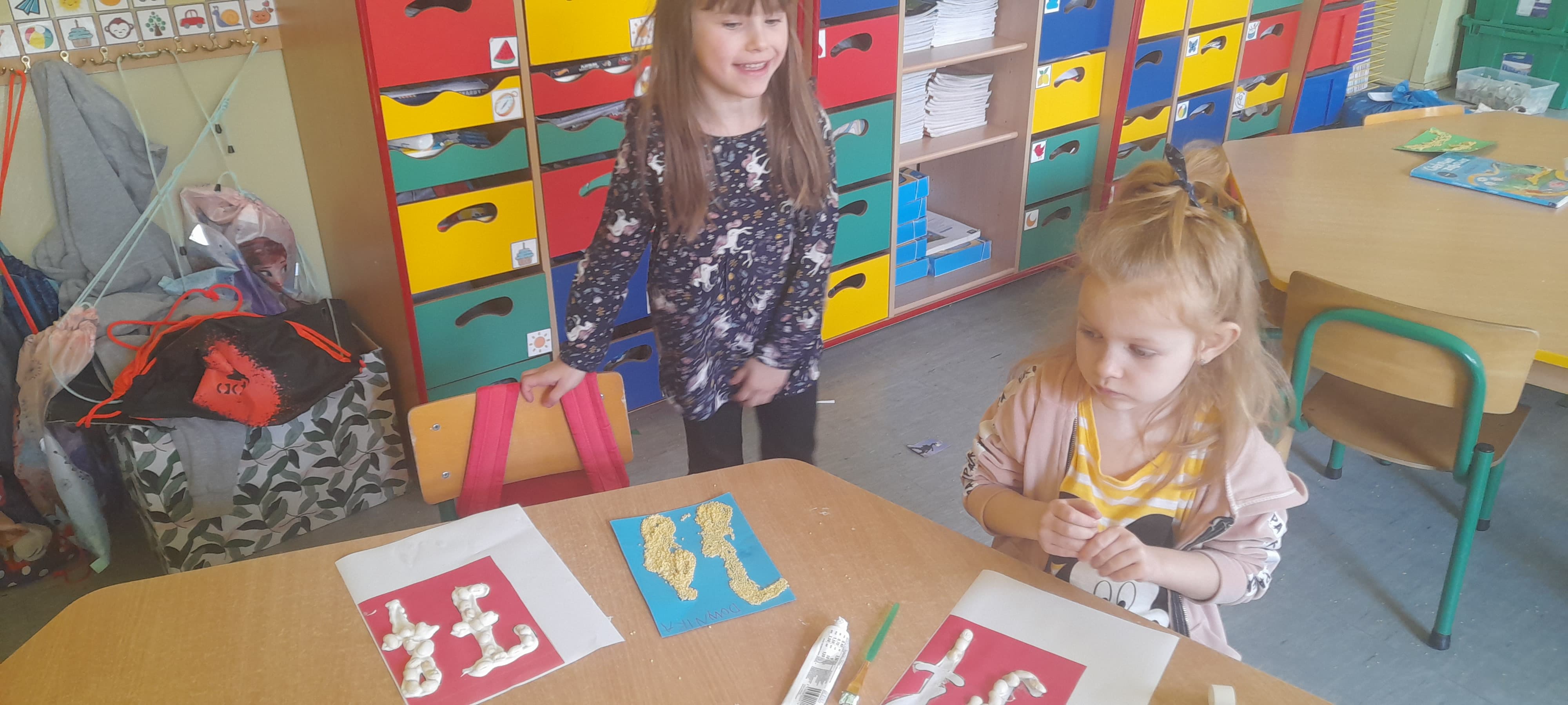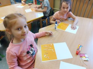 W celu wzmocnienia efektu wielozmysłowego uczenia się dzieci wyklejały litery materiałami o różnej fakturze i barwie np.: koralikami, guzikami, sznurowadłem, plasteliną, kaszą. Potem odtwarzały litery, wodząc palcem po wzorze. Pracując w ten sposób z dziećmi, wykorzystywałyśmy cały ich potencjał płynący z wielu zmysłów aktywowanych jednocześnie, co wzmacniało pamięć i pozwalało w krótkim czasie dobrze zakodować obraz graficzny liter, a jest to bardzo ważny krok w nauce czytania i pisania.