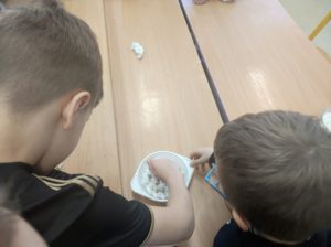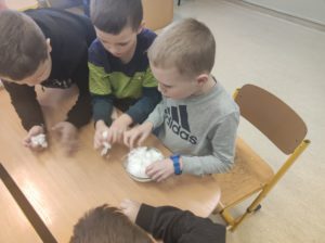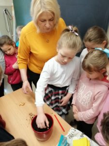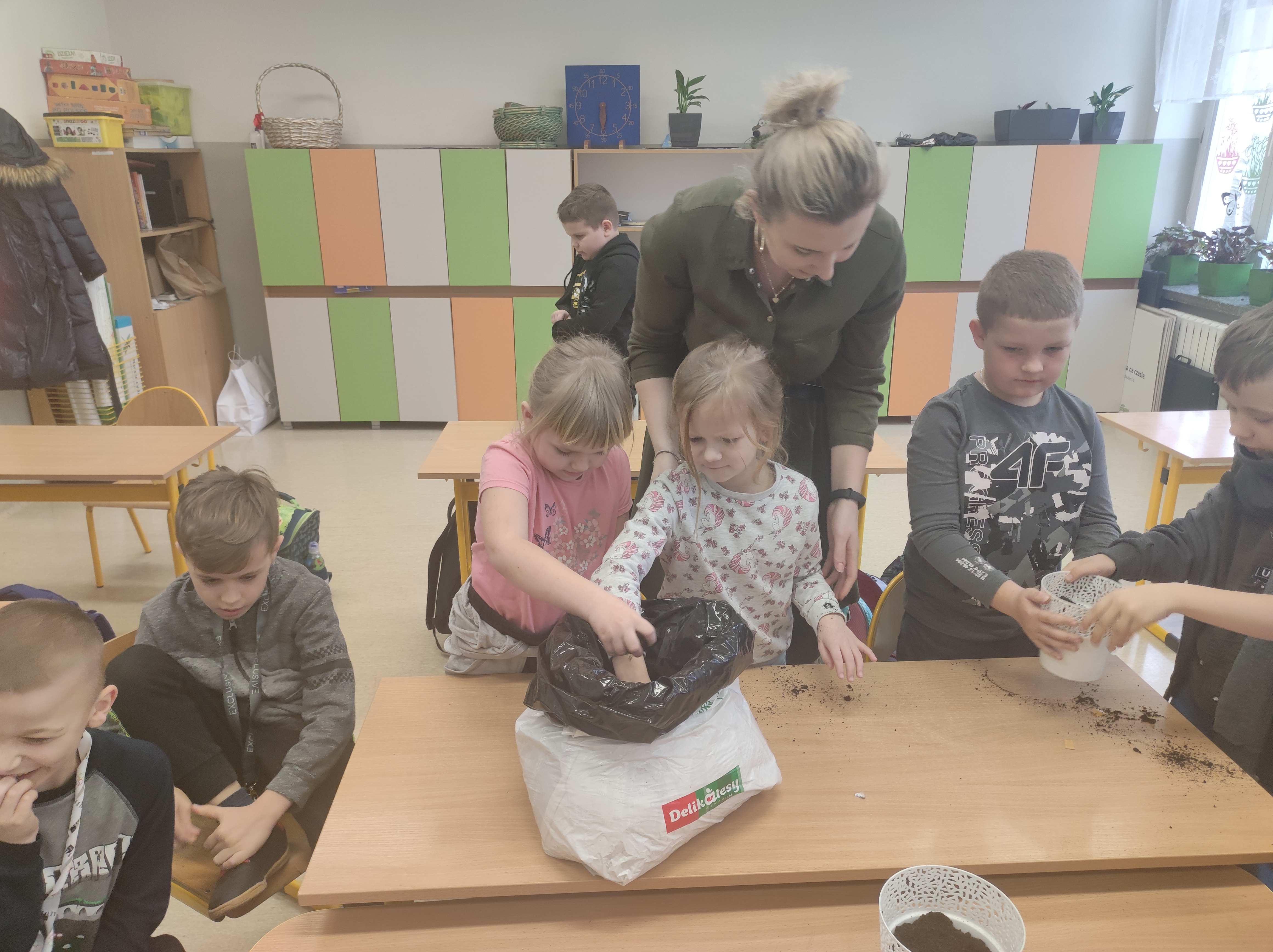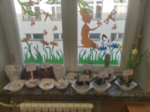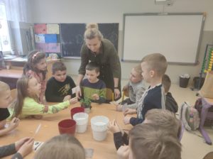 W ramach innowacji uczniowie podejmowali różne działania, w zależności od pory roku. Jesienią wykonywaliśmy lampiony z liści oraz wykorzystując „dary jesieni” tworzyliśmy kompozycje, mozaiki z liści, a nawet próbowaliśmy stworzyć „liściowe zwierzątka”. Zimą przeprowadzaliśmy różnorodne eksperymenty, podczas których dzieci poznawały zmienne właściwości śniegu oraz lodu. Nie zapominaliśmy również o „skrzydlatych przyjaciołach”, którzy podczas tej pory roku potrzebują naszego wsparcia, aby przetrwać zimę. Wiosną zakładaliśmy klasowe ogródki oraz hodowlę roślin, które oznaczyliśmy tabliczkami. Częściowe efekty pracy można było zobaczyć po trzech dniach, gdy wyrosła czupryna rzeżuchy. W naszym klasowym ogródku zrobiło się bardzo zielono. Oprócz zajęć klasowych realizowaliśmy zajęcia terenowe w najbliższym otoczeniu naszej szkoły, które dały możliwość skonfrontowania wiedzy w praktyce i obserwacji procesów ekologicznych.
