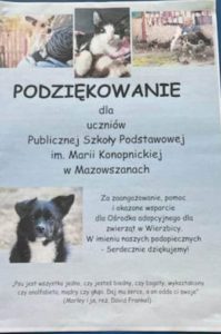 Składamy serdeczne podziękowania wszystkim, którzy włączyli się do zbiórki na rzecz Ośrodka Adopcyjnego dla zwierząt w Wierzbicy.