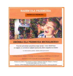 Przemek od urodzenia cierpi na czterokończynowe porażenie mózgowe. Chłopiec, pomimo choroby, jest pogodnym, radosnym dzieckiem, pragnącym biegać i cieszyć się życiem.