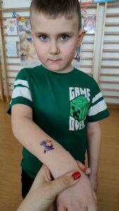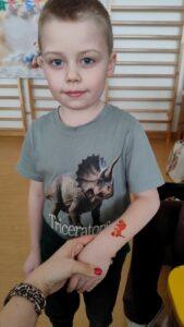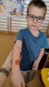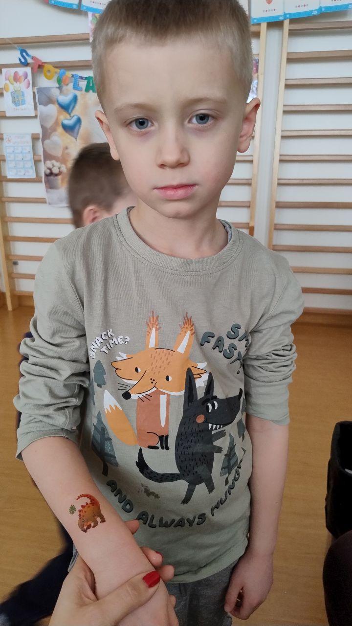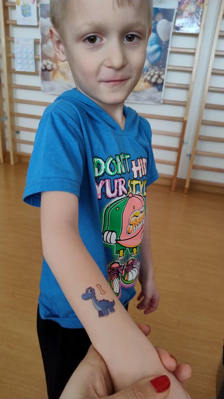 Na zakończenie każde dziecko wybrało sobie tatuaż z motywem dinozaura, który został wykonany przez nauczycielki. Cały dzień pełen wrażeń został uwieczniony na zdjęciach, które oddają radość i zaangażowanie naszych małych odkrywców.