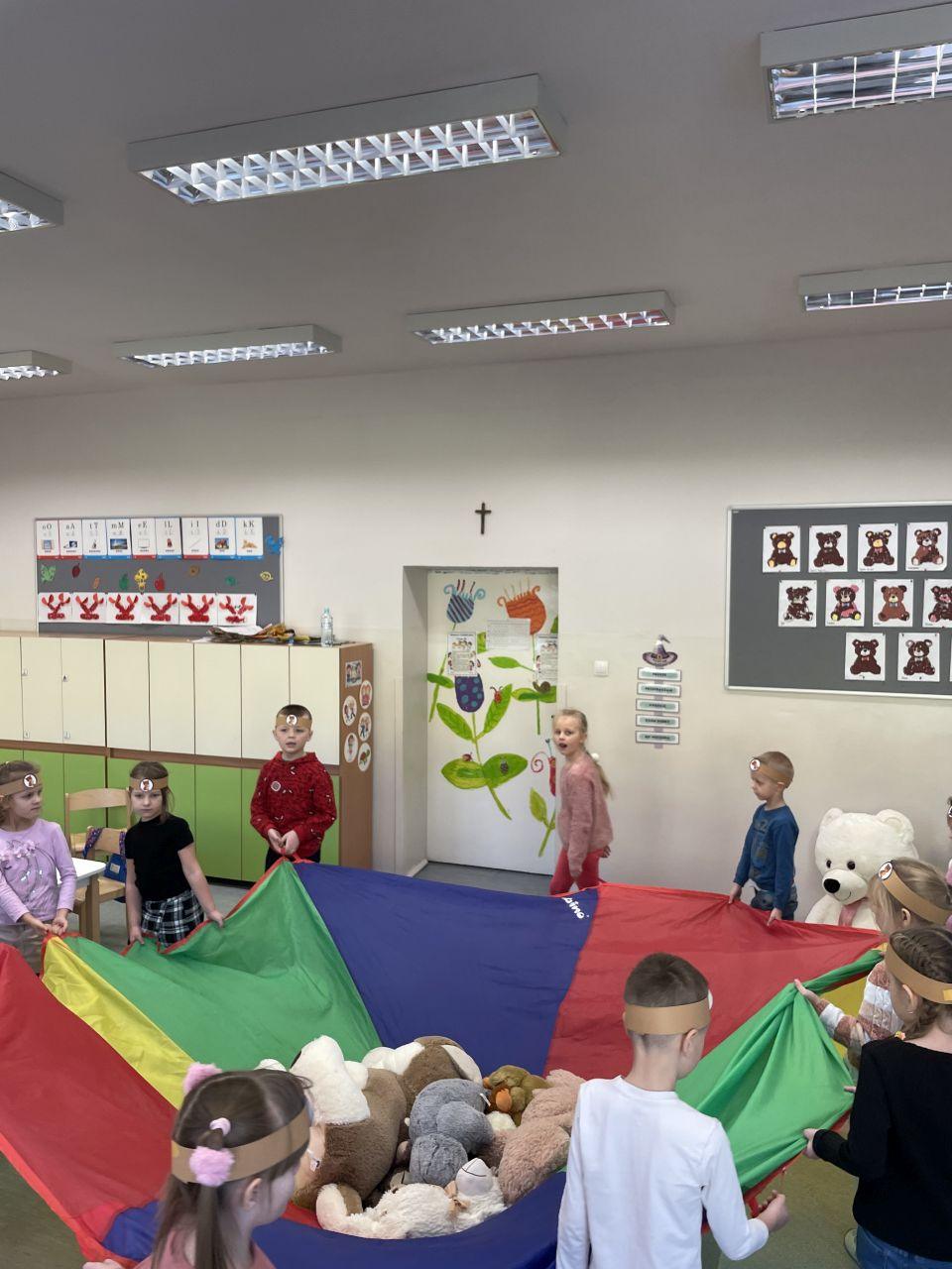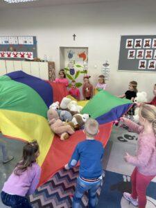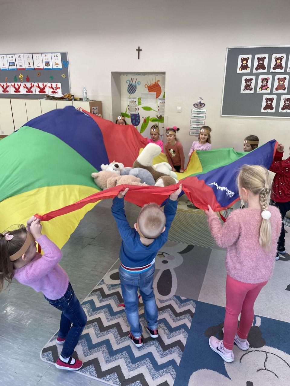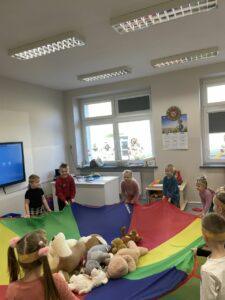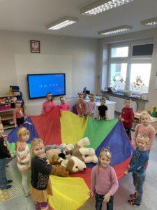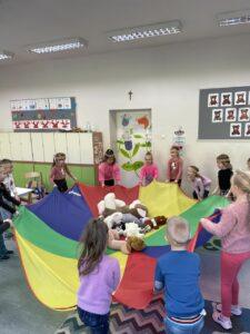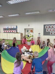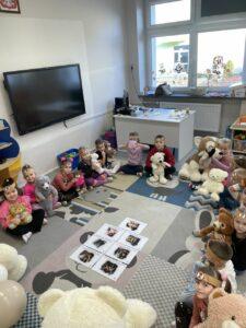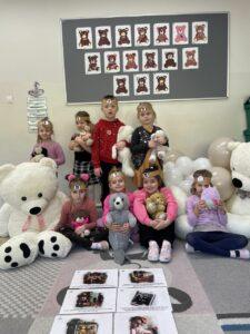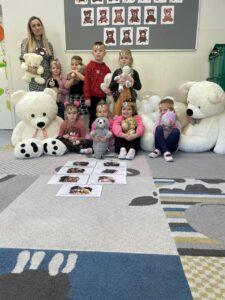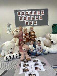 25 listopada świętowaliśmy Dzień Pluszowego Misia. Tego dnia wszystkie dzieci przyniosły do przedszkola swojego ulubionego przyjaciela – Misia, który towarzyszył im przez cały dzień. Dzieci zostały zaproszone do wspólnej zabawy w Misiowej Krainie. Przedszkolaki na początku wysłuchały historię Misia, rozwiązywały zagadki i bawiły się przy muzyce. Najwięcej radości jednak sprawiły dzieciom odwiedziny prawdziwego Pluszowego Misia, który opowiedział o sobie i swoich przysmakach. Przedszkolaki zaprosiły Misia do tańca i wspólnej zabawy. Tego dnia dzieci wykonały misiowe ciasteczka.