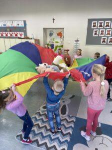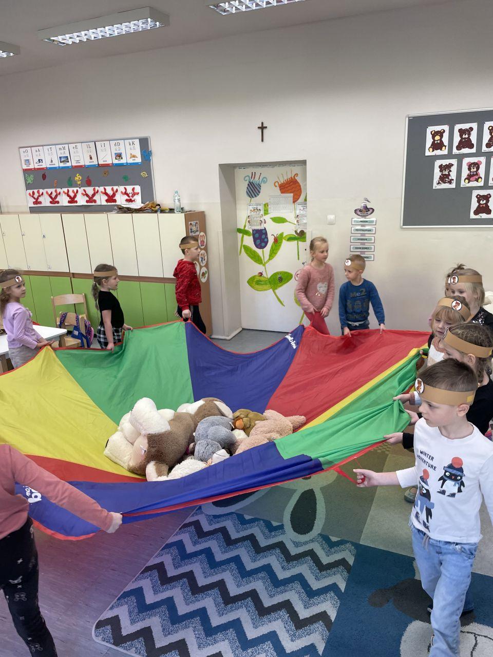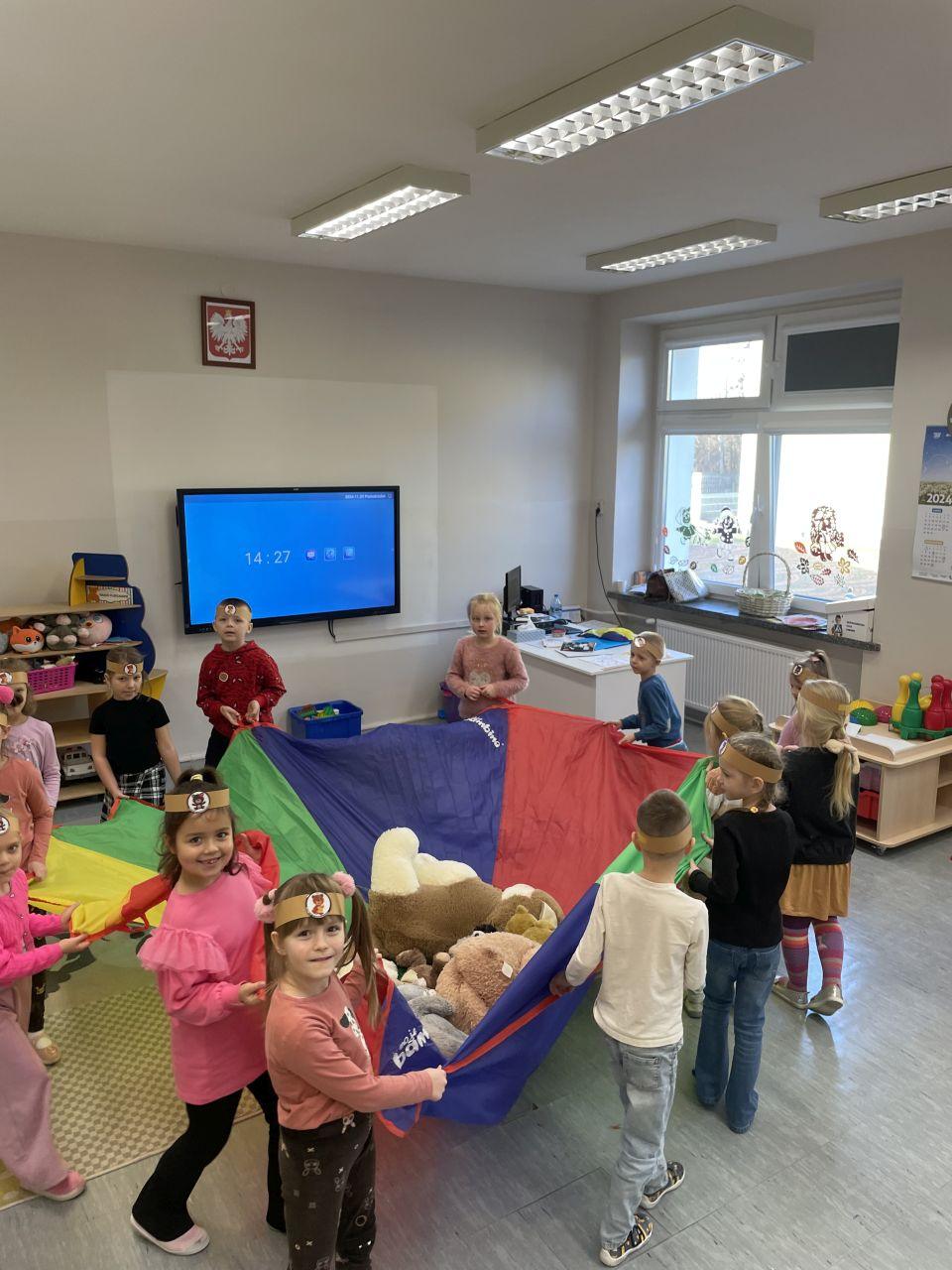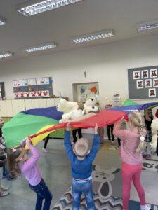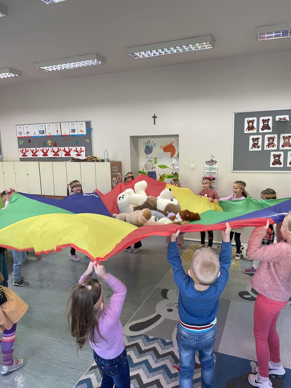 25 listopada świętowaliśmy Dzień Pluszowego Misia. Tego dnia wszystkie dzieci przyniosły do przedszkola swojego ulubionego przyjaciela – Misia, który towarzyszył im przez cały dzień. Dzieci zostały zaproszone do wspólnej zabawy w Misiowej Krainie. Przedszkolaki na początku wysłuchały historię Misia, rozwiązywały zagadki i bawiły się przy muzyce. Najwięcej radości jednak sprawiły dzieciom odwiedziny prawdziwego Pluszowego Misia, który opowiedział o sobie i swoich przysmakach. Przedszkolaki zaprosiły Misia do tańca i wspólnej zabawy. Tego dnia dzieci wykonały misiowe ciasteczka.