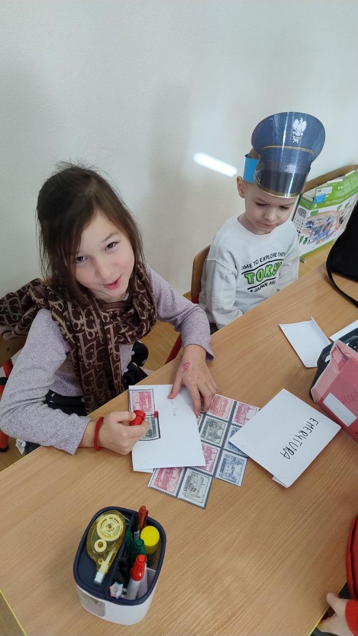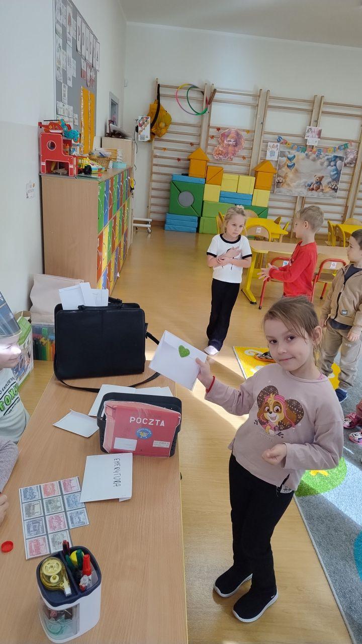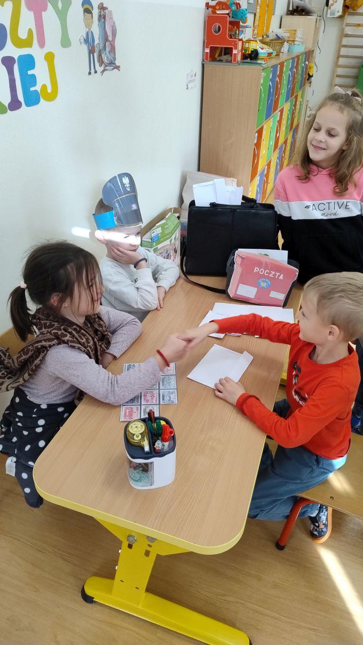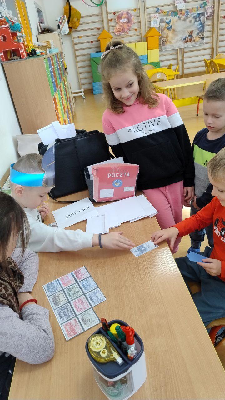 Dzieci poznały tajniki pracy pracowników poczty- dowiedziały się, jak wygląda codzienność listonosza, co dzieje się z listem od momentu jego nadania aż do dostarczenia do adresata. Z ogromnym zaangażowaniem stworzyły własne listy, które starannie zapakowały w koperty, przykleiły znaczki i przygotowały do wysyłki.
