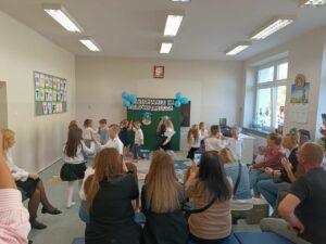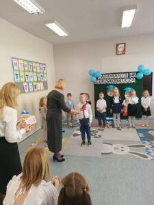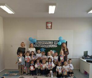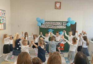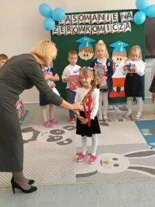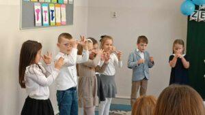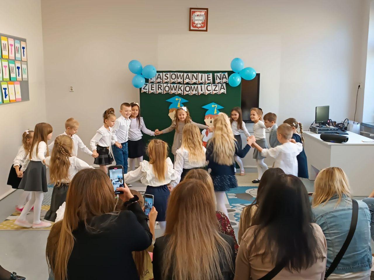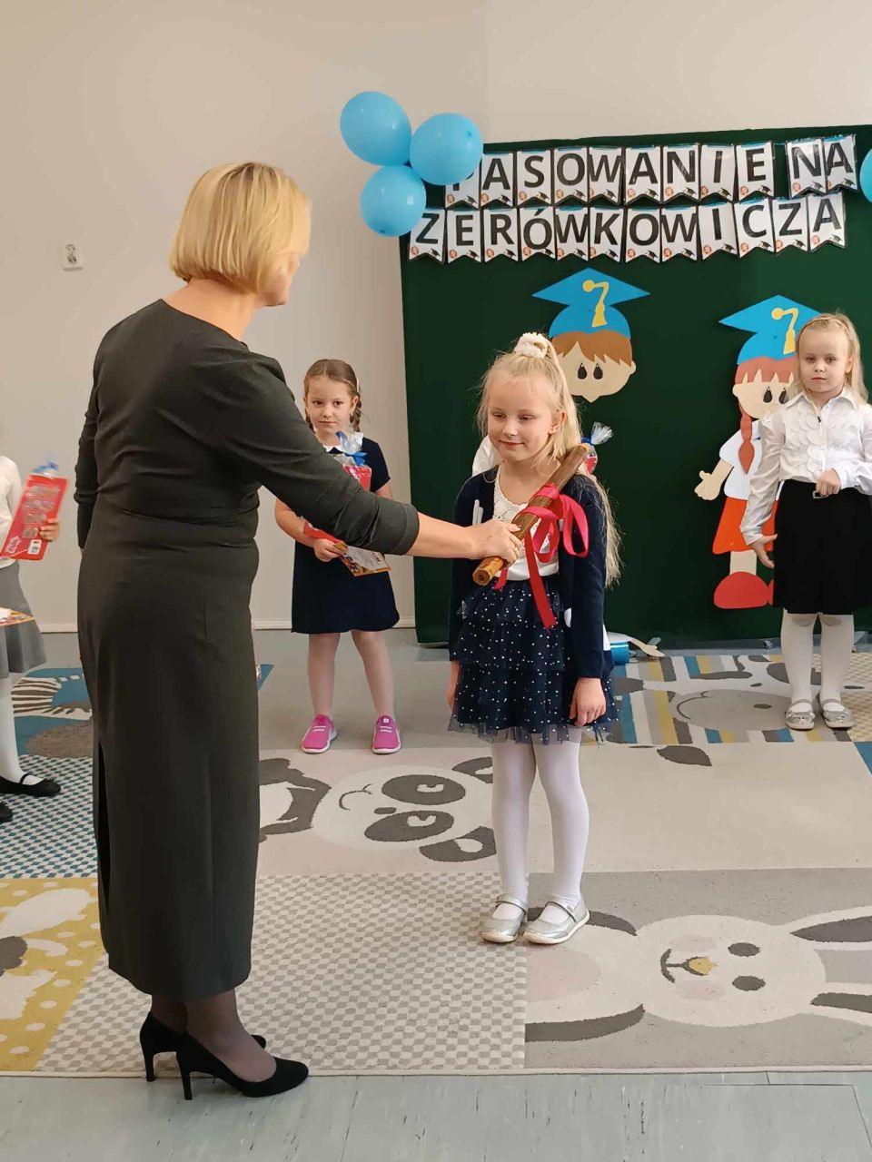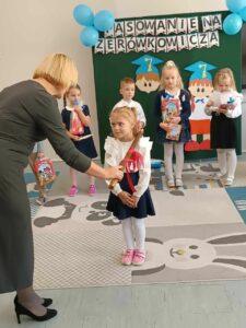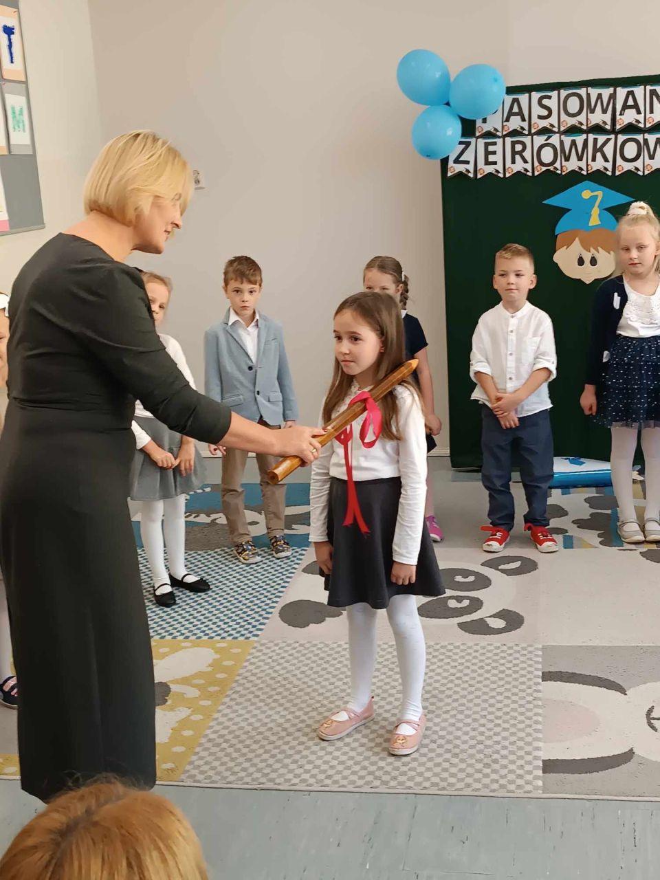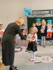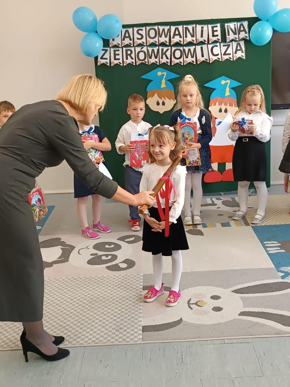 Dzień 24 października 2024 roku pozostanie na długo w pamięci dzieci uczęszczających do zerówki. Właśnie tego dnia w gronie najbliższych odbyło się Pasowanie na Zerówkowicza. Dzieci z grupy 0B zaprezentowały swoje umiejętności recytatorskie, wokalne oraz taneczne. Po części artystycznej Pani Dyrektor Małgorzata Trelka oraz Pani Wicedyrektor Agnieszka Czerwińska dokonały uroczystego Pasowania na Zerówkowicza. Dzieci obiecały, że będą dbały o dobre imię swojej Grupy i Szkoły, a swoim zachowaniem będą sprawiać radość rodzicom