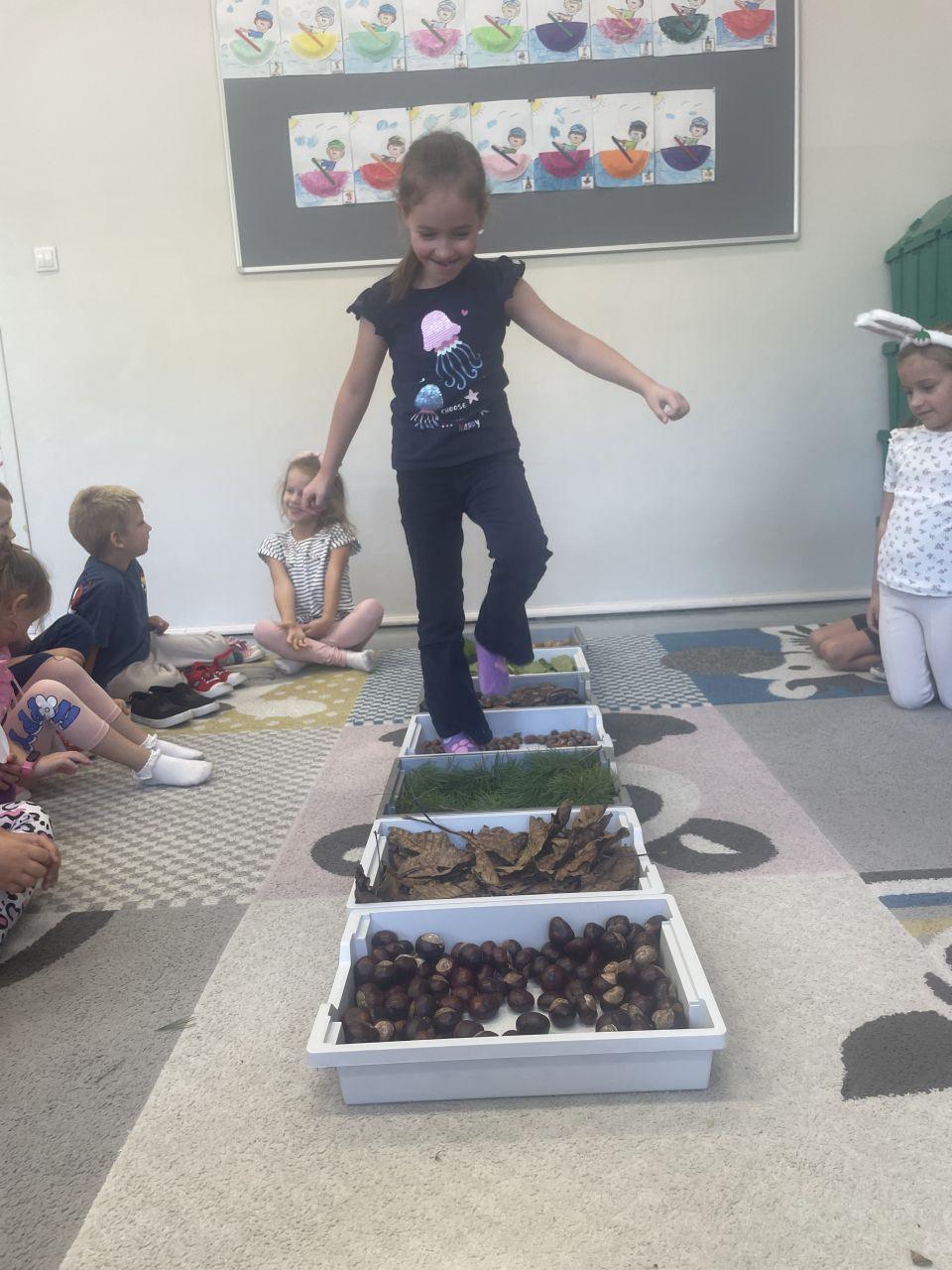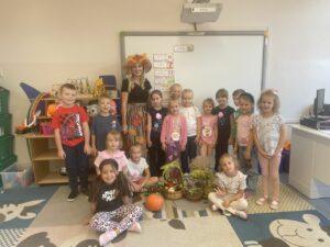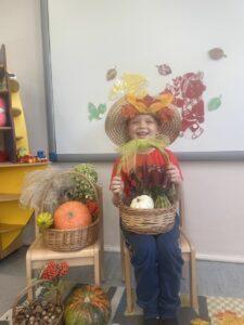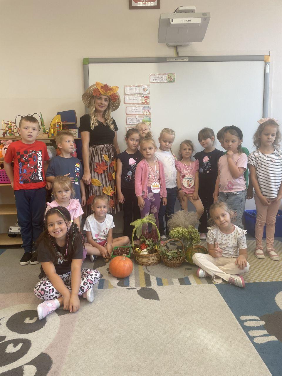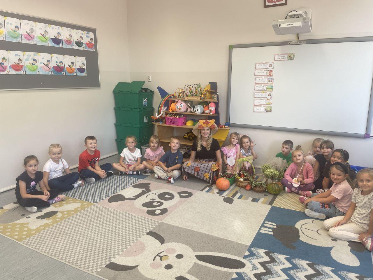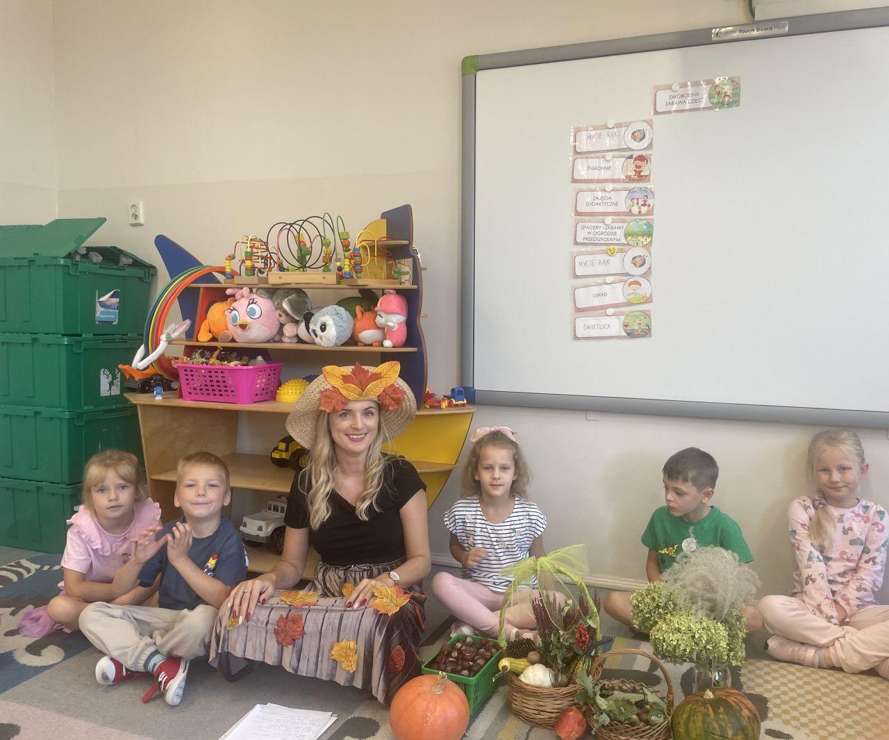 Tego roku Pani Jesień przedszkolakom zrobiła ogromną niespodziankę – osobiście odwiedziła nasze przedszkole. Przedszkolaki przygotowały się na jej wizytę i przyniosły jesienne dary. Nie zabrakło barwnych liści, koszy pełnych kasztanów, żołędzi i orzechów. Dzieci wcieliły się również w rolę listków i wykonały jesienny taniec, który był uwieńczeniem tego barwnego dnia.