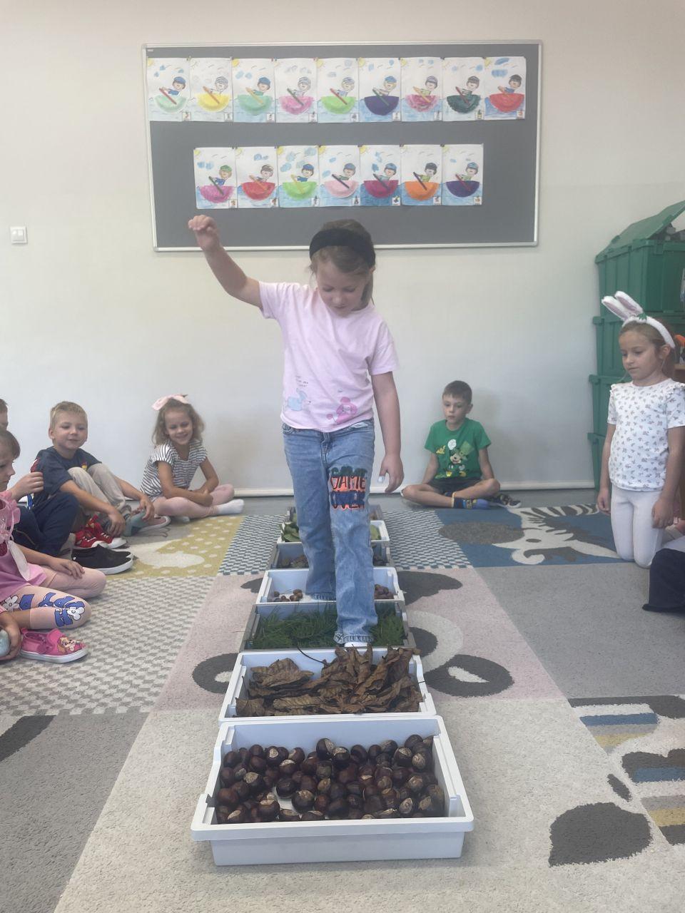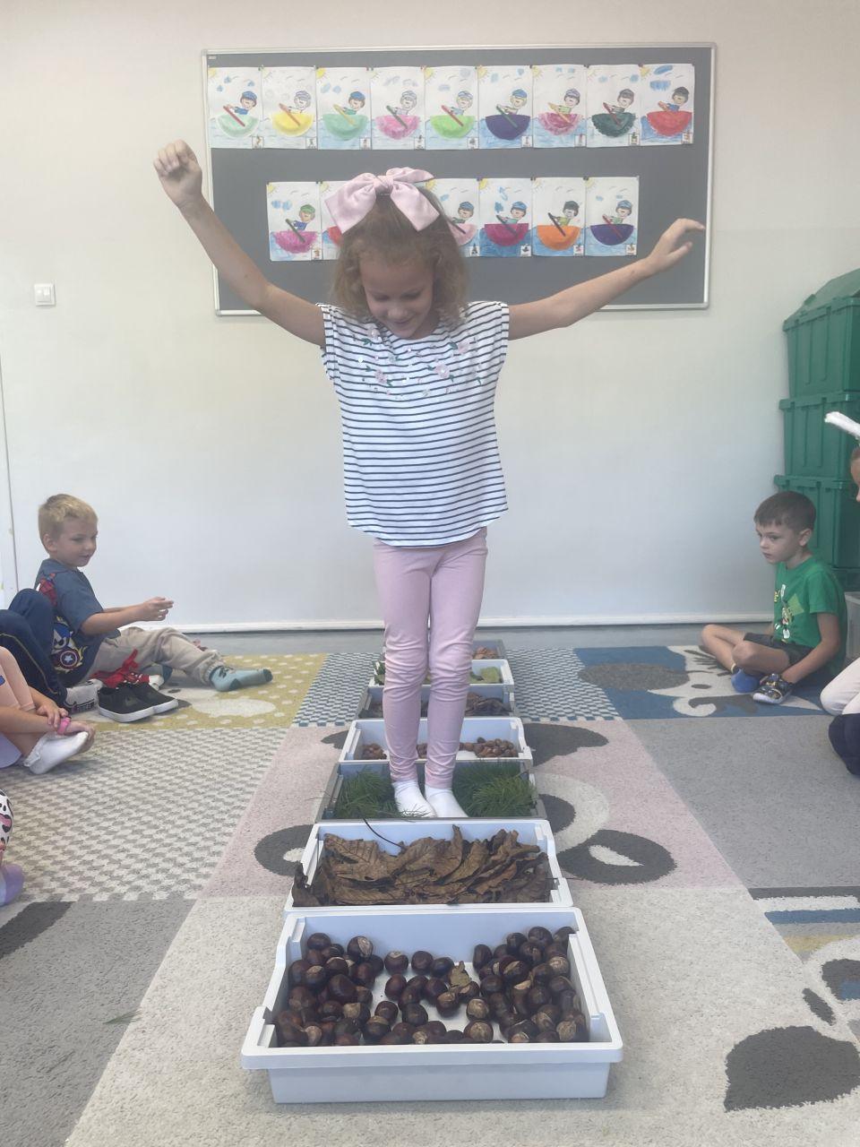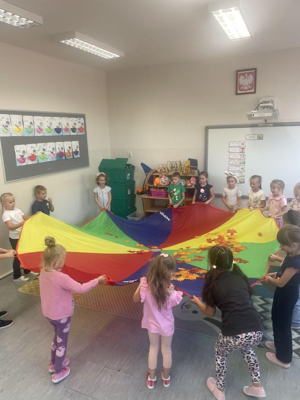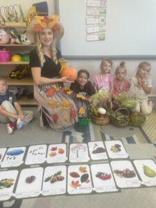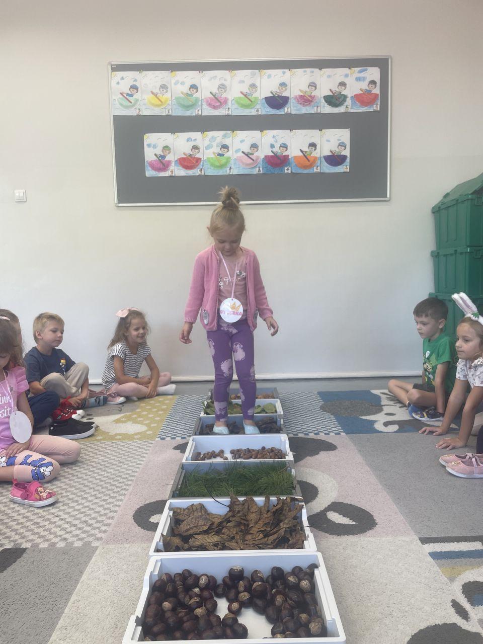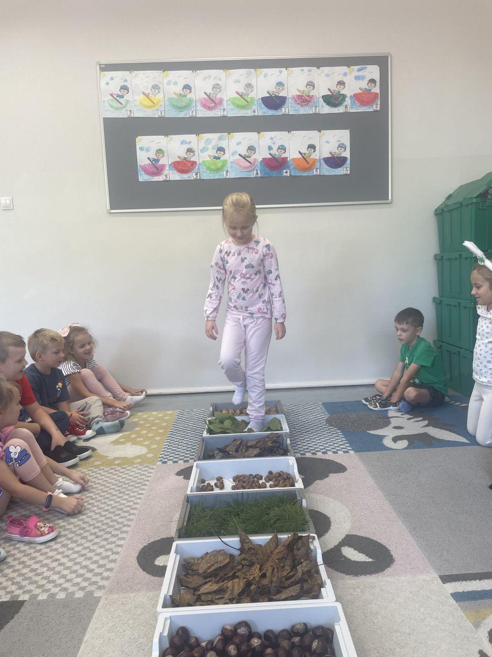 Tego roku Pani Jesień przedszkolakom zrobiła ogromną niespodziankę – osobiście odwiedziła nasze przedszkole. Przedszkolaki przygotowały się na jej wizytę i przyniosły jesienne dary. Nie zabrakło barwnych liści, koszy pełnych kasztanów, żołędzi i orzechów. Dzieci wcieliły się również w rolę listków i wykonały jesienny taniec, który był uwieńczeniem tego barwnego dnia.