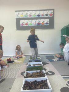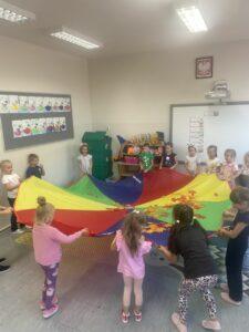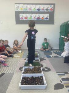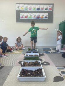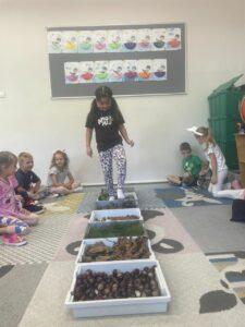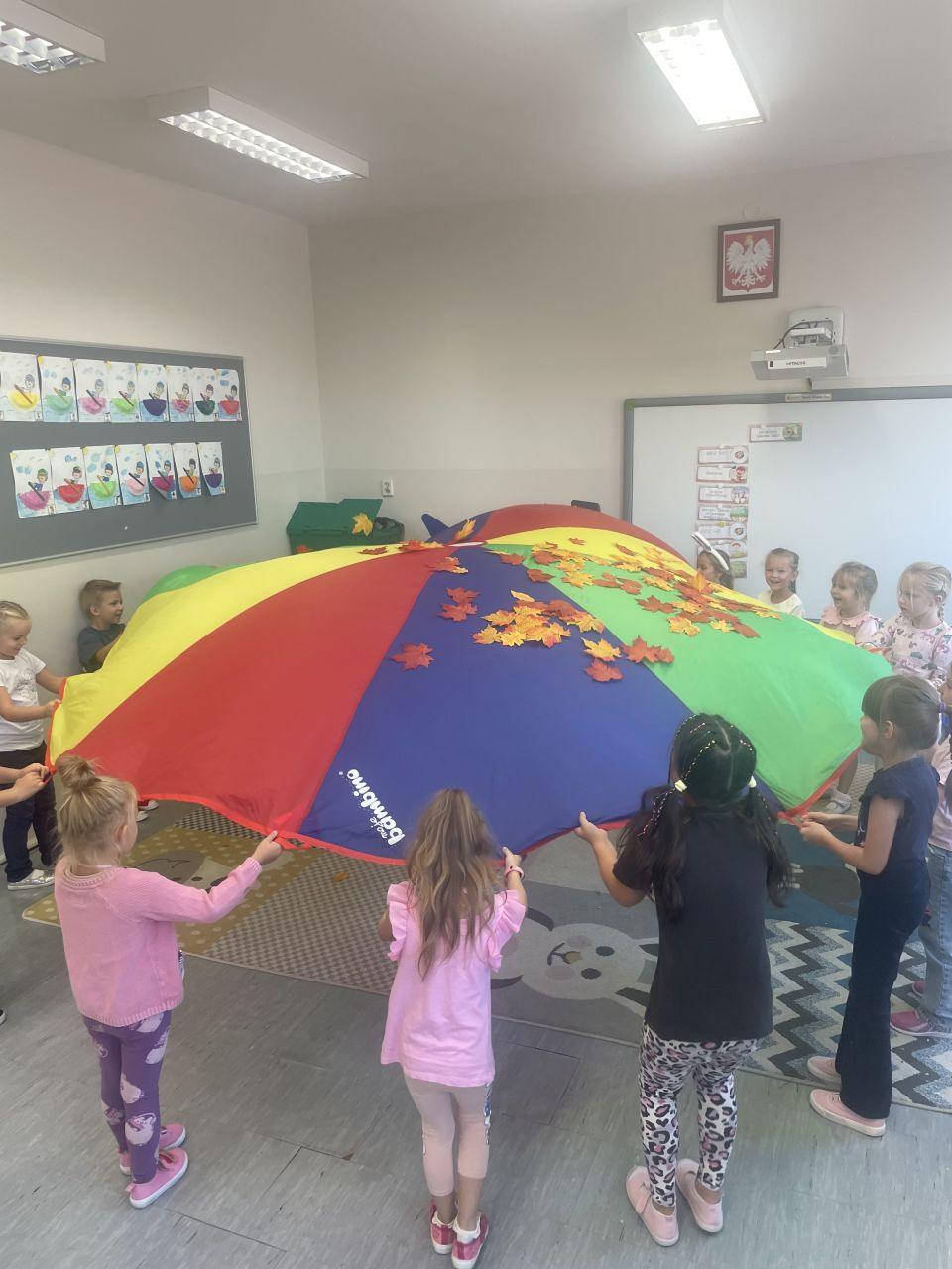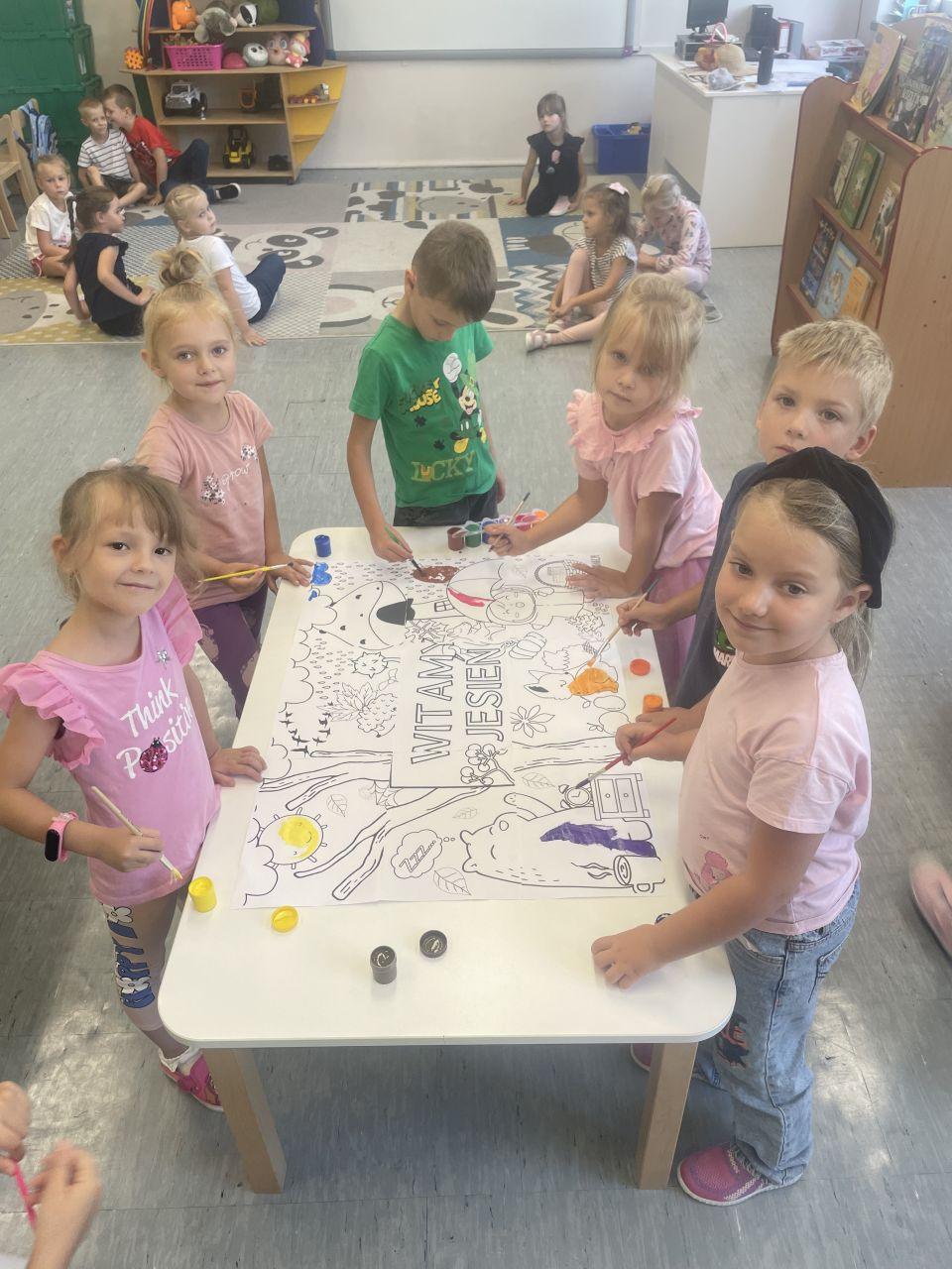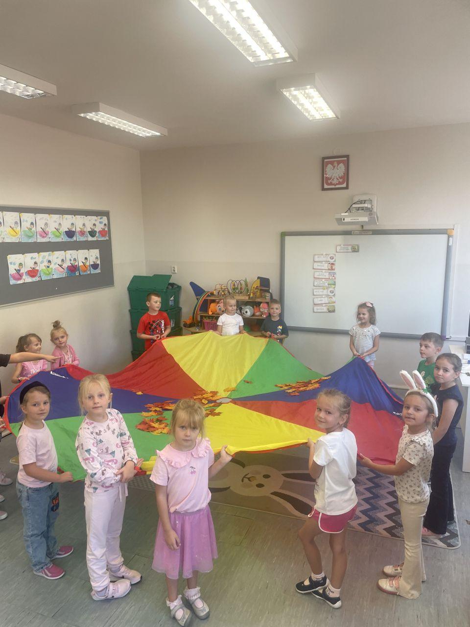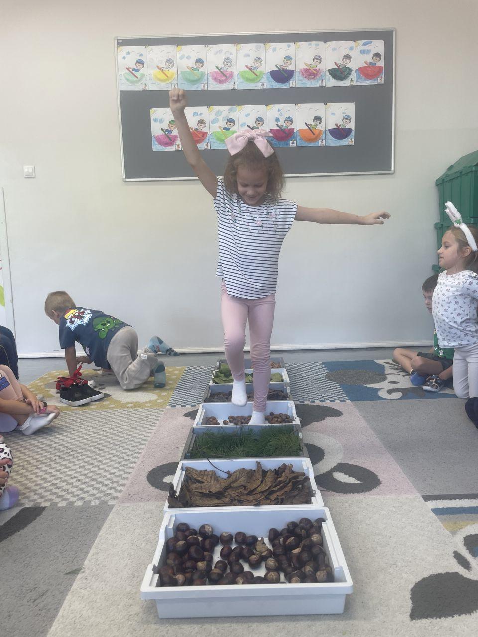 Tego roku Pani Jesień przedszkolakom zrobiła ogromną niespodziankę – osobiście odwiedziła nasze przedszkole. Przedszkolaki przygotowały się na jej wizytę i przyniosły jesienne dary. Nie zabrakło barwnych liści, koszy pełnych kasztanów, żołędzi i orzechów. Dzieci wcieliły się również w rolę listków i wykonały jesienny taniec, który był uwieńczeniem tego barwnego dnia.