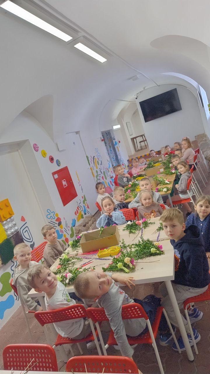 24 marca nasza grupa 0b wybrała się do Muzeum im. Jacka Malczewskiego w Radomiu, aby wziąć udział w wyjątkowych warsztatach wielkanocnych. Już sama wizyta w muzeum była dla dzieci ciekawym przeżyciem – mogły zobaczyć piękne wnętrza, poczuć atmosferę sztuki i odkryć, że muzeum to miejsce pełne inspiracji.