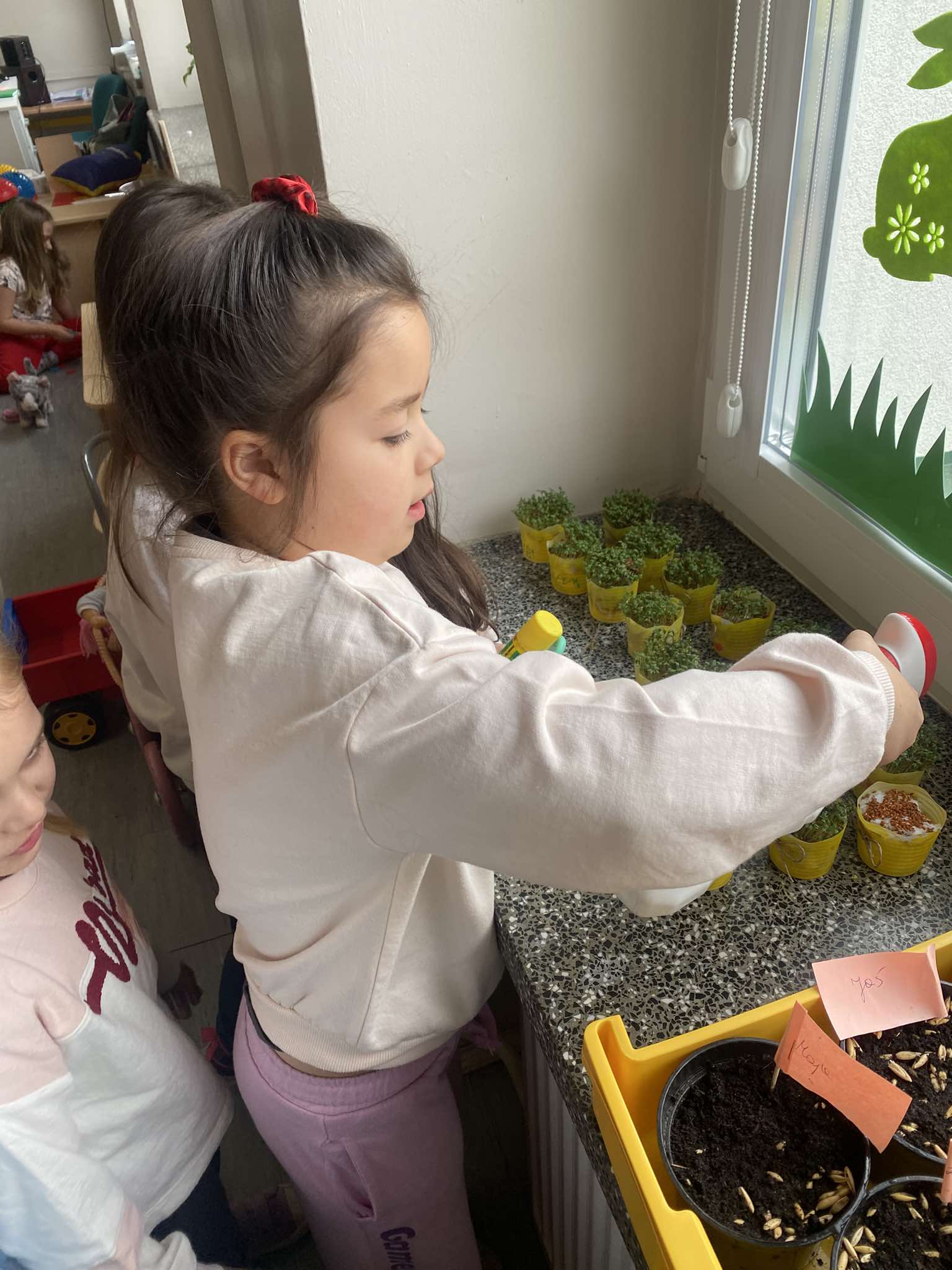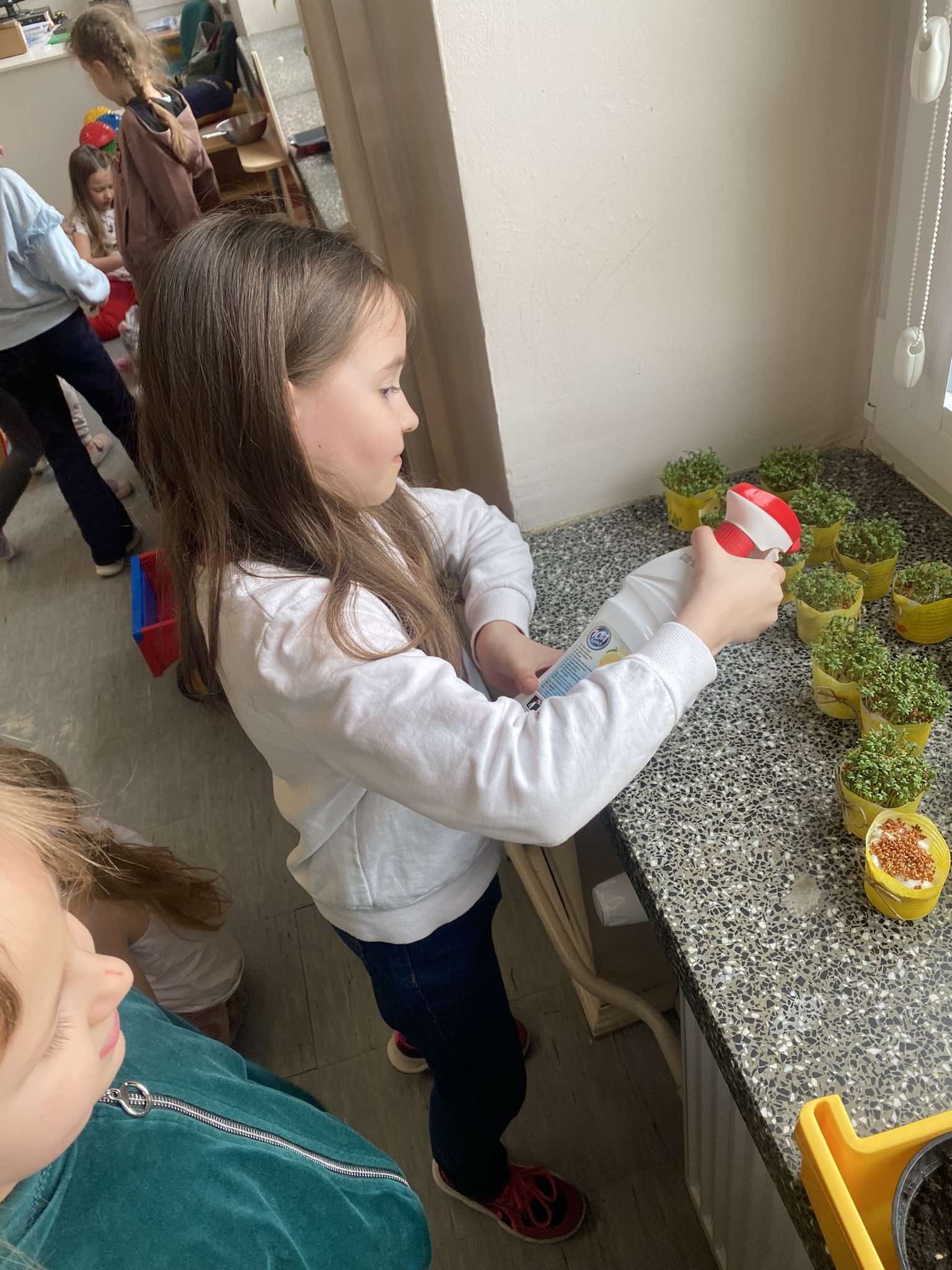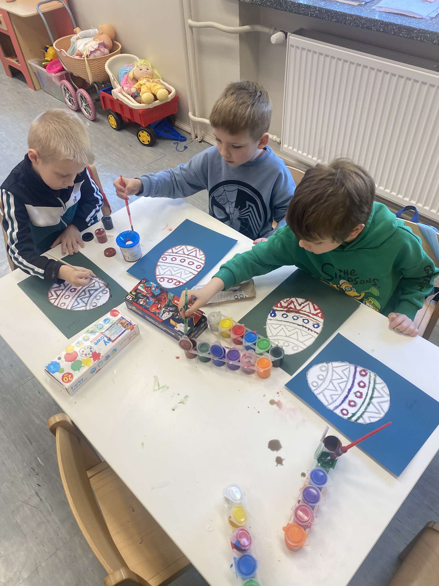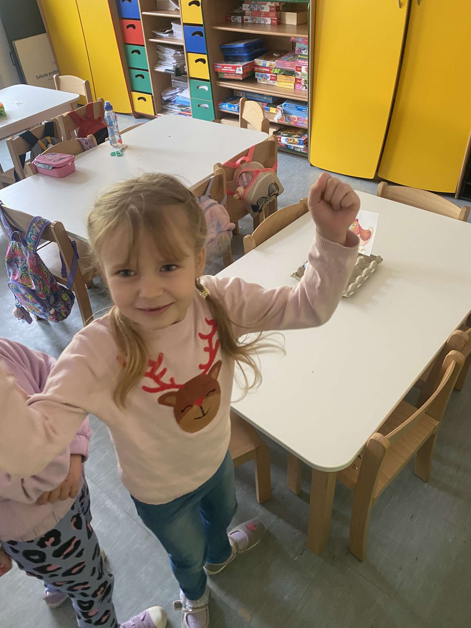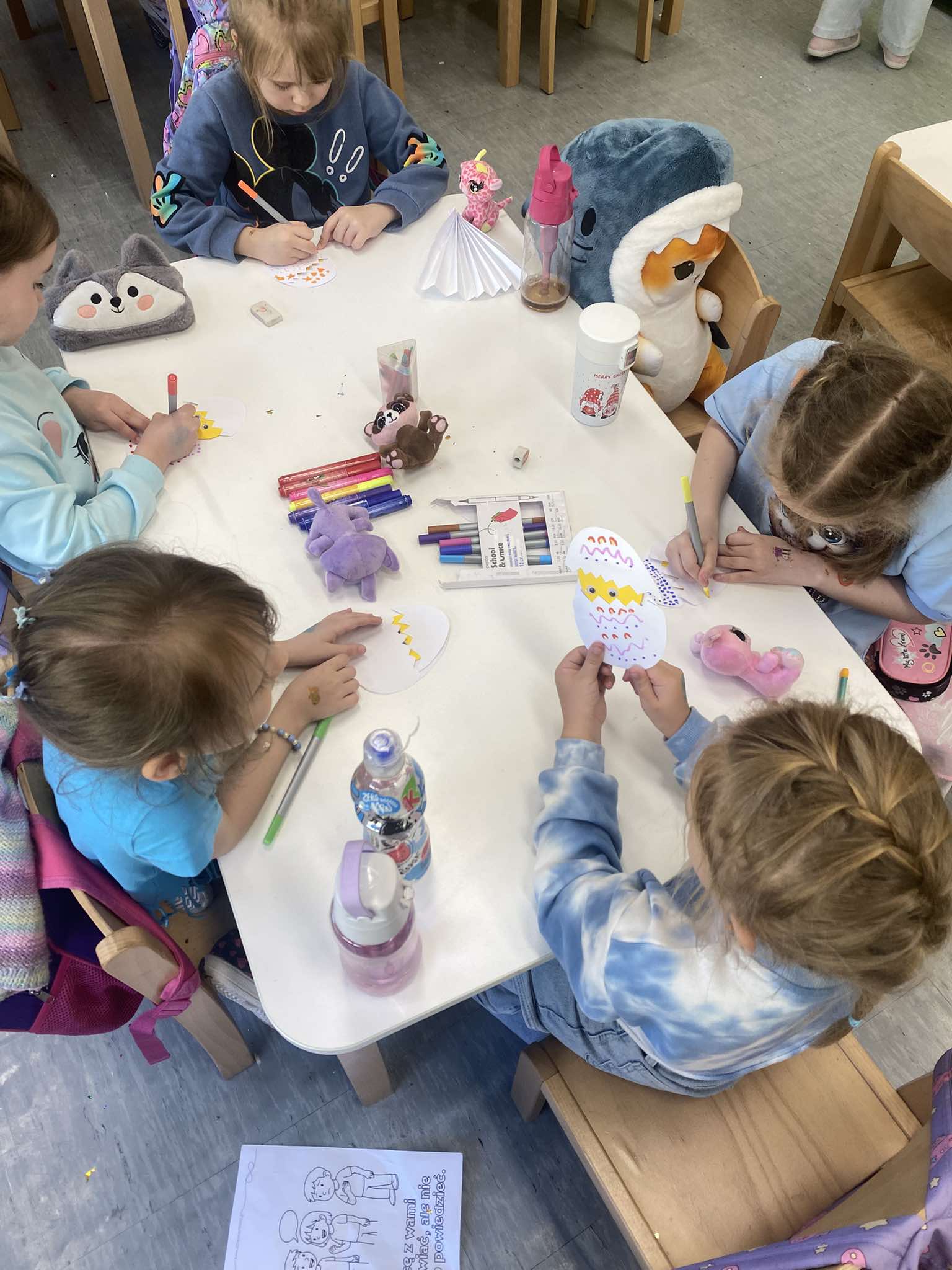 Z okazji zbliżających się Świąt Wielkanocnych w naszej zerówce zapanowała wyjątkowa, świąteczna atmosfera. Dzieci z radością tworzyły prace plastyczne: kolorowe pisanki oraz kurczaczki wykluwające się z jajek. Każda praca była wyjątkowa i odzwierciedlała dziecięcą wyobraźnię oraz wiosenny nastrój. Wspólnie założyliśmy także nasz mały ogródek, dzieci siały rzeżuchę, a następnie z dużym zaangażowaniem codziennie ją podlewały i obserwowały, jak rośnie. To była świetna lekcja cierpliwości i odpowiedzialności. Nie zabrakło również zabaw i aktywności ruchowych, zorganizowaliśmy wesołą konkurencję: która kura zbierze więcej jajek, co dostarczyło dzieciom mnóstwo śmiechu i pozytywnych emocji. W ramach nauki przez zabawę układaliśmy wyrazy z liter związanych ze zwyczajami wielkanocnymi, rozwijając przy tym umiejętności językowe i logiczne myślenie. Nie zapomnieliśmy również o tradycji wielkanocnego śmigusa-dyngusa, oczywiście w kontrolowanej, bezpiecznej wersji! Było trochę lania wodą, dużo śmiechu i jeszcze więcej radości. Na zakończenie wspólnymi siłami stworzyliśmy ogromną, kolorową pisankę, która stała się piękną dekoracją naszej sali i symbolem wspólnie spędzonego czasu. To były wyjątkowe chwile, pełne kreatywności, tradycji i dobrej zabawy!