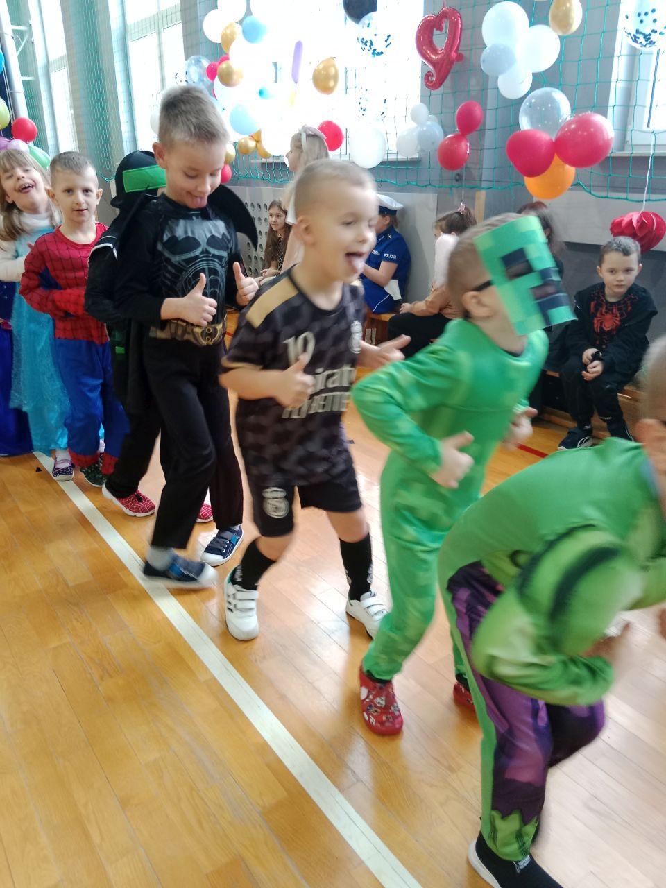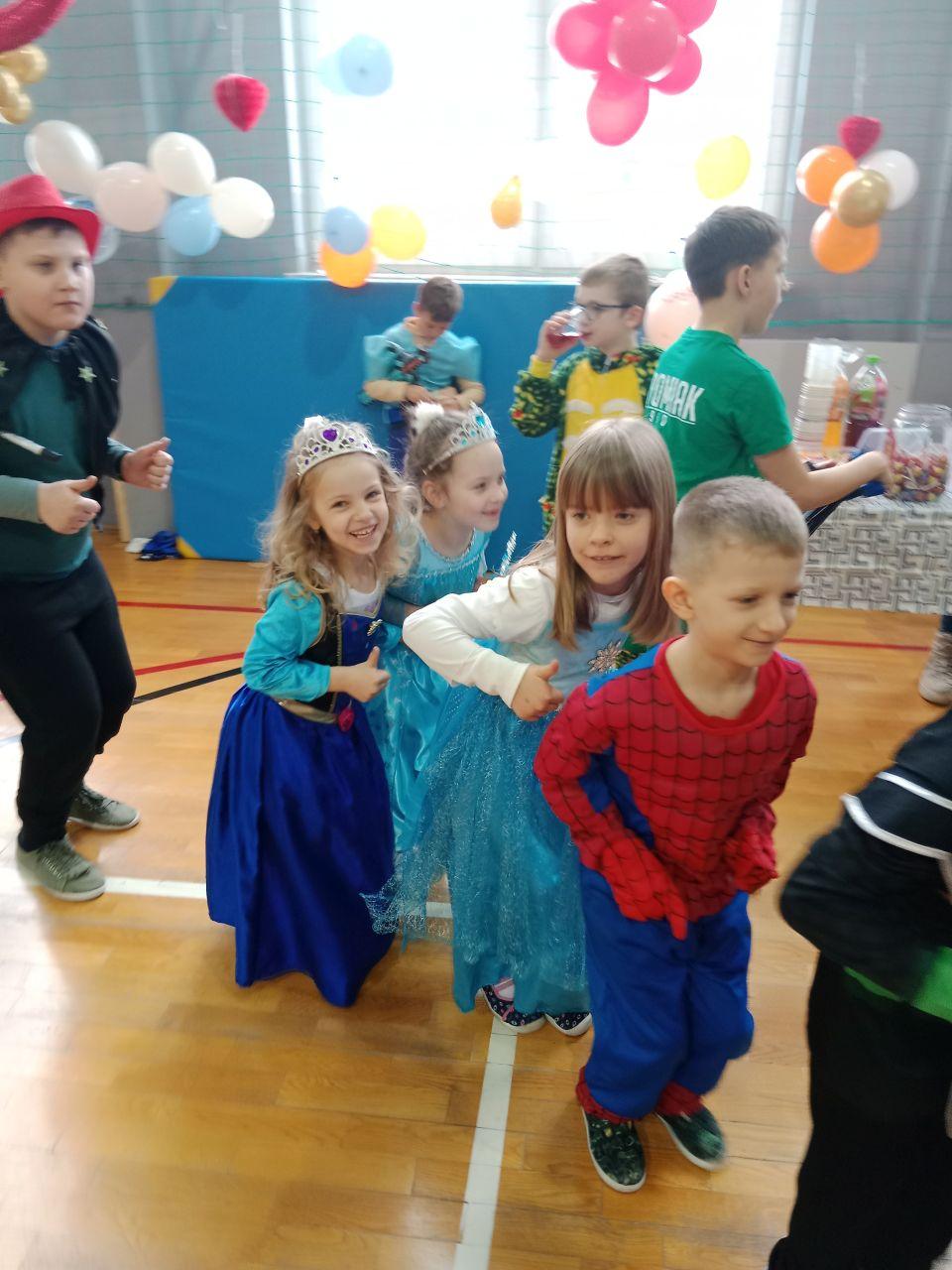Bal karnawałowy w naszej szkole był pełen radości, kolorów i wspaniałej zabawy! Tego dnia sala zamieniła się w magiczne miejsce, w którym można było spotkać księżniczki, superbohaterów, zwierzątka, wróżki oraz wiele innych bajkowych postaci. Dzieci z ogromnym zaangażowaniem przygotowały swoje stroje, wcielając się w ulubionych bohaterów z bajek