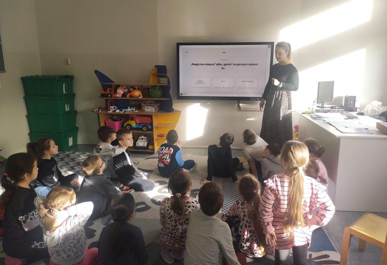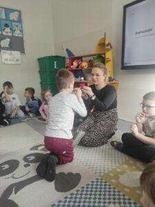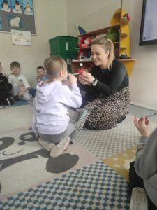 „6 marca obchodziliśmy Europejski Dzień Logopedy. Z tej okazji zostały przeprowadzone przez Panią Asię, warsztaty logopedyczne przybliżające zawód logopedy oraz rozwijające sprawności językowe.