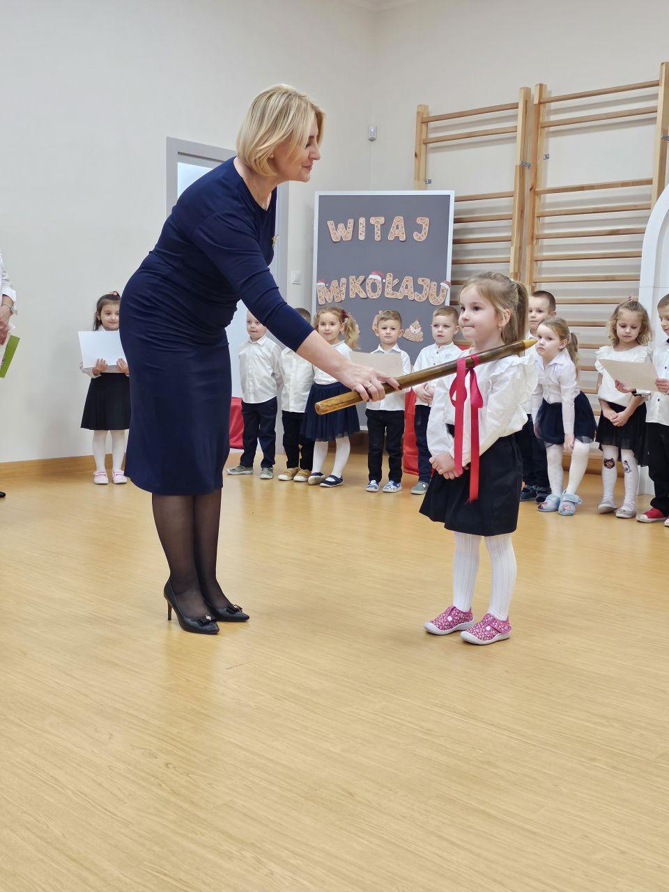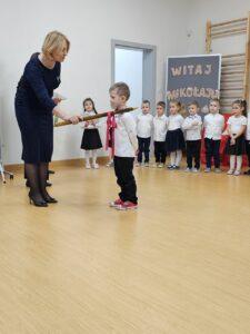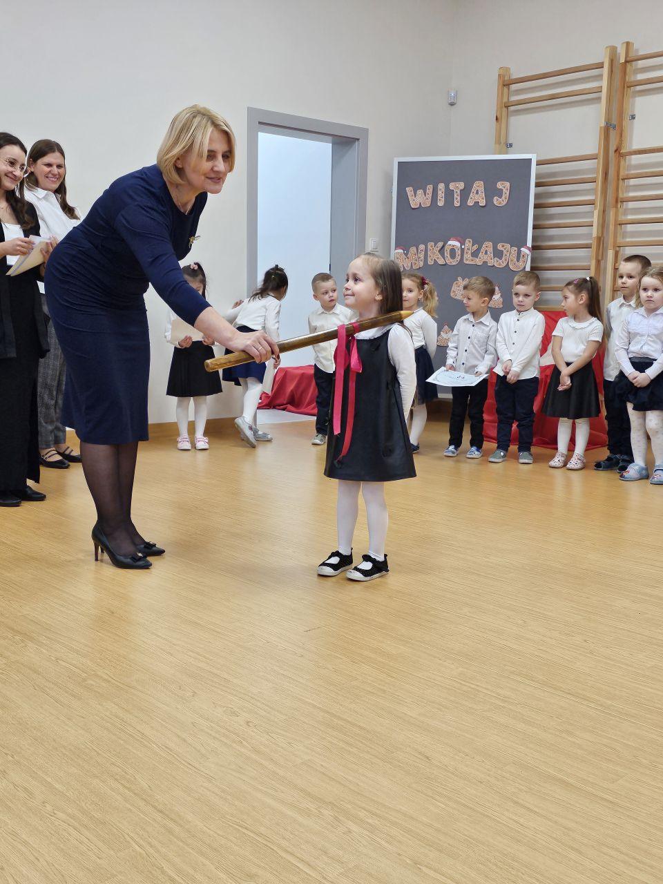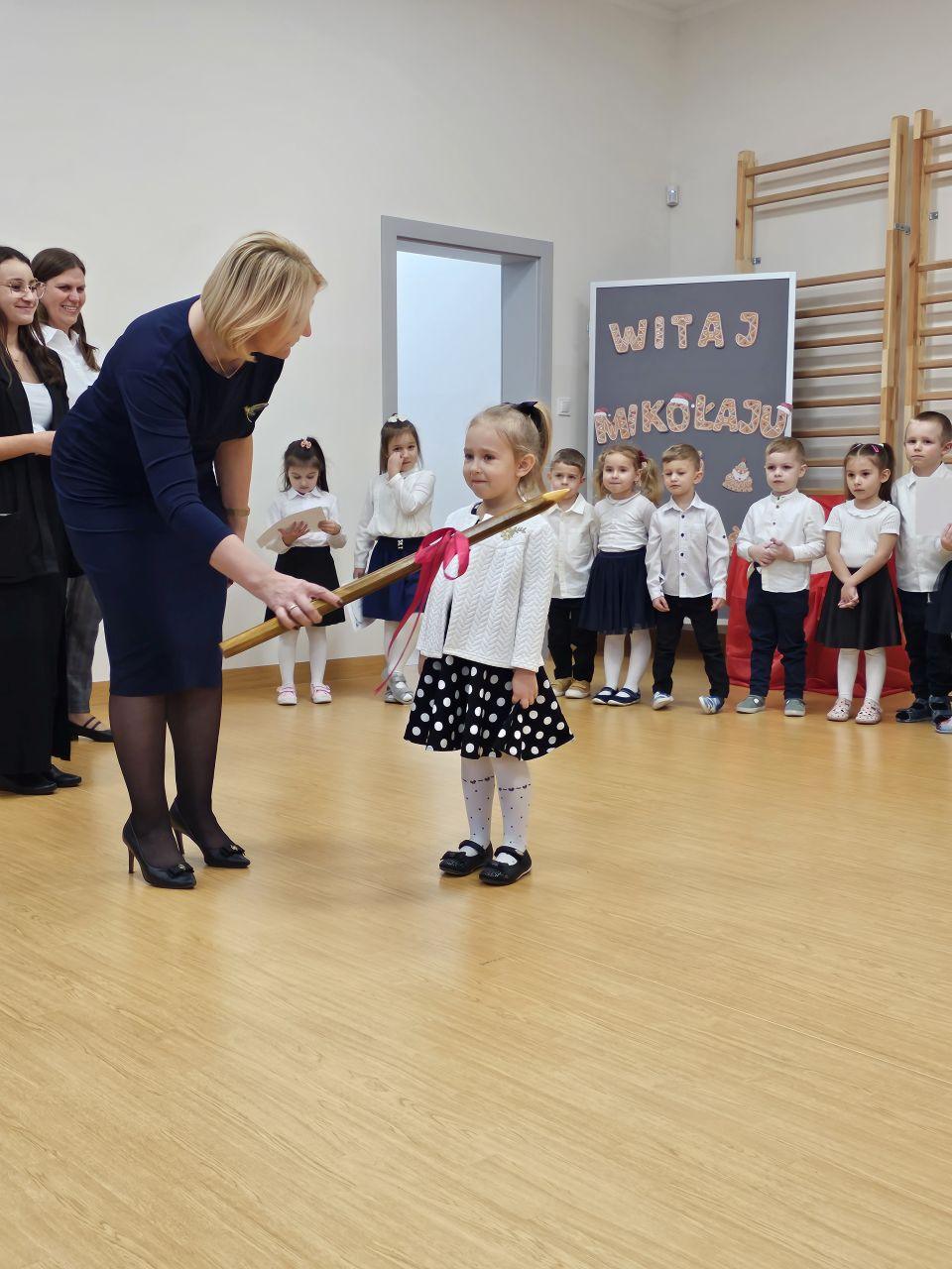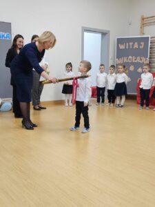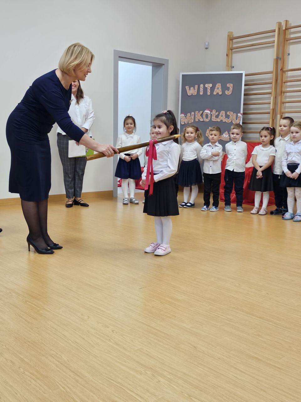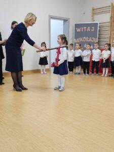 6 grudnia był to wyjątkowy dzień dla naszych przedszkolaków, na który czekały z ogromną niecierpliwością. W progi naszego przedszkola zawitał niezwykły gość – św. Mikołaj, który obdarował dzieci mocą prezentów. Dzień ten był także wyjątkowy z uwagi na uroczystość Pasowania na Przedszkolaka. Dzieci z grup Stokrotki i Niezapominajki po akcie pasowania, czyli dotknięciu ramienia każdego malucha ogromną kredką przez Panią Dyrektor – Małgorzatę Trelkę, stały się pełnoprawnymi przedszkolakami.
